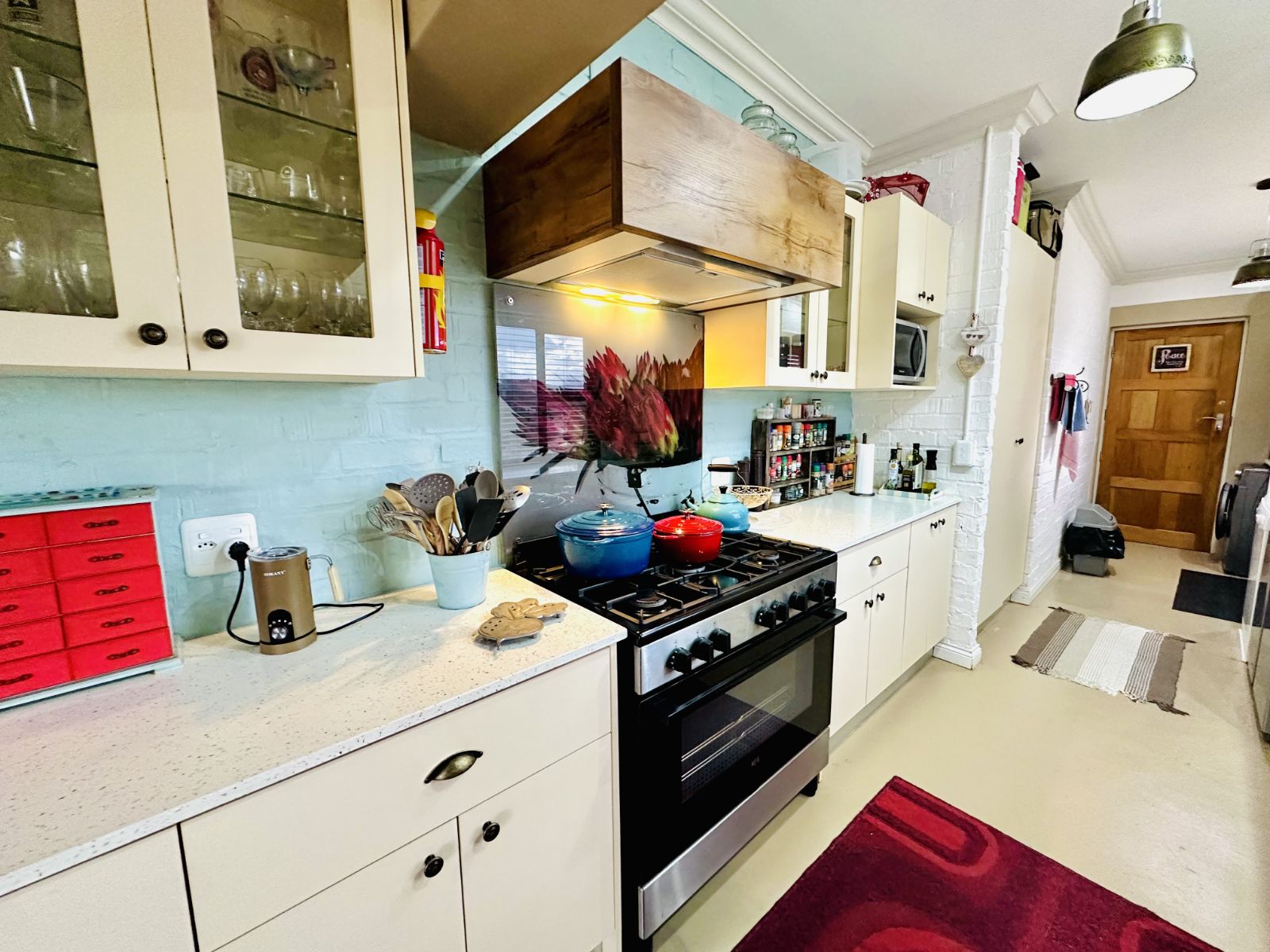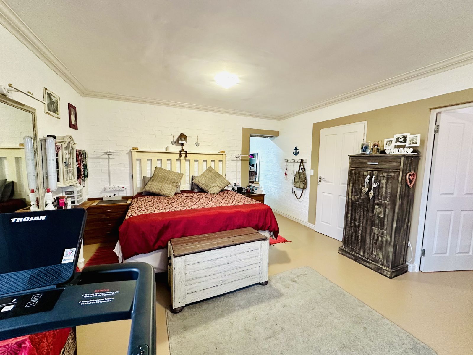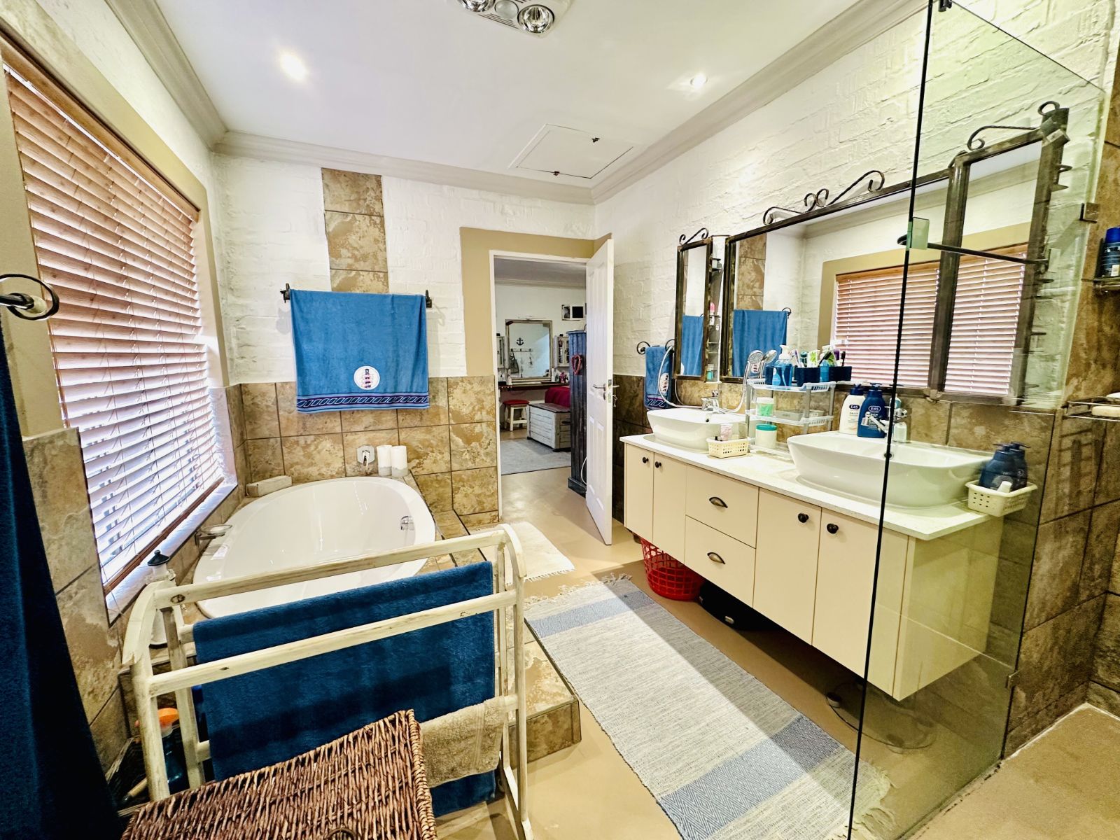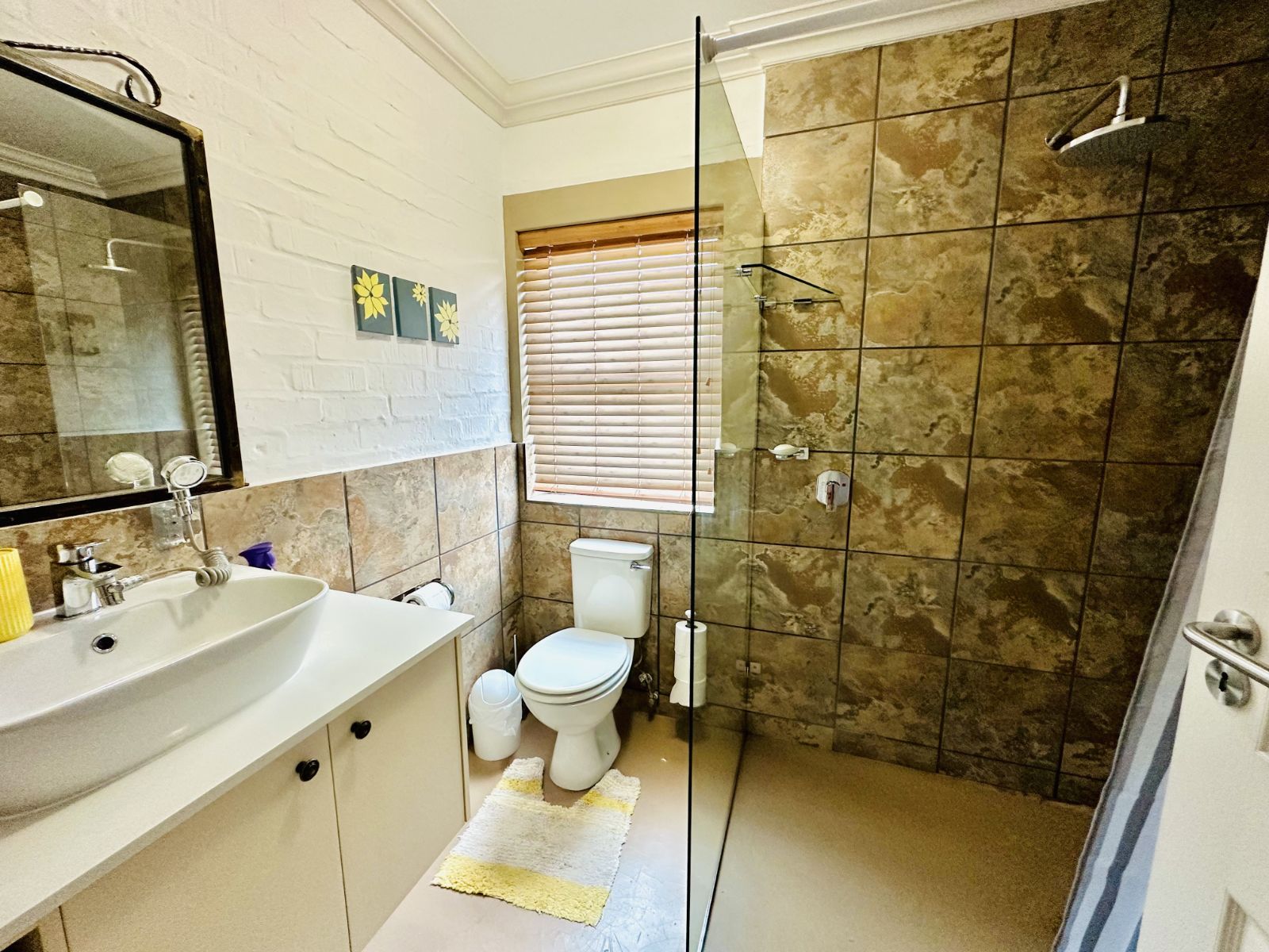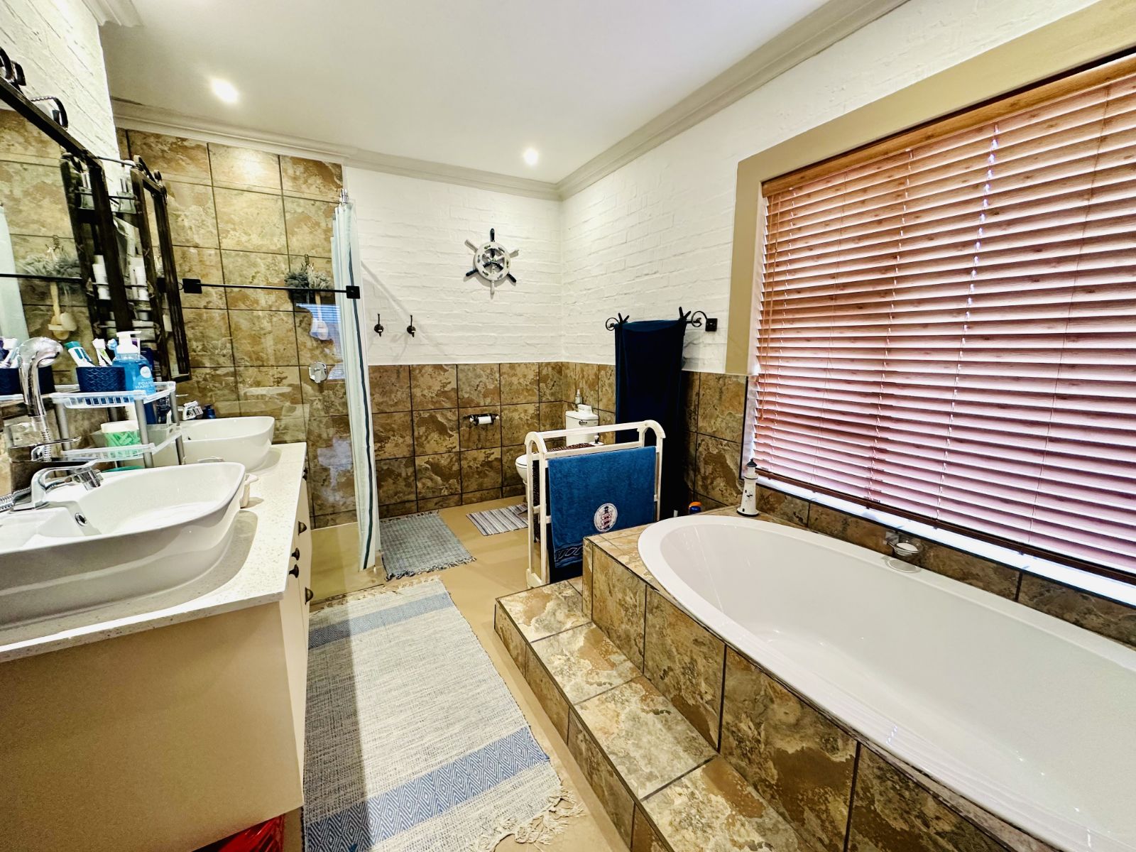 The heart of the home is defined by an intuitive open-plan layout on the ground floor, where the lounge, dining area, and a contemporary kitchen flow together effortlessly. This social hub extends outward to a covered patio featuring a built-in braai, overlooking a neatly established, pet-friendly garden. This level also hosts two generously sized guest bedrooms and a bathroom, ensuring plenty of space for family or visitors. For those with specific storage needs, the property includes extra-height garages—designed to accommodate trailers with rooftop tents—plus a storage room tucked beneath the house.