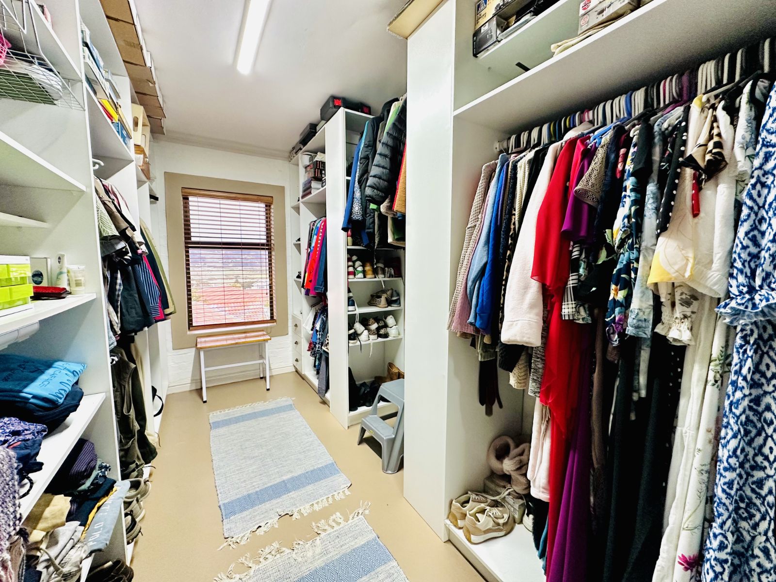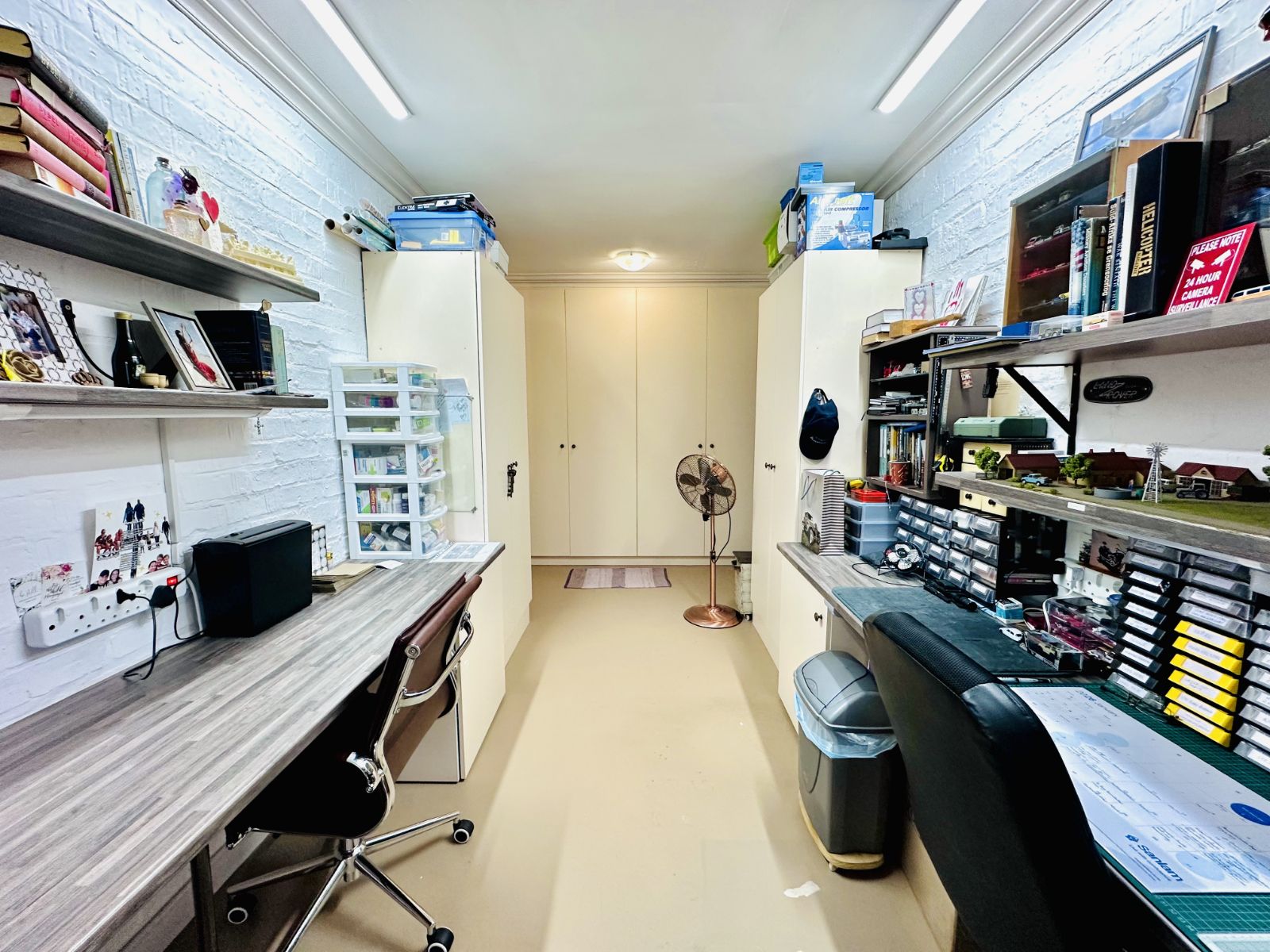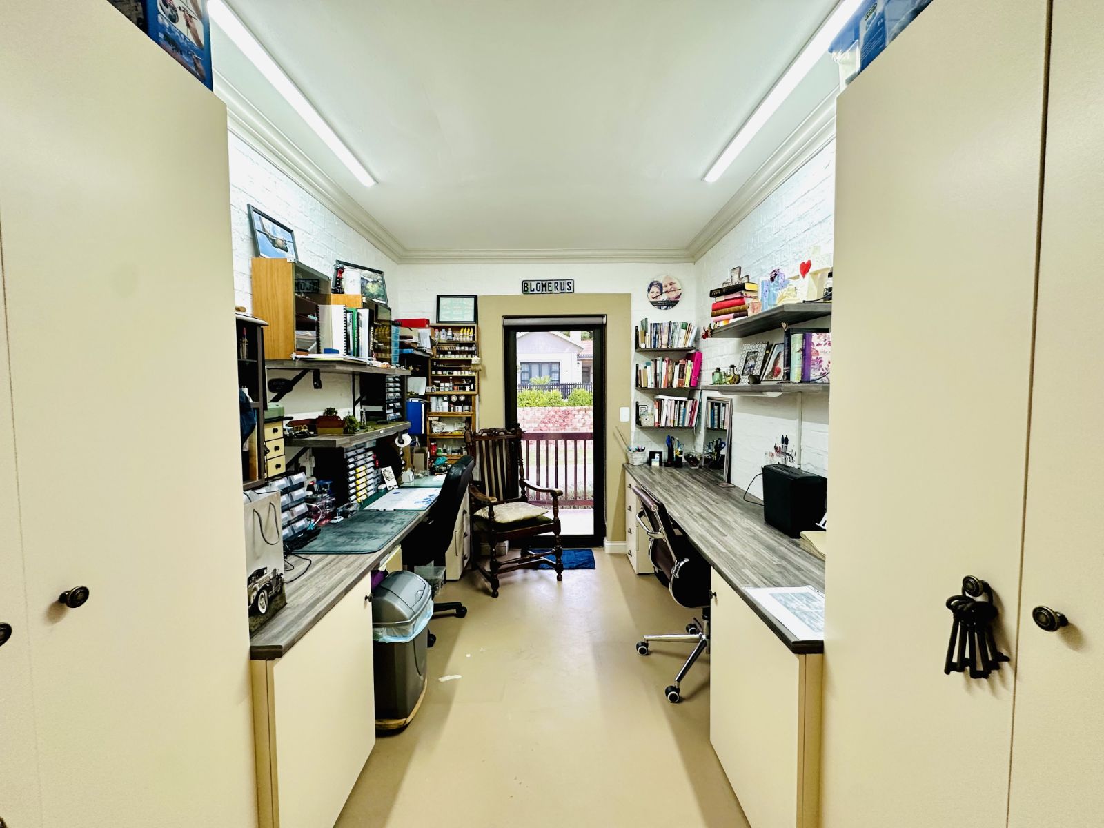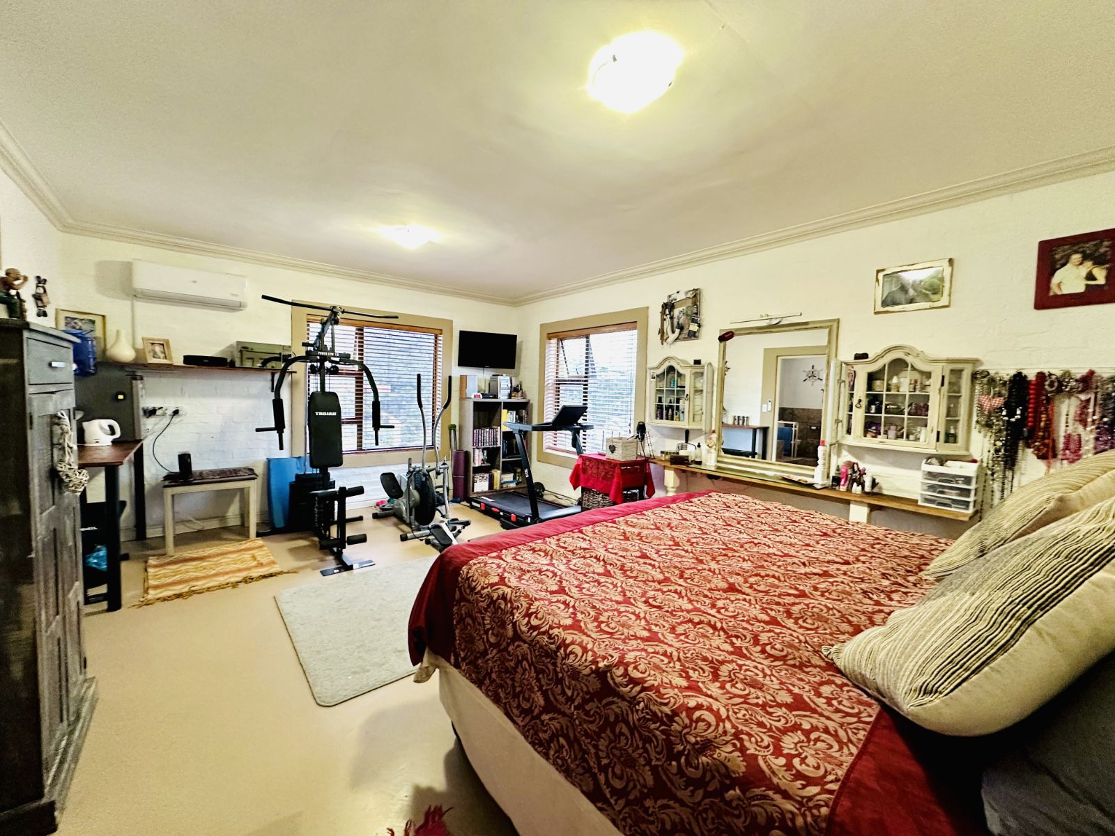 The upper level serves as a private sanctuary, headlined by a spacious main suite that boasts spectacular elevated views and its own outdoor deck. This retreat is thoughtfully equipped with a walk-in closet, a full en-suite bathroom, and a versatile hobby room finished with ample built-in cabinetry. Beyond the aesthetics, the home is engineered for modern resilience and efficiency, featuring tinted windows, fitted blinds, and a robust power system consisting of an 8 kVA inverter paired with 10 solar panels.