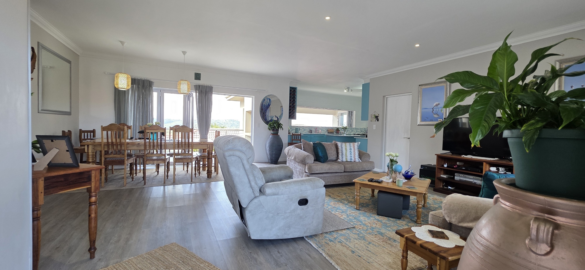 The kitchen is a chef's delight, while the spacious living room flows seamlessly out to the heart of the home: a magnificent patio. Here, you'll be captivated by the incredible sea and mountain views, a perfect backdrop for your morning coffee or evening sundowners.