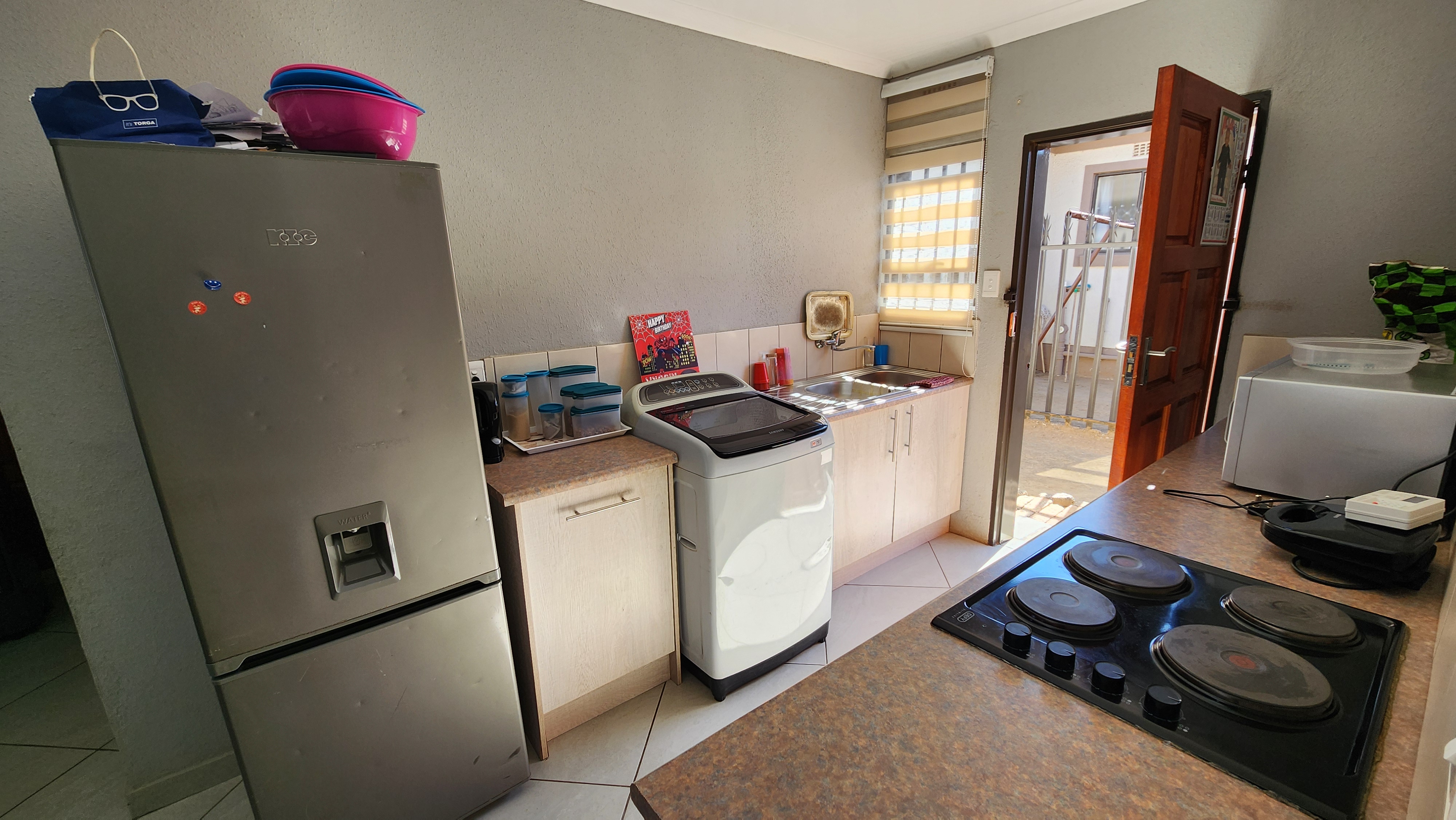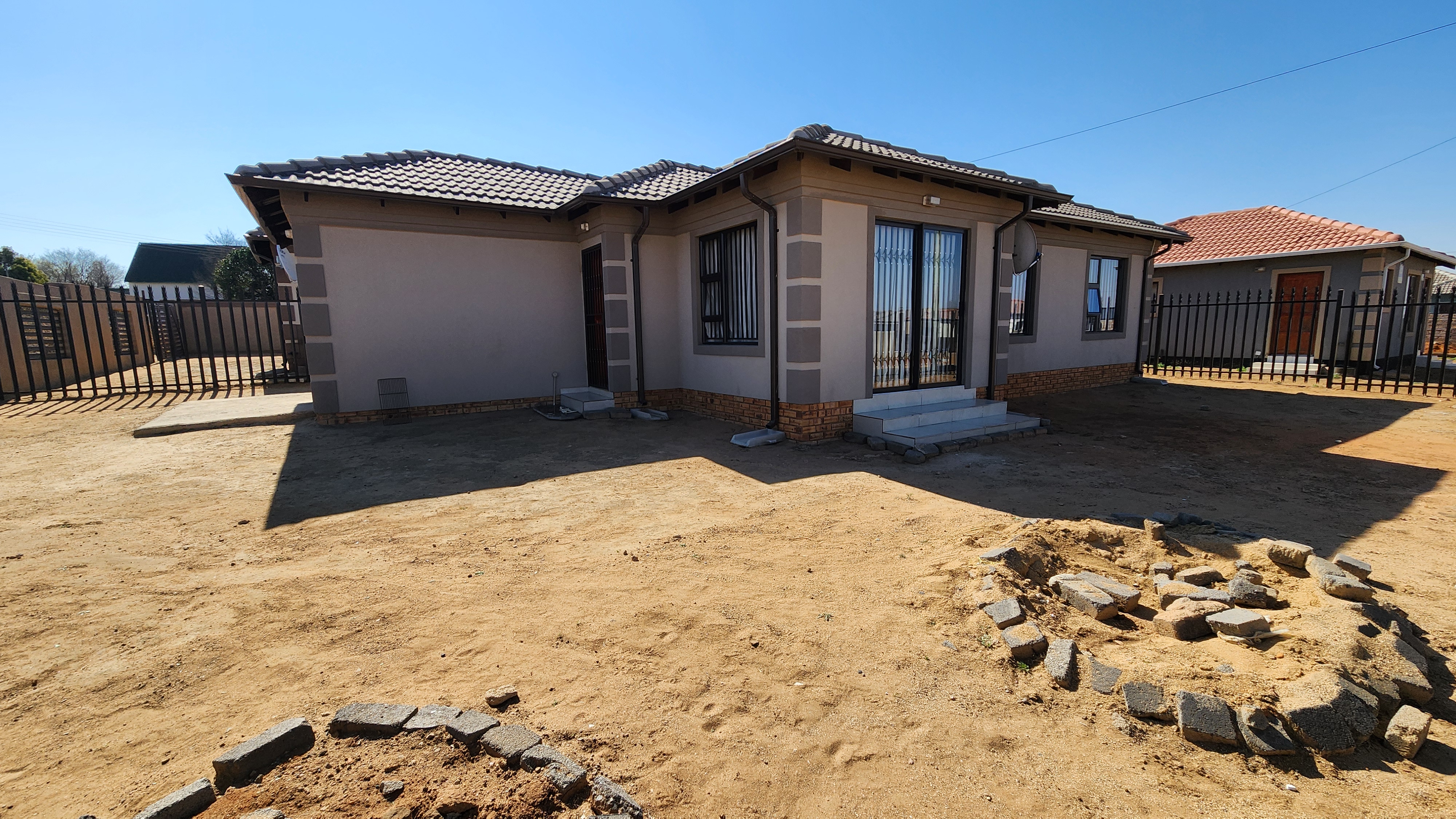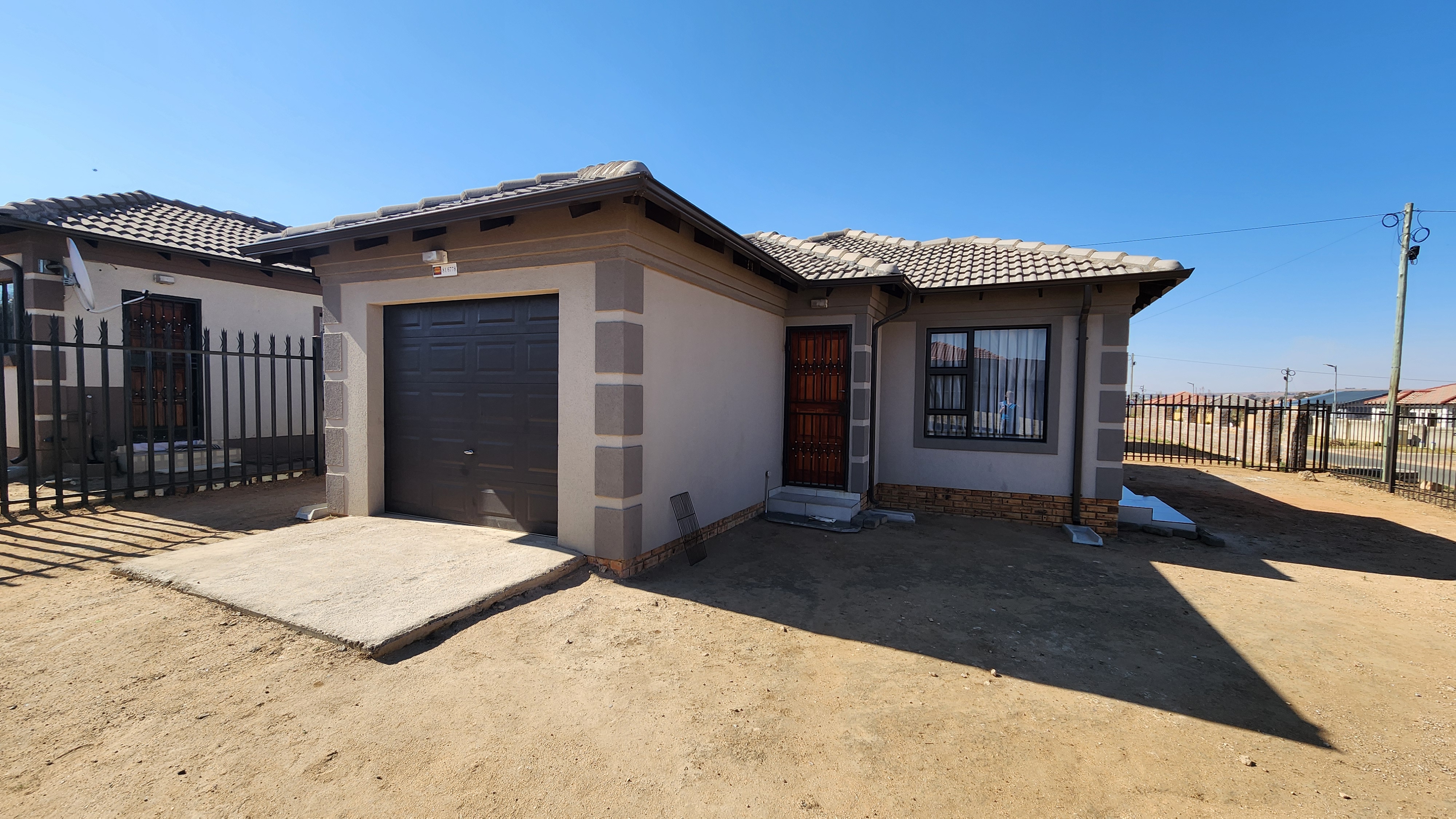 The home features 3 bedrooms with built-in cupboards, providing ample storage and practicality. A comfortable living area offers space to relax and entertain, while the garage ensures secure parking and extra storage.