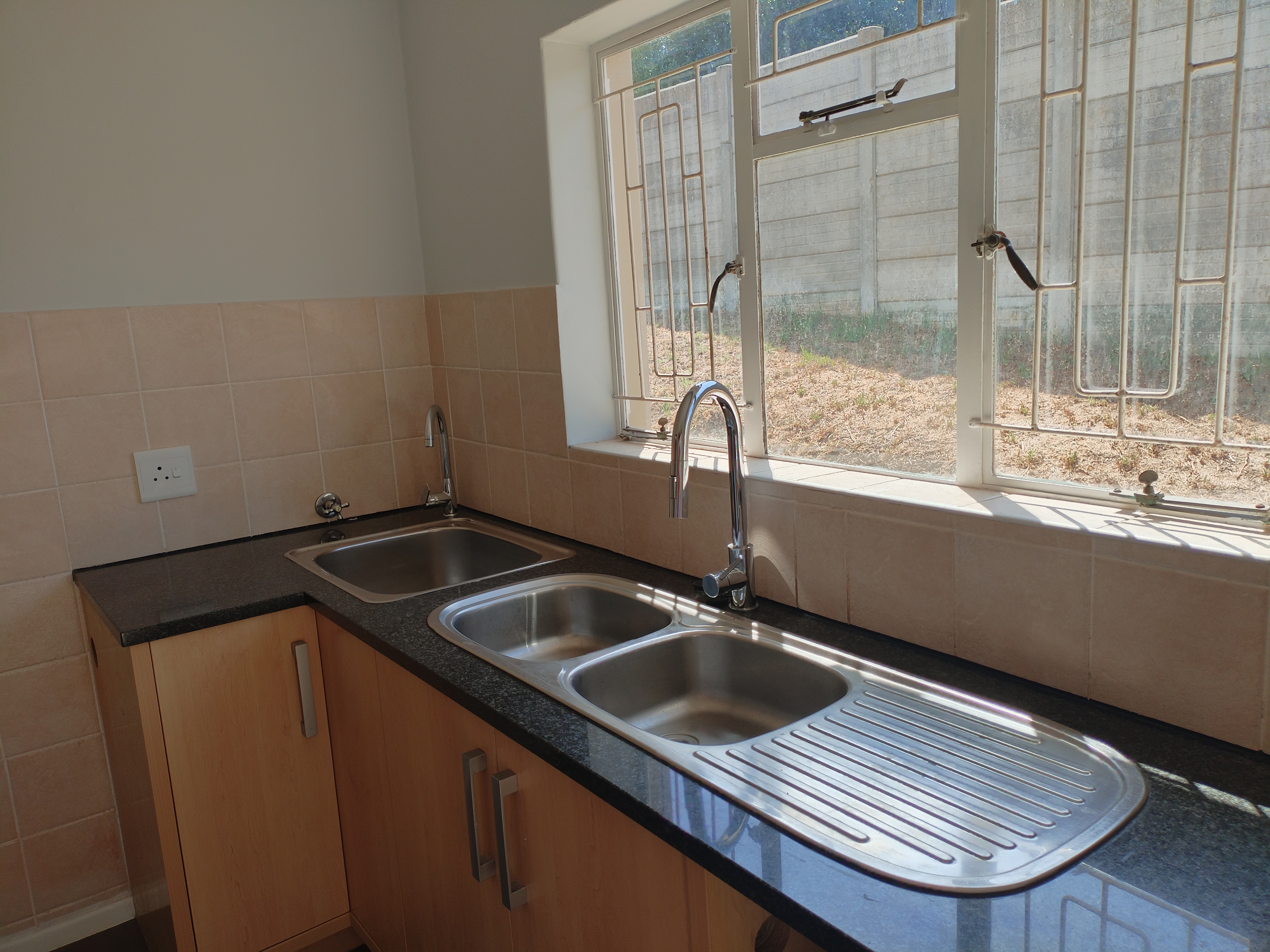 Upon entering, you are greeted by a sleek, open-plan kitchen that immediately captures your attention. It features ample cupboard space, modern granite countertops, and a central island, complemented by a generously sized separate scullery for added convenience.