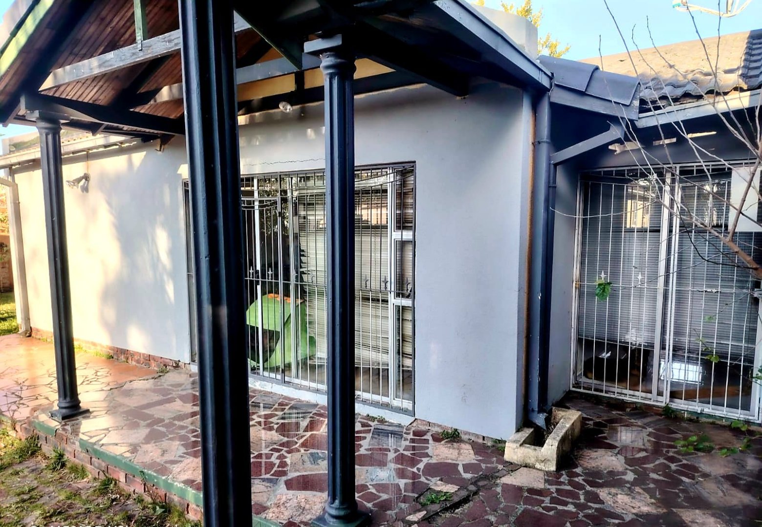 The main house consists of 3 bedrooms all with built in cupboards a main bedroom with its own lounge ensuite bathroom and walk in wardrobe a big kitchen with electric and gas stove built in cupboards separate dining room and lounge foyer and entertainment area air conditioning units and two chimneys