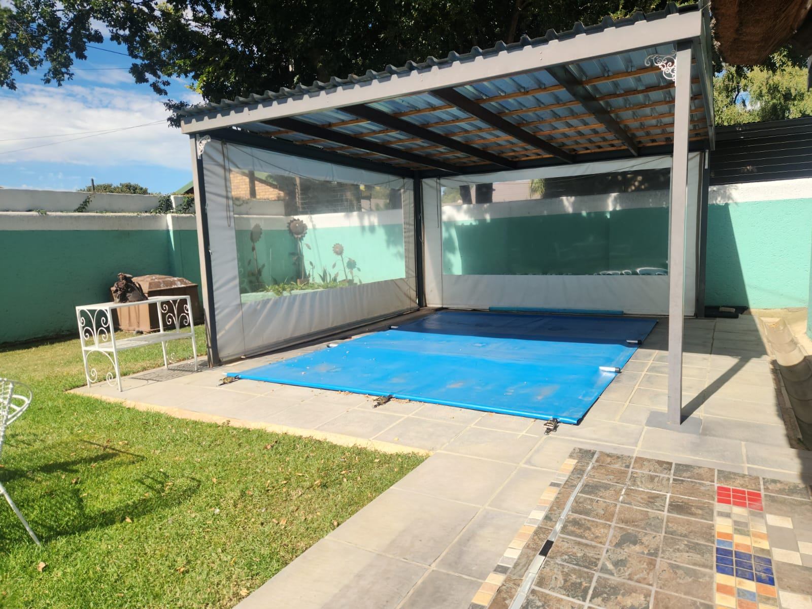 Experience the joy of an all-weather lifestyle with the unique under-cover swimming pool, ensuring year-round enjoyment regardless of the elements. A charming patio and outdoor braai extends your living space, ideal for al fresco dining or simply unwinding. With four dedicated under-cover parking spaces, vehicle safety and convenience are assured. This home also warmly welcomes your furry companions, being truly pet-friendly.
