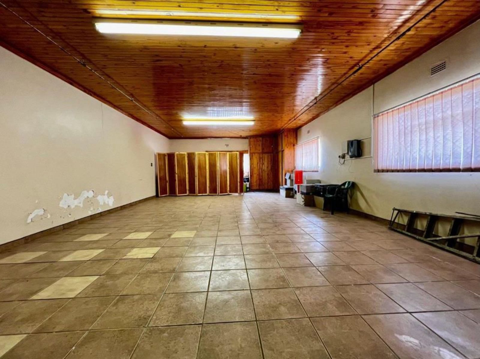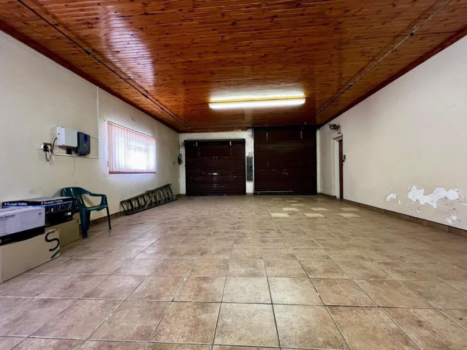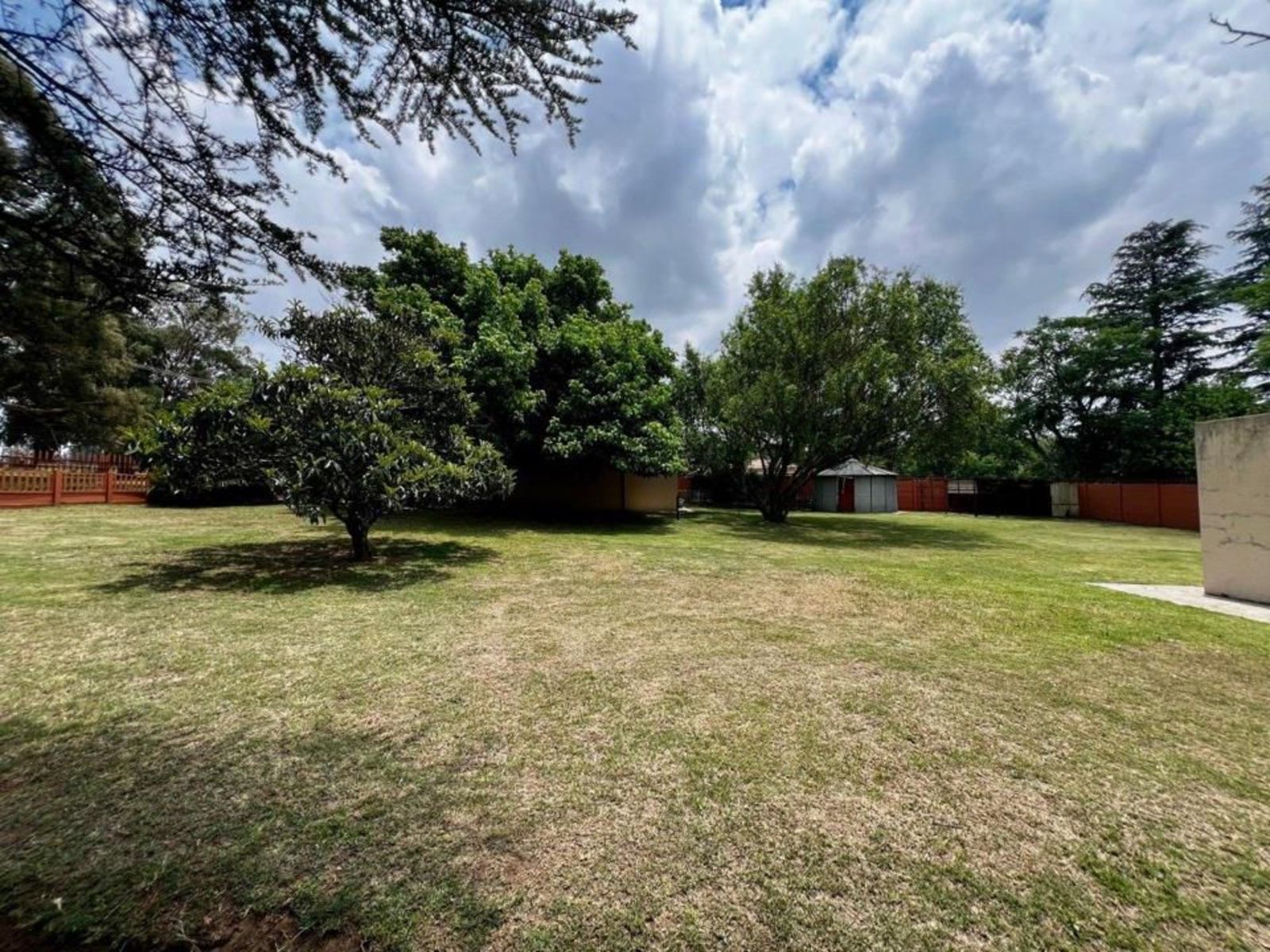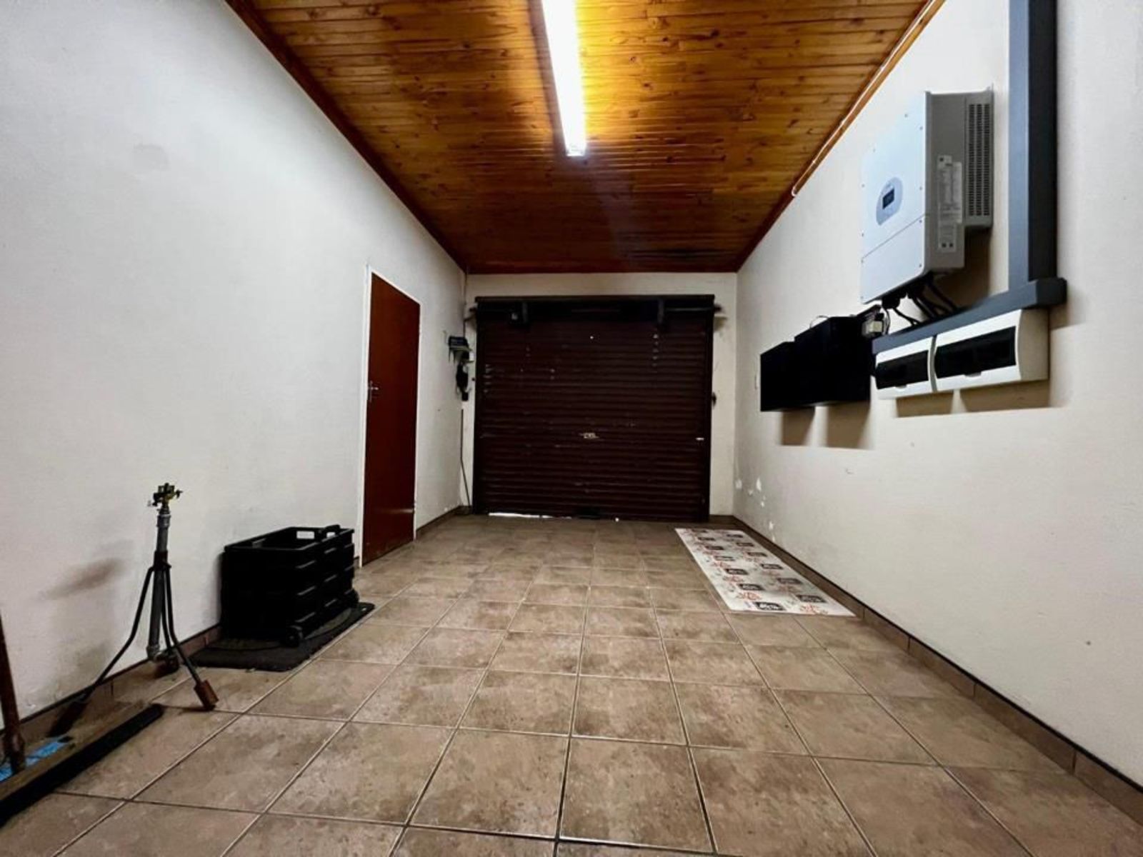 Practical features include a borehole with two tanks, a septic tank, and an 8 kW solar system, ensuring reliable daily operations. The five-car garage provides ample parking and storage. The backyard is divided into an entertainment area and an open section suitable for grazing animals or agricultural use, with the borehole feeding a man-made concrete dam for water distribution.