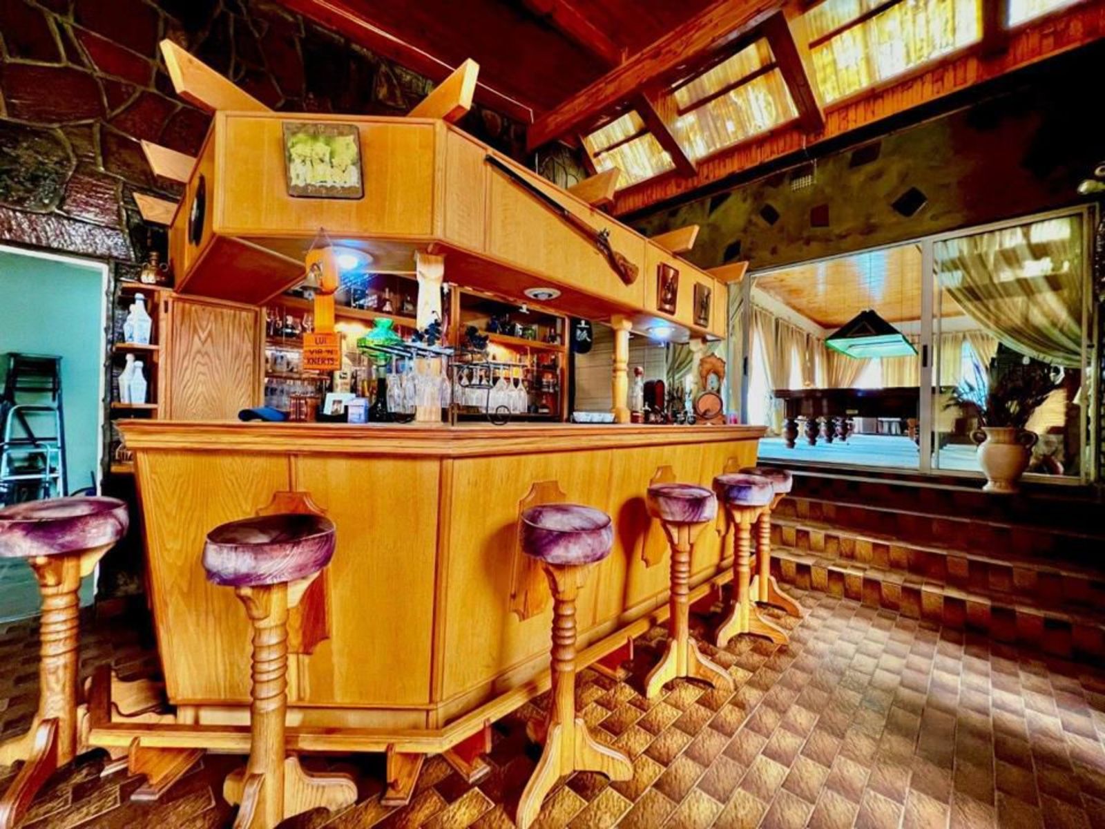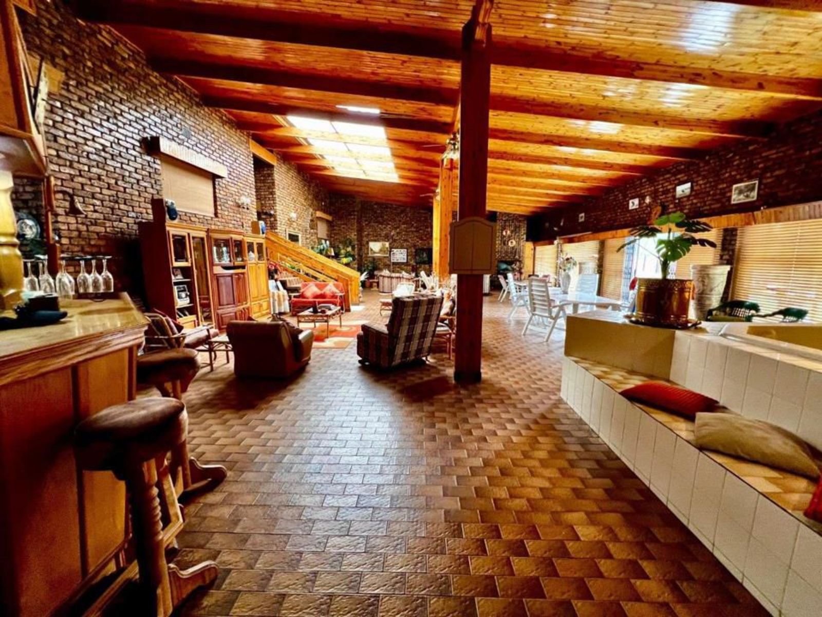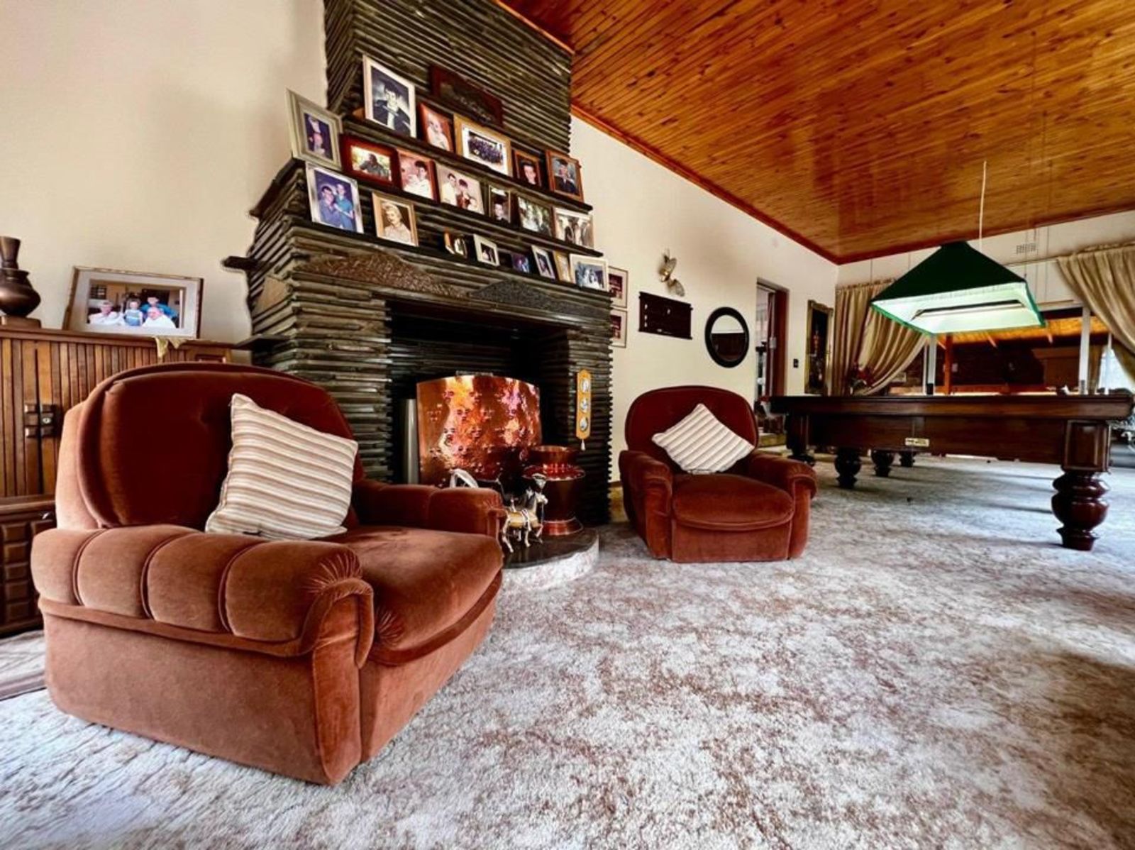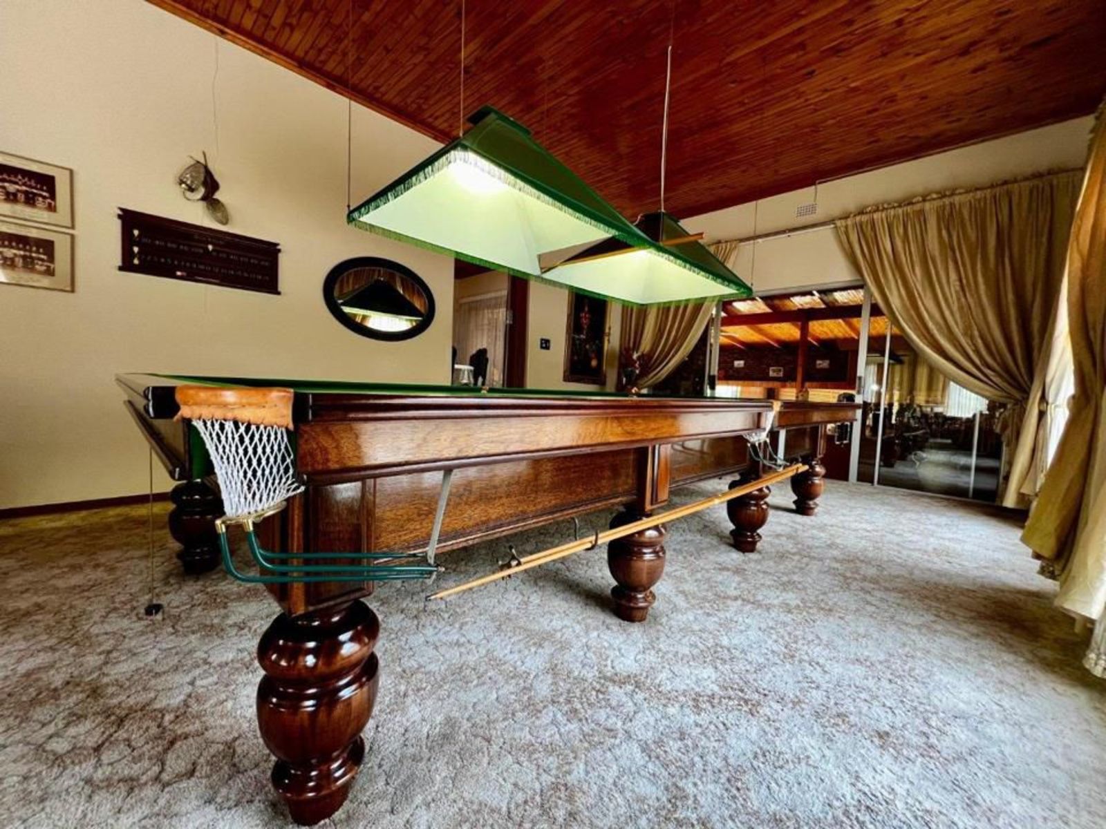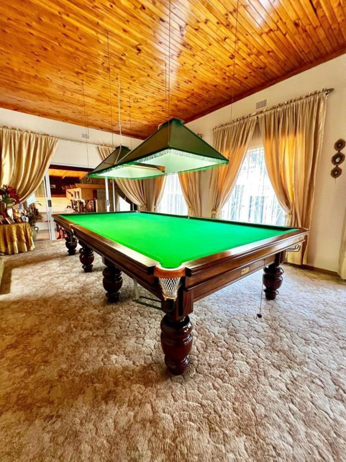 The main house features four bedrooms and three bathrooms, a primary kitchen, and a second kitchen connected to the entertainment area. The living spaces include two lounges, two fireplaces, and a dedicated pool room with a custom-made billiards table, along with cues and scoreboards. The large entertainment area is ideal for hosting, complete with a bar, jacuzzi, braai, and open-plan dining and lounge spaces.