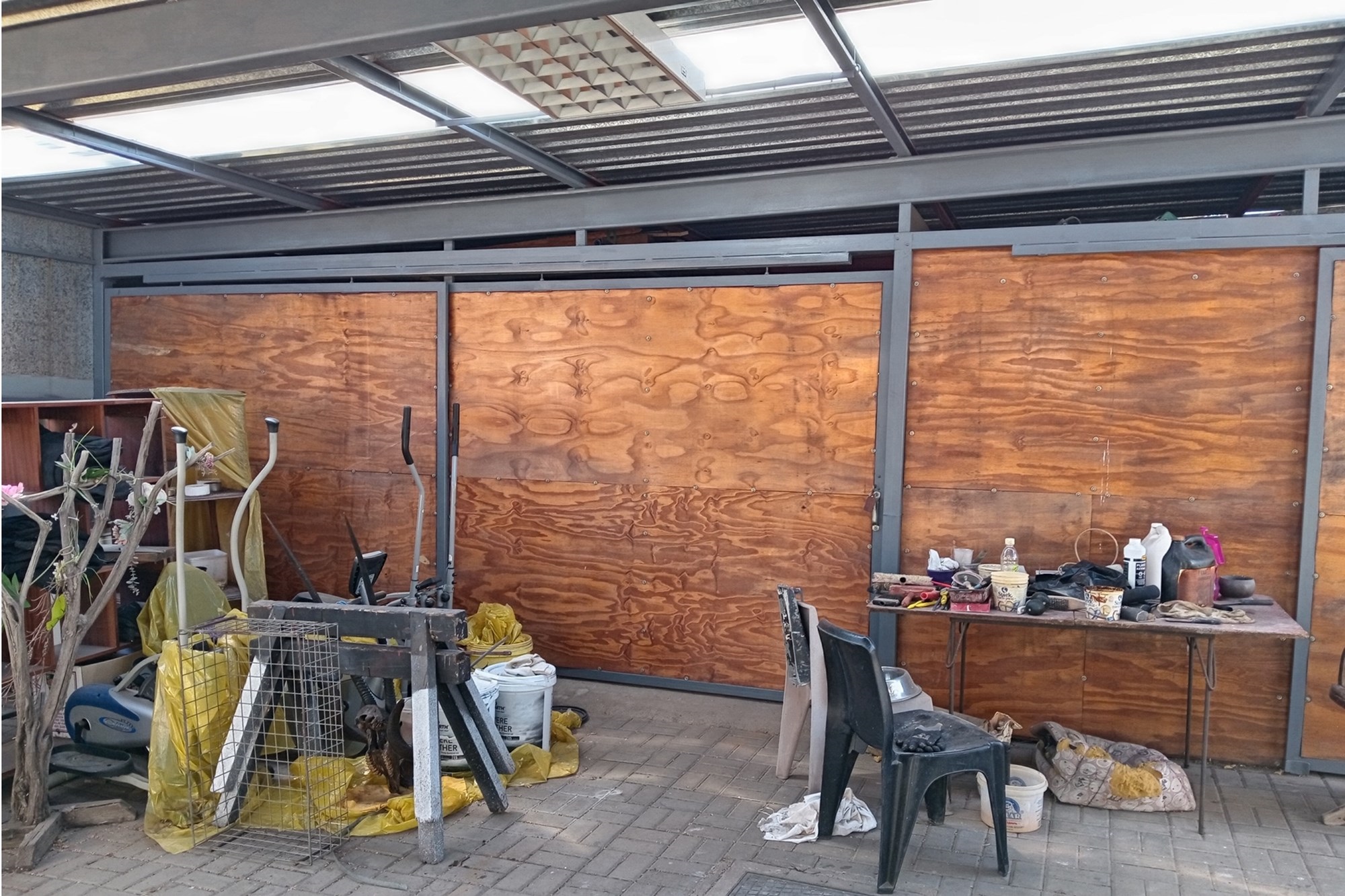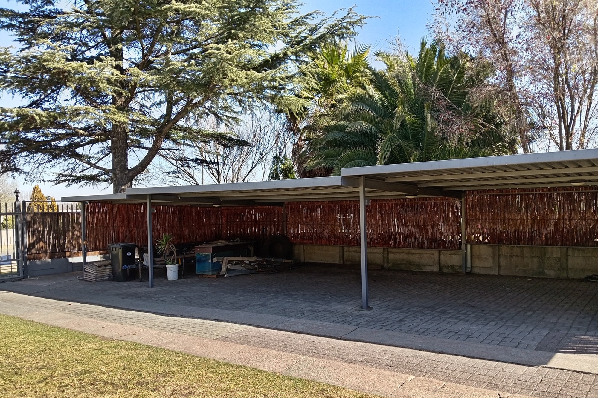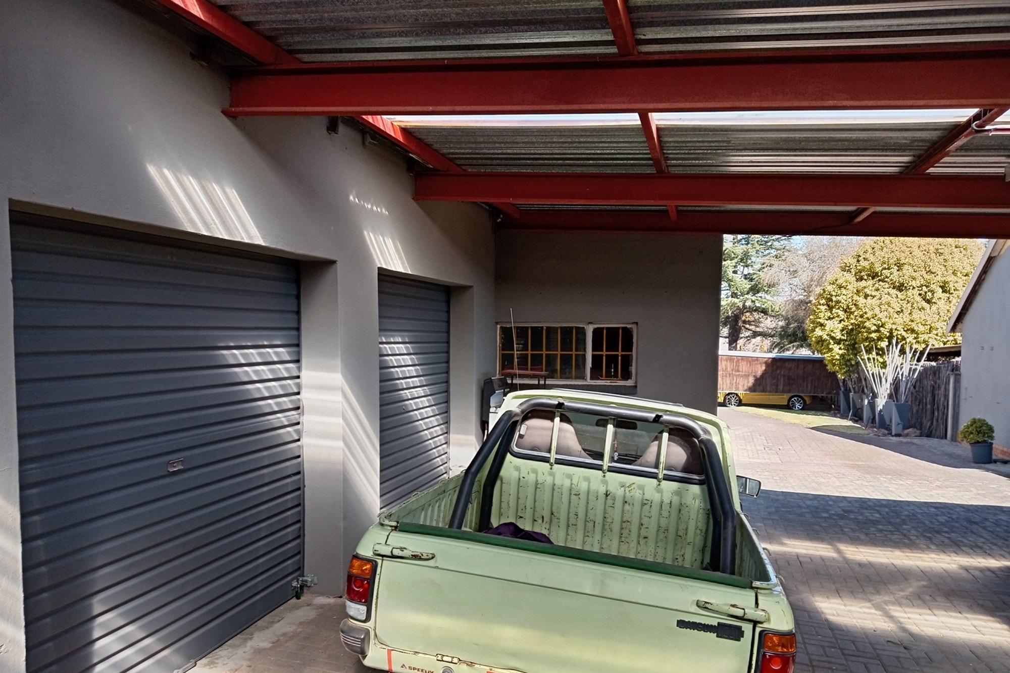 Double garage, 2 storage rooms, and carports accommodating up to 8 vehicles.