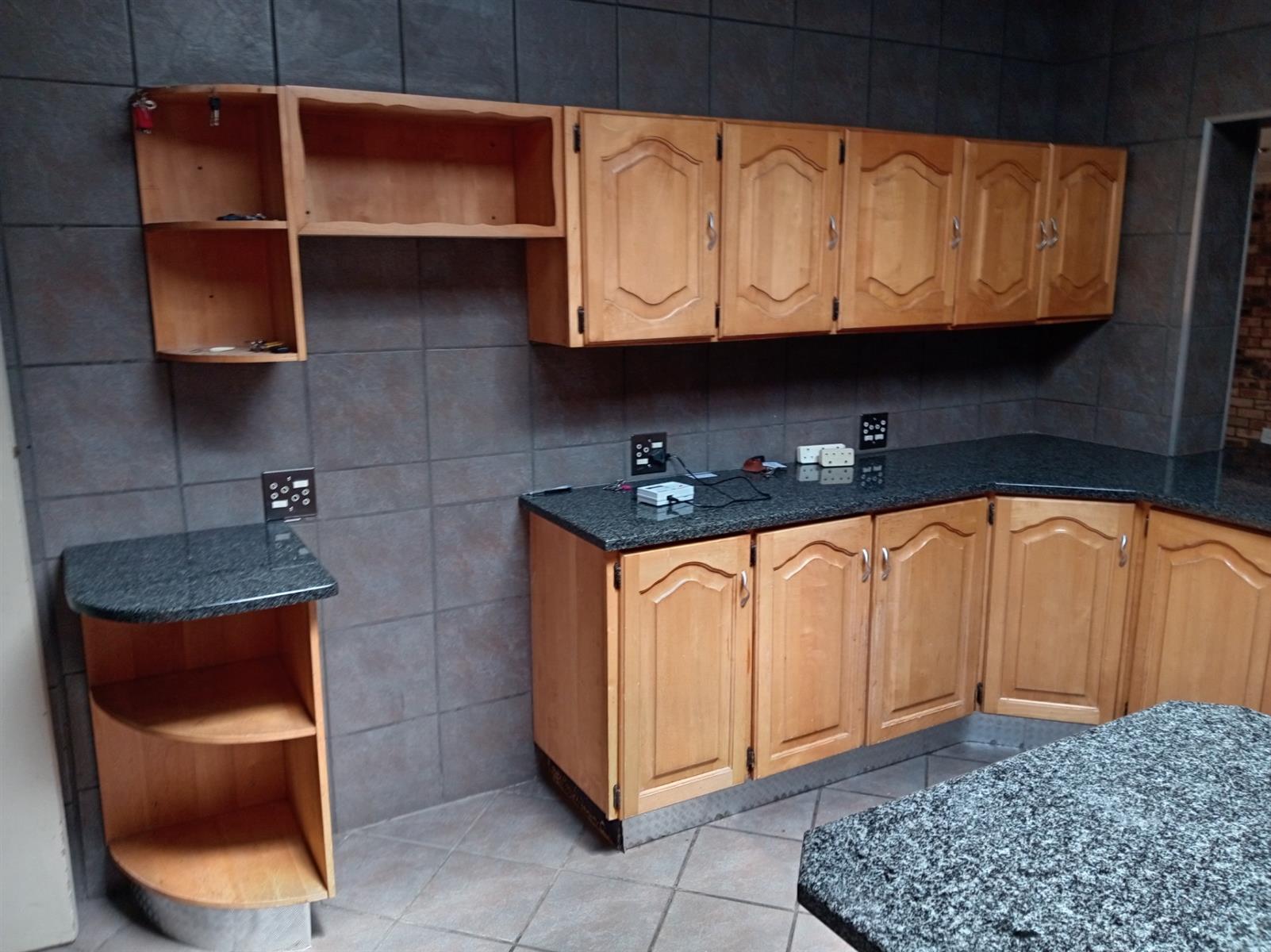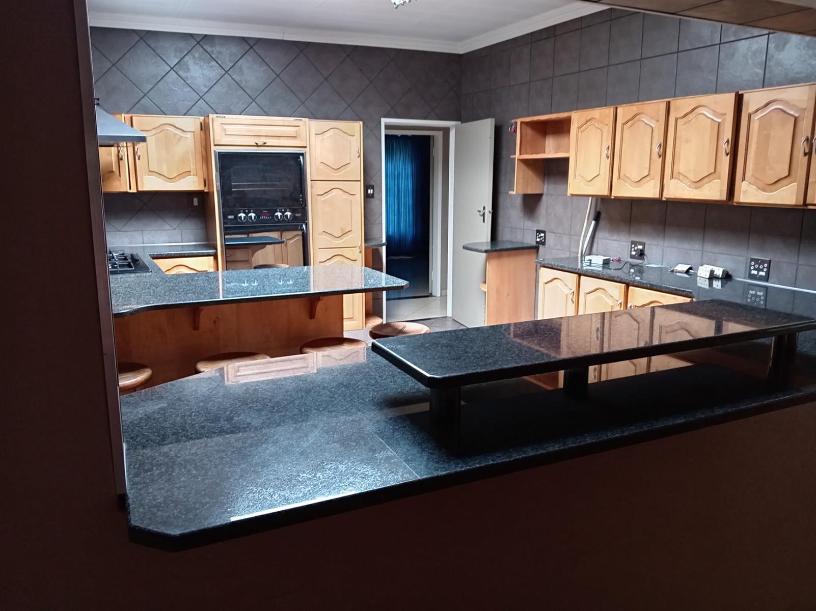 Entertain with ease in the expansive entertainment area featuring a built-in braai, private bathroom, and direct access to the backyard. The open-plan kitchen connects effortlessly to this space, boasting granite countertops, gas stove, double eye-level oven, extractor fan, and a separate scullery for added convenience.