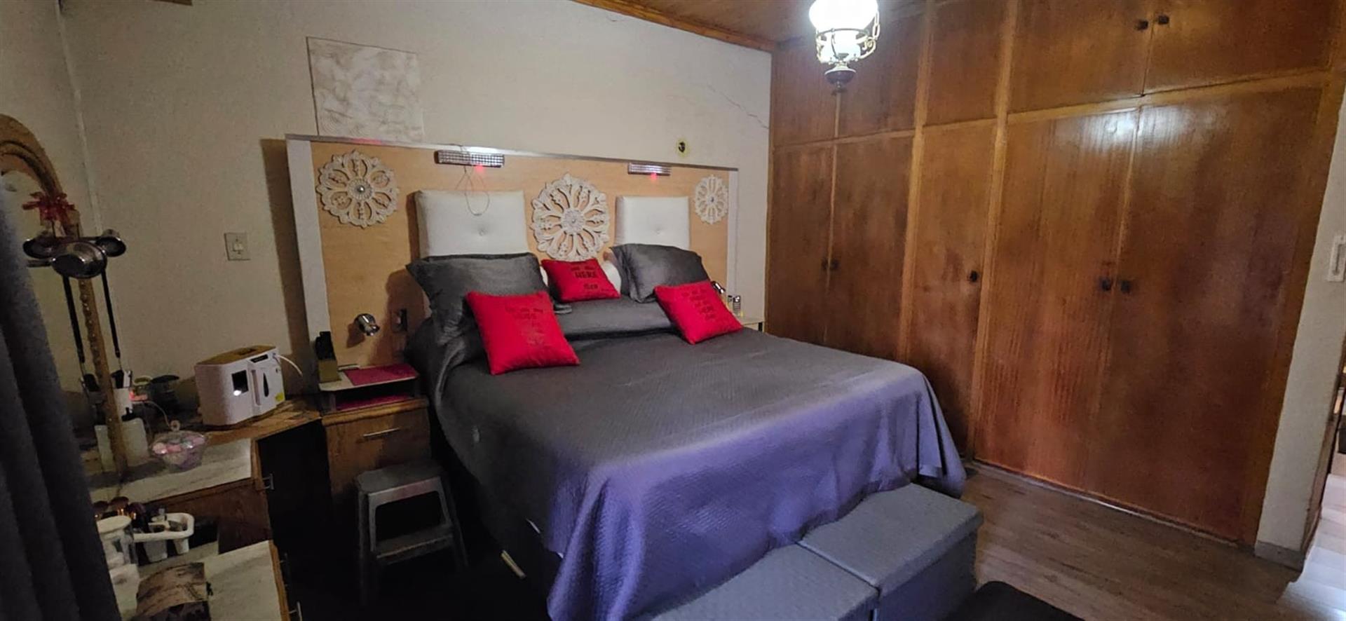 Master suite: Spacious main bedroom with abundant cupboard space and private en-suite (toilet, basin, bath, and shower).