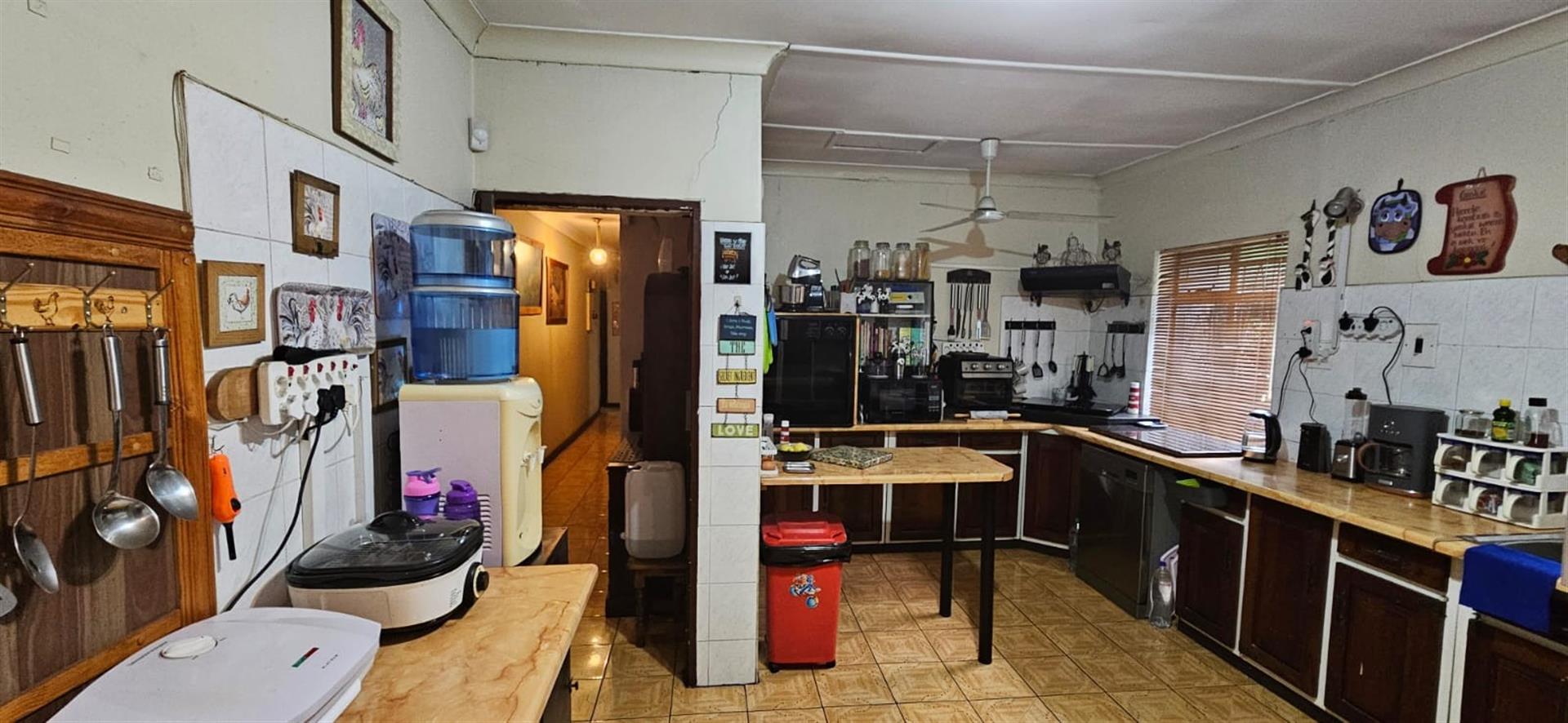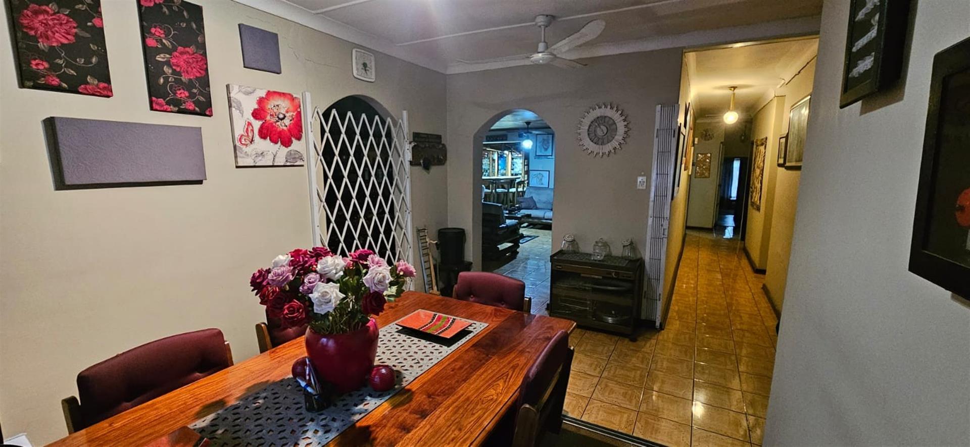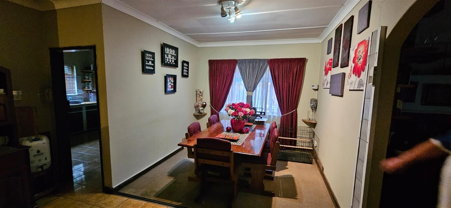 Dining room: Flows into the well-appointed kitchen with ample built-in cupboards.