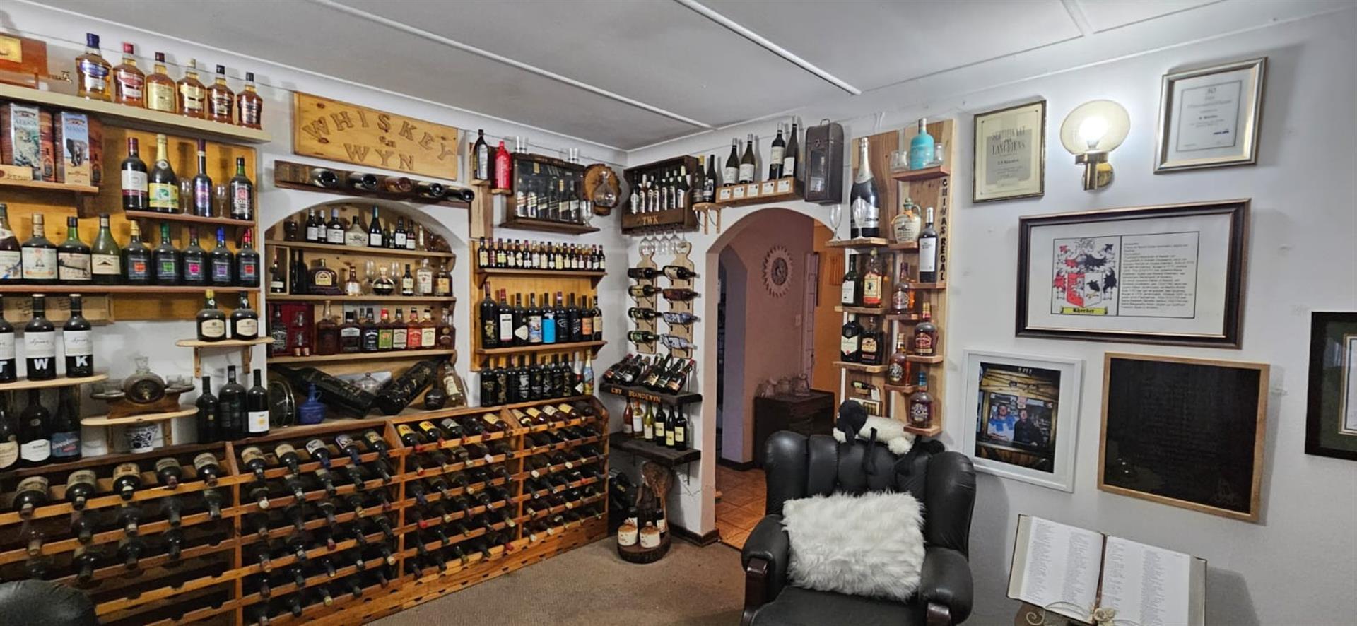 Formal lounge / Collector’s Room: A refined space featuring a built-in wine rack wall, ideal for showcasing prized collections or creating a sophisticated reading lounge.