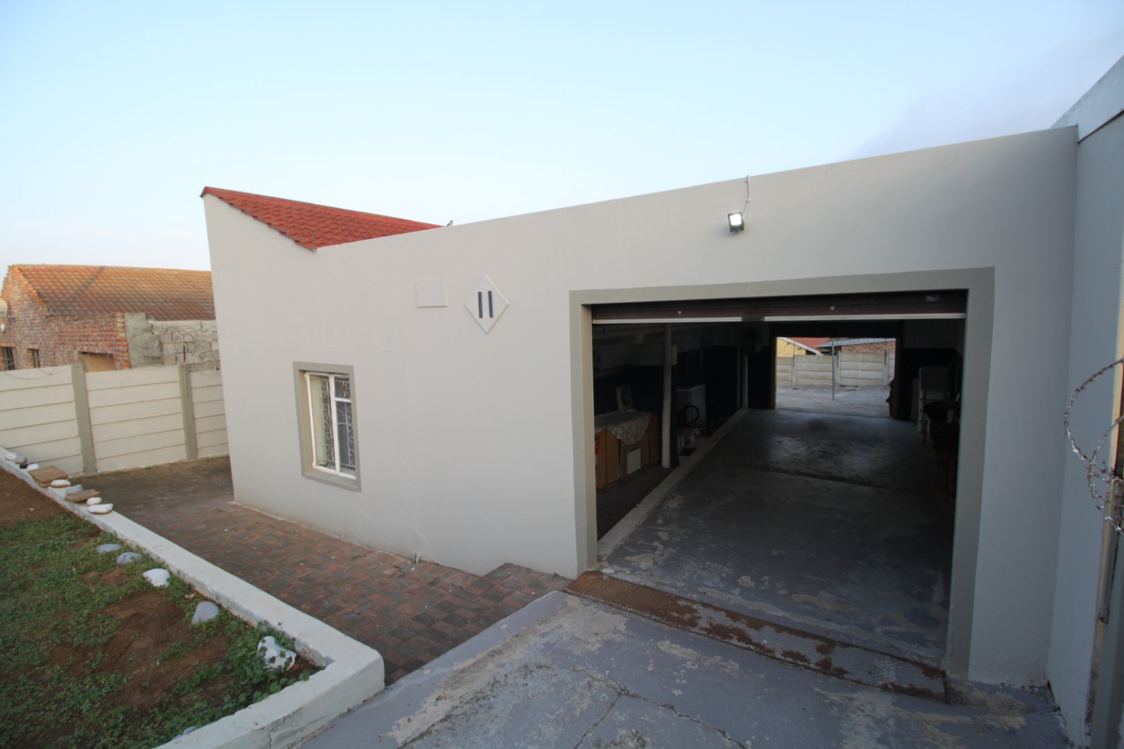 Fully walled and secure, with a remote-controlled gate for added peace of mind.