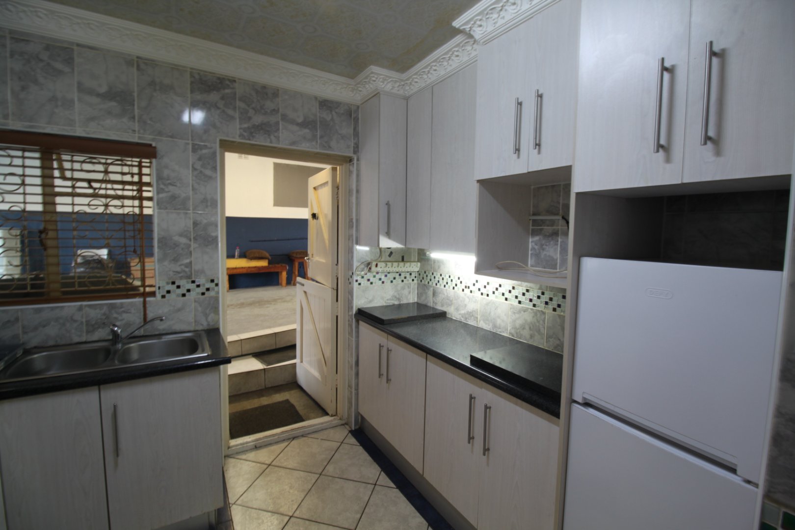 Tiled kitchen and bathroom floors for easy maintenance.