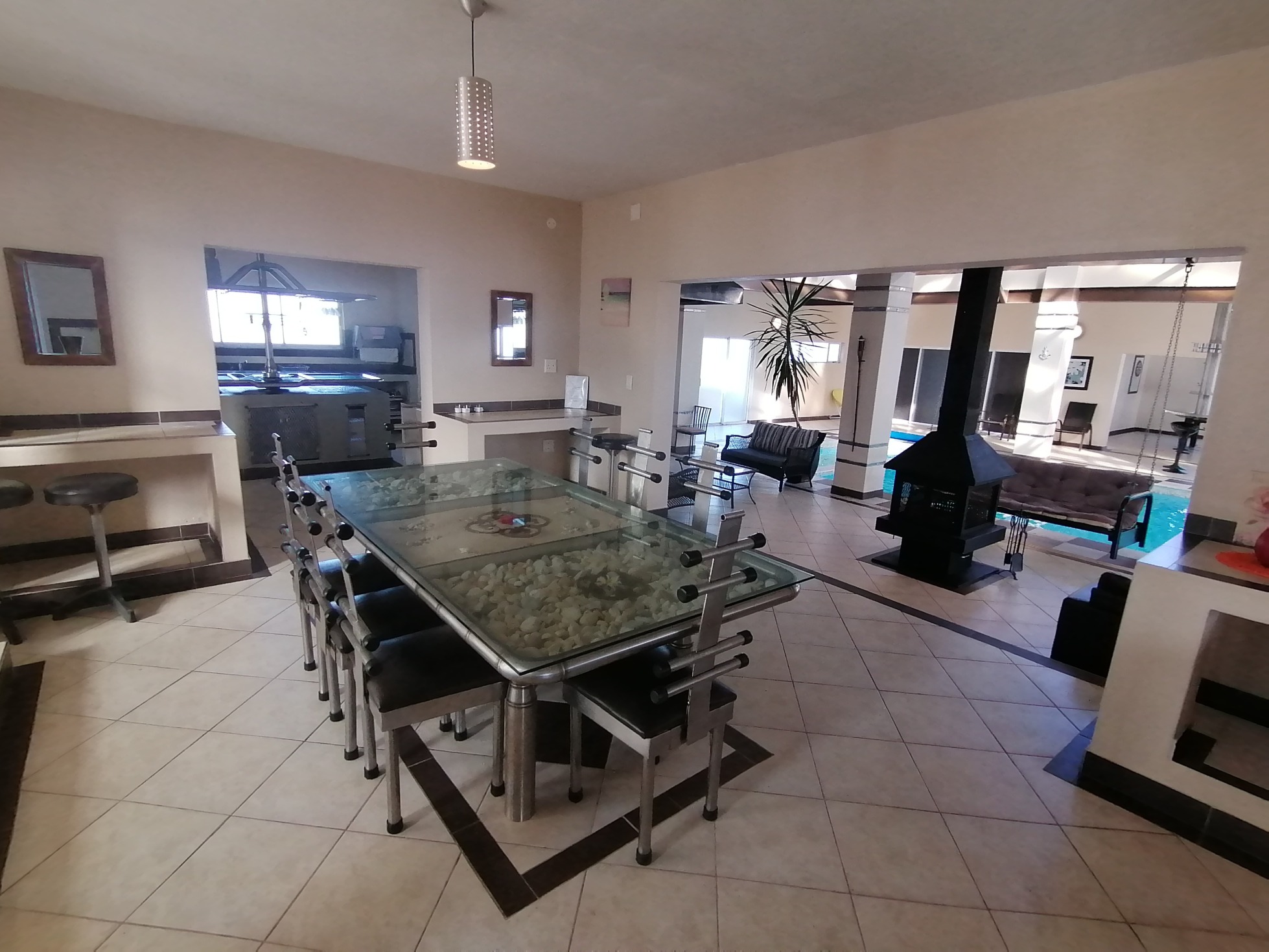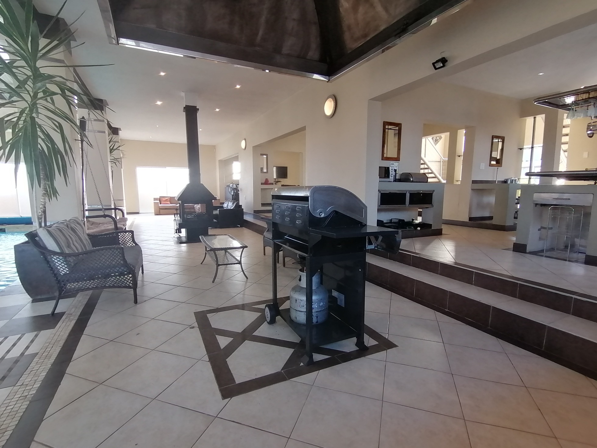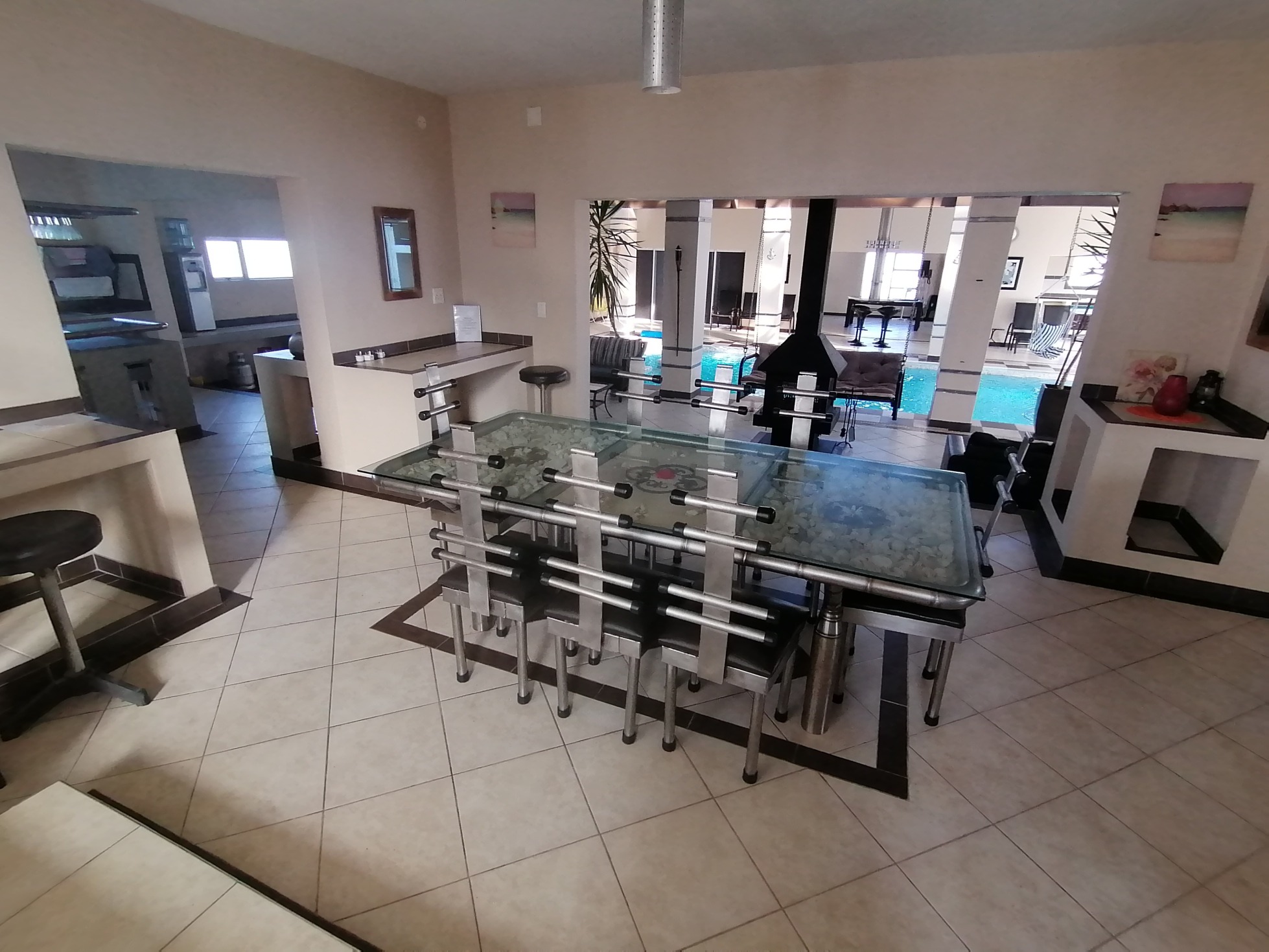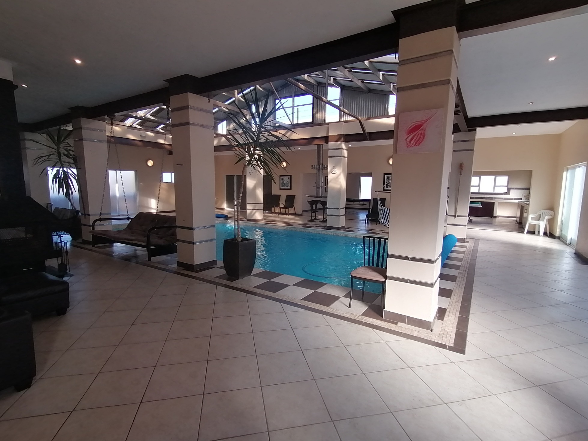 This exceptional residence is perfect for large families or a business venture. With an indoor pool, bar, braai area, and cozy fireplace, it offers year-round entertainment without needing to leave home. The open-plan kitchen connects seamlessly with the vibrant living and dining spaces, ideal for hosting.