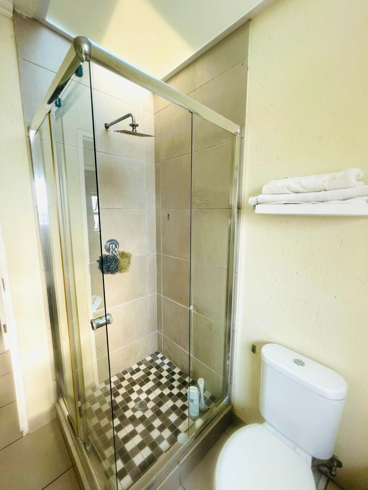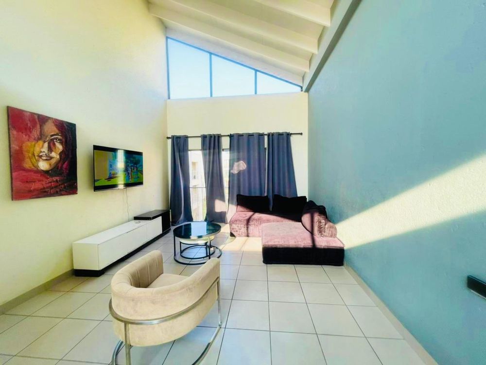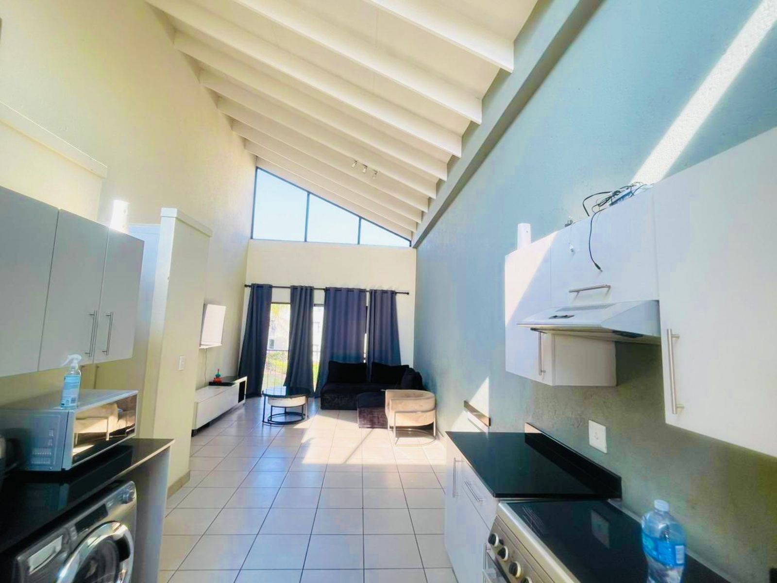 Enjoy open-plan living with a functional kitchen and a spacious lounge area, all enhanced by impressive high ceilings that bring in natural light and add a sense of volume. Both bedrooms are generously sized with built-in cupboards, sharing a full bathroom, plus a separate guest toilet for added practicality.