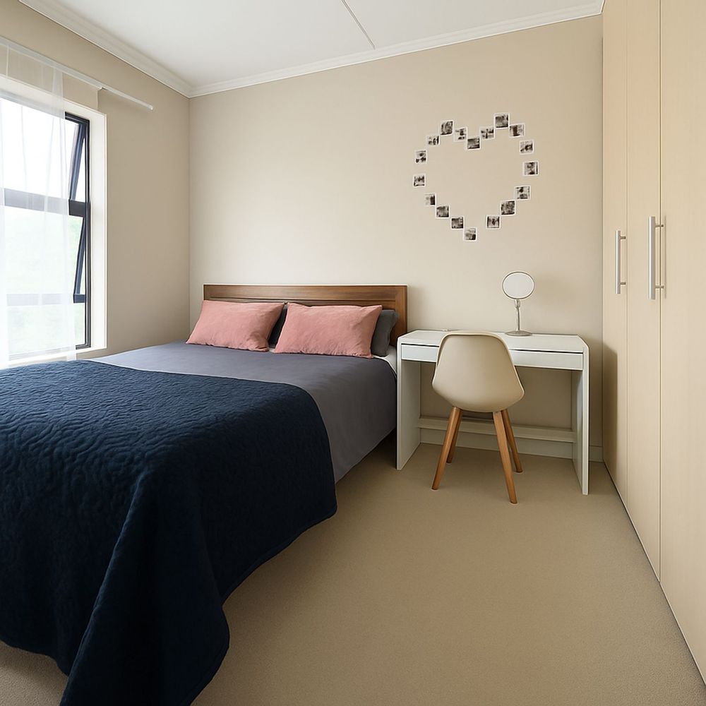 Each bedroom is spacious and comfortable, featuring built in cupboards and soft natural light. The main bedroom includes an en-suite bathroom, while the second bathroom is modern and fresh, catering perfectly to family or guests.