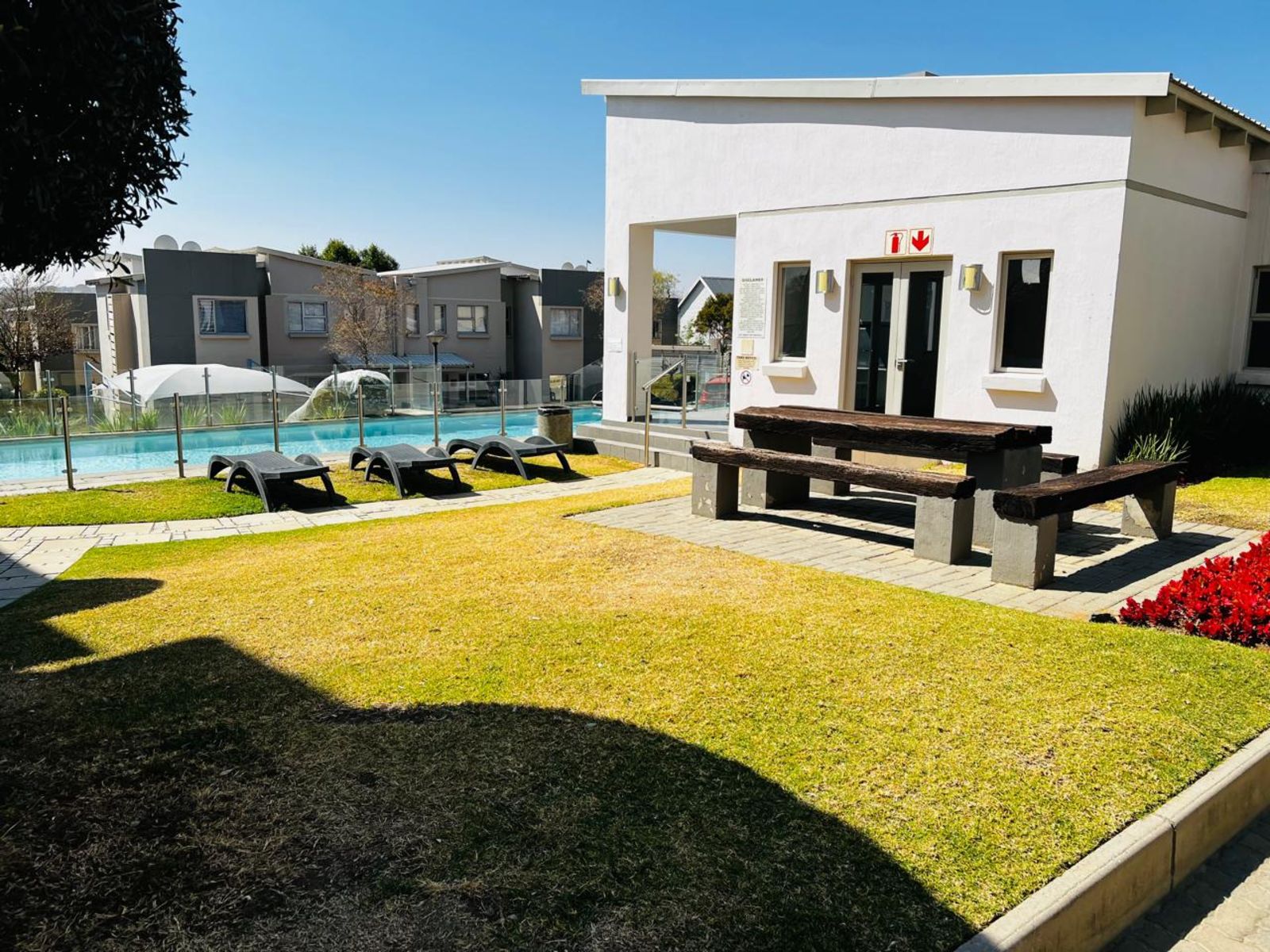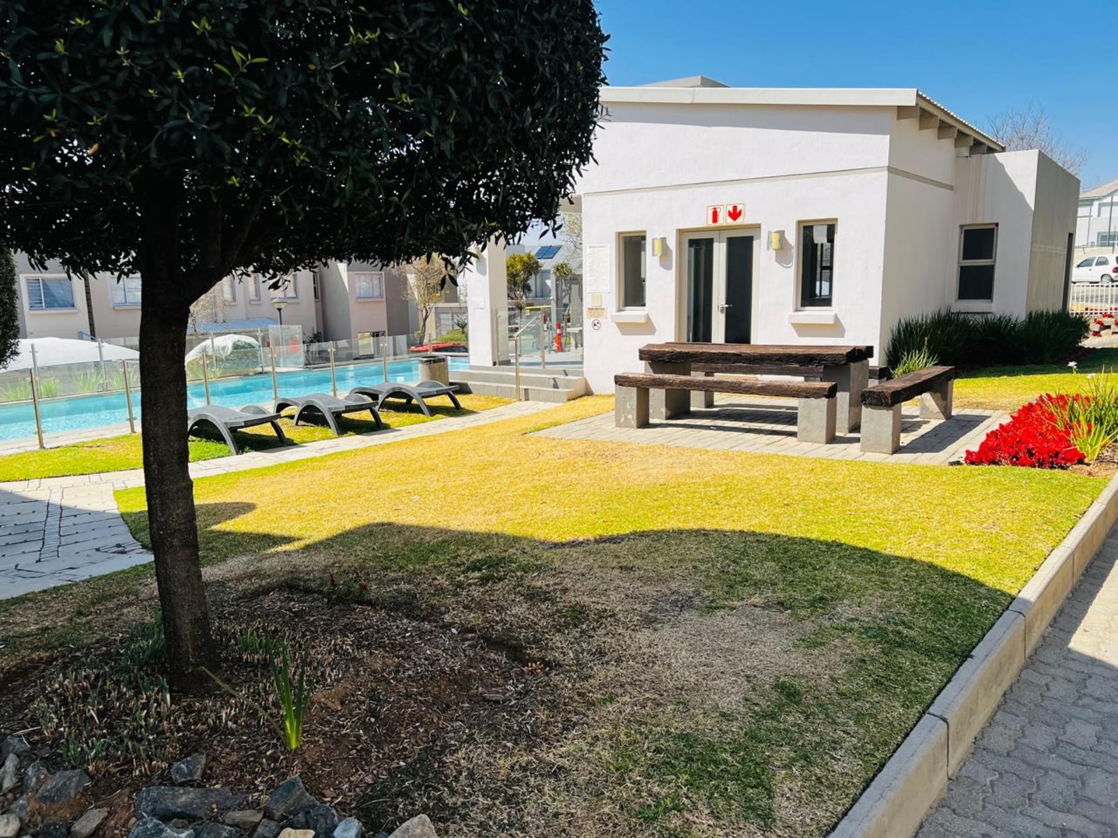 Sparkling communal pool and children’s play area