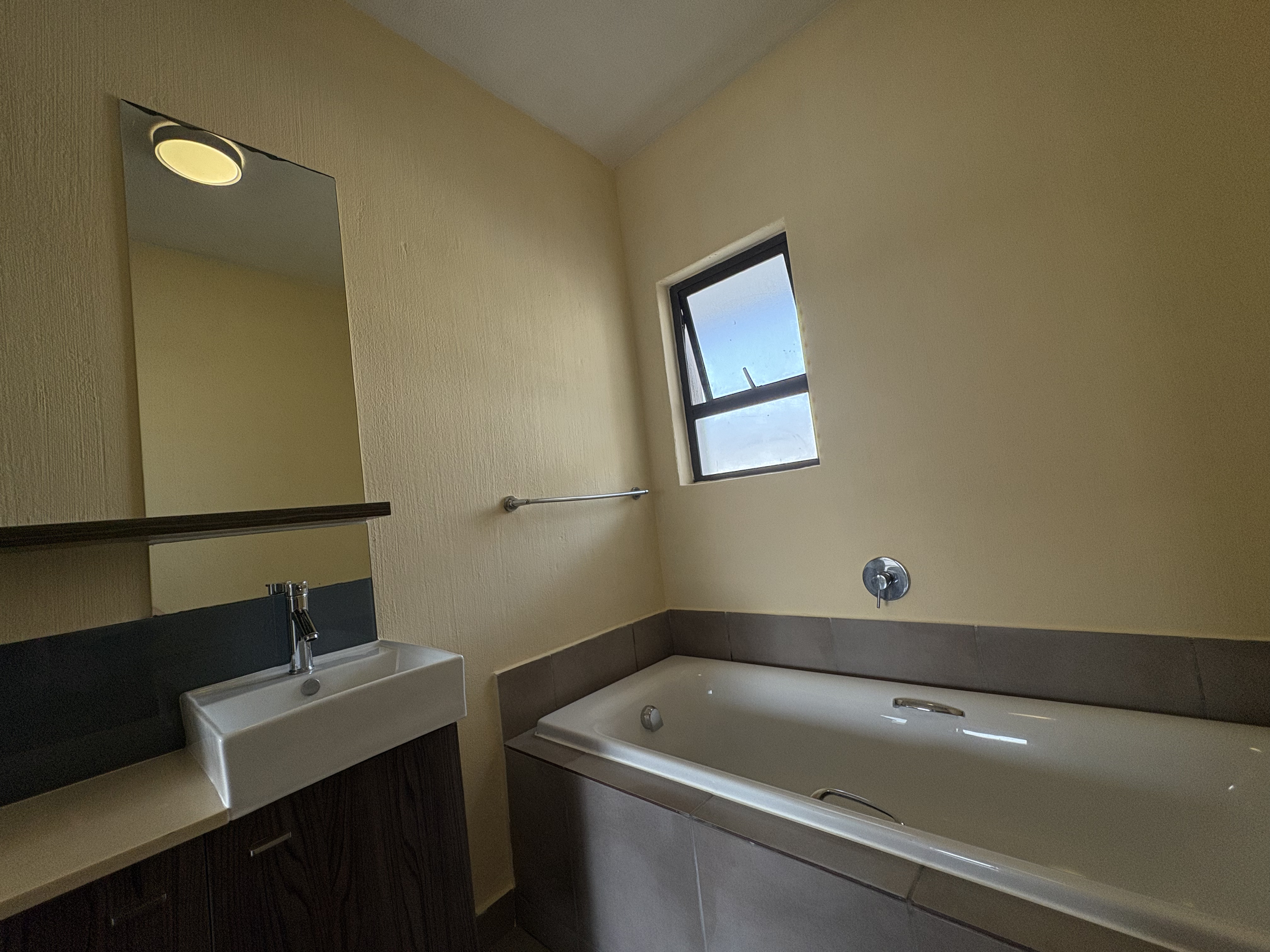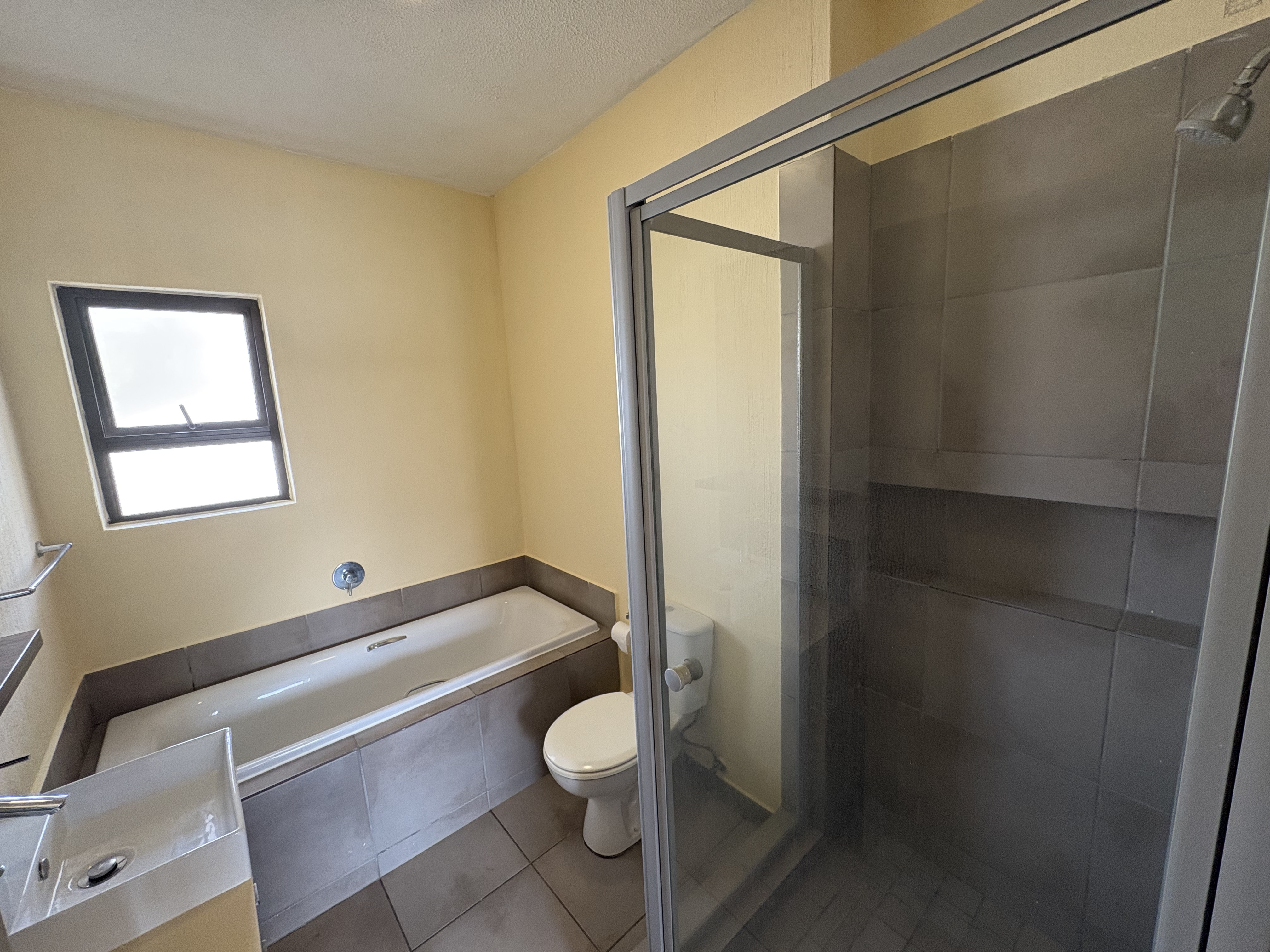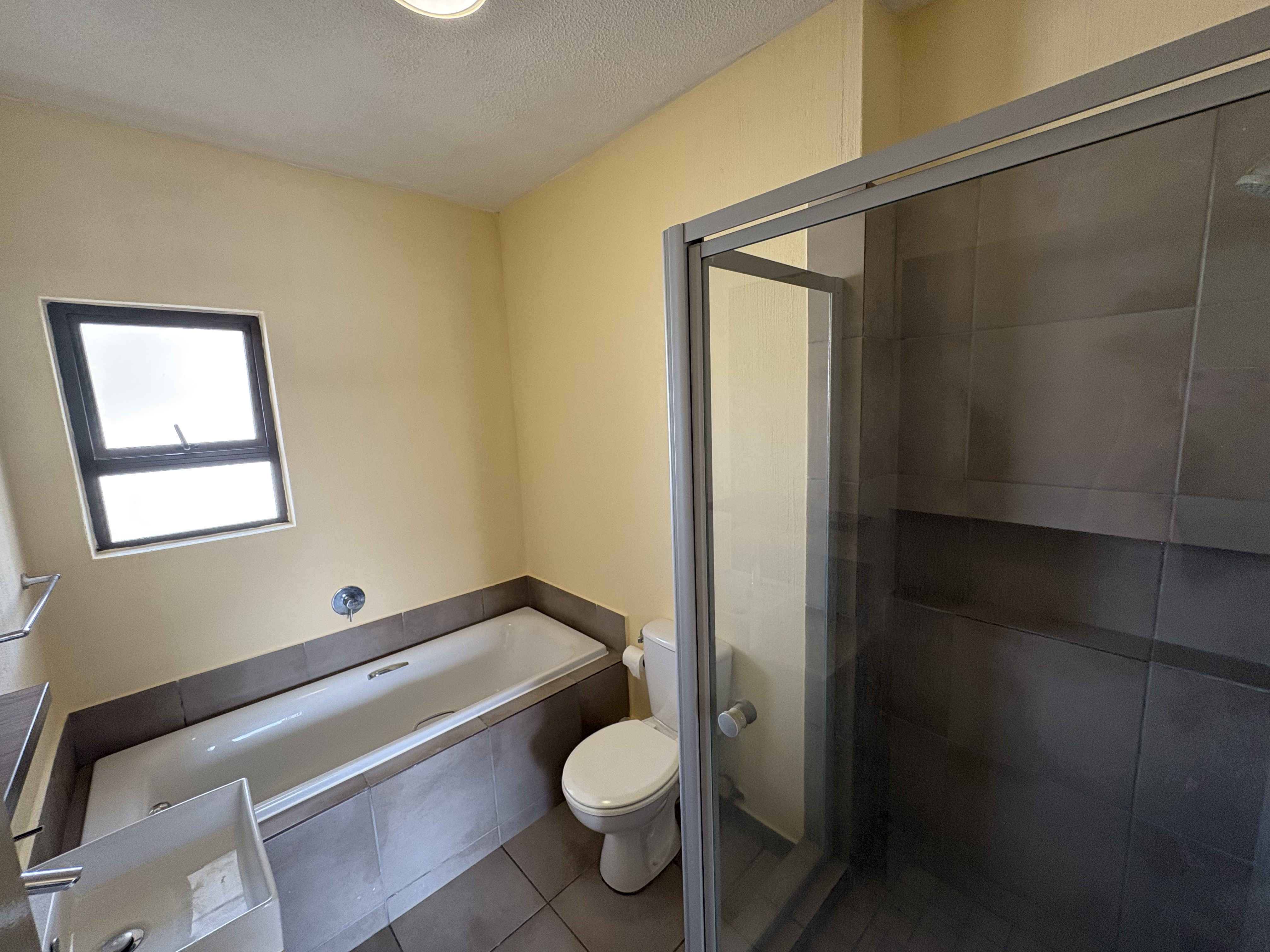 The sleek, contemporary kitchen is fitted with Caesarstone countertops and a gas hob, making it perfect for both everyday cooking and hosting guests. The main bedroom offers a private retreat, while the second bedroom is served by a full bathroom, complete with a soothing bathtub—ideal for unwinding after a long day.
