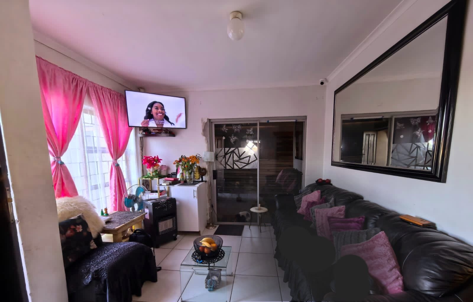 The property is fully enclosed and equipped with surveillance cameras and a monitor. It has burglar bars and safety gates for extra peace of mind. The spacious yard is ideal for children, pets, or future extensions.