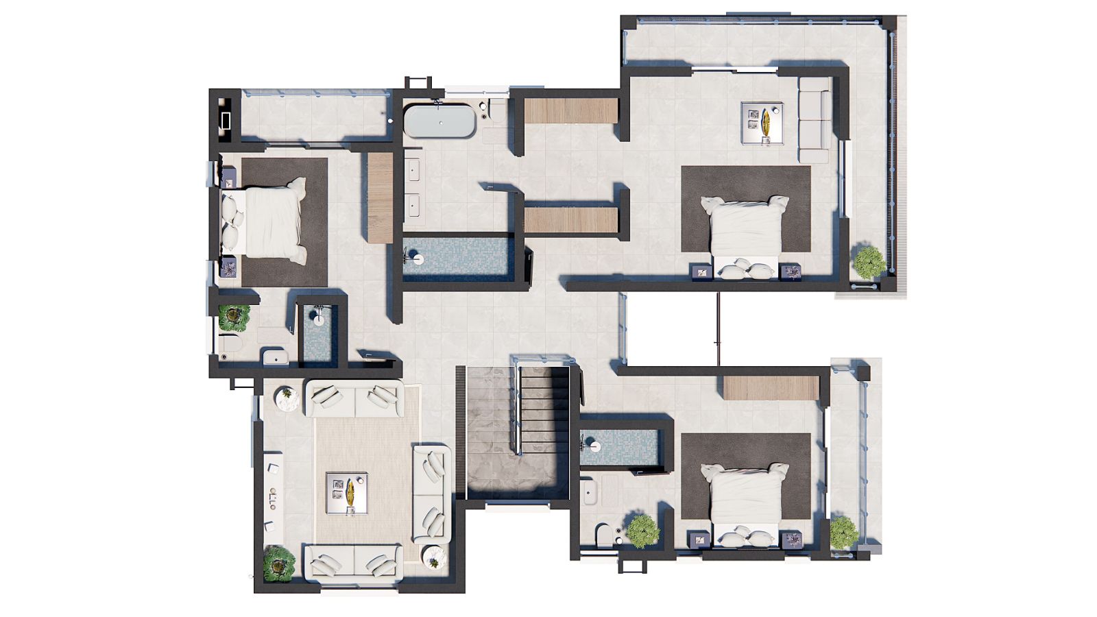 The upper level of 160 sqm includes a private lounge, which can also be converted into a study, gym or 5th bedroom.