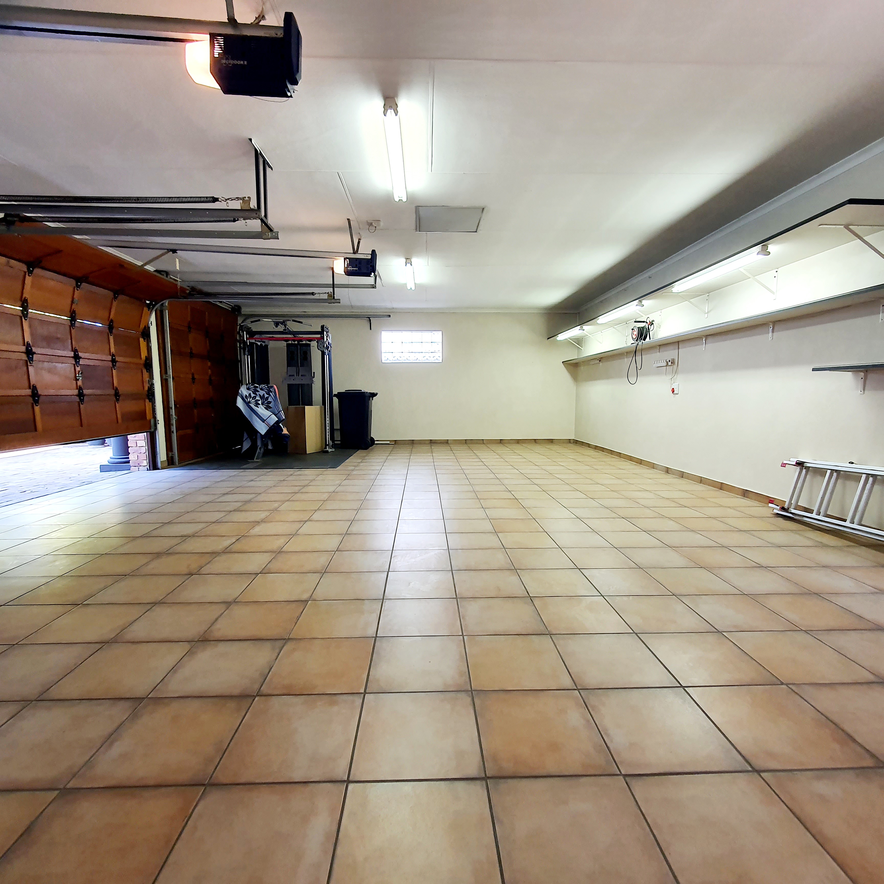 This home boasts three automated garages, each with individual doors. One garage is even large enough to accommodate a caravan. The garage provides direct access to the entrance hall for convenience. An added bonus is the spacious parking area, offering ample parking for guests or clients, well beyond the three garages.