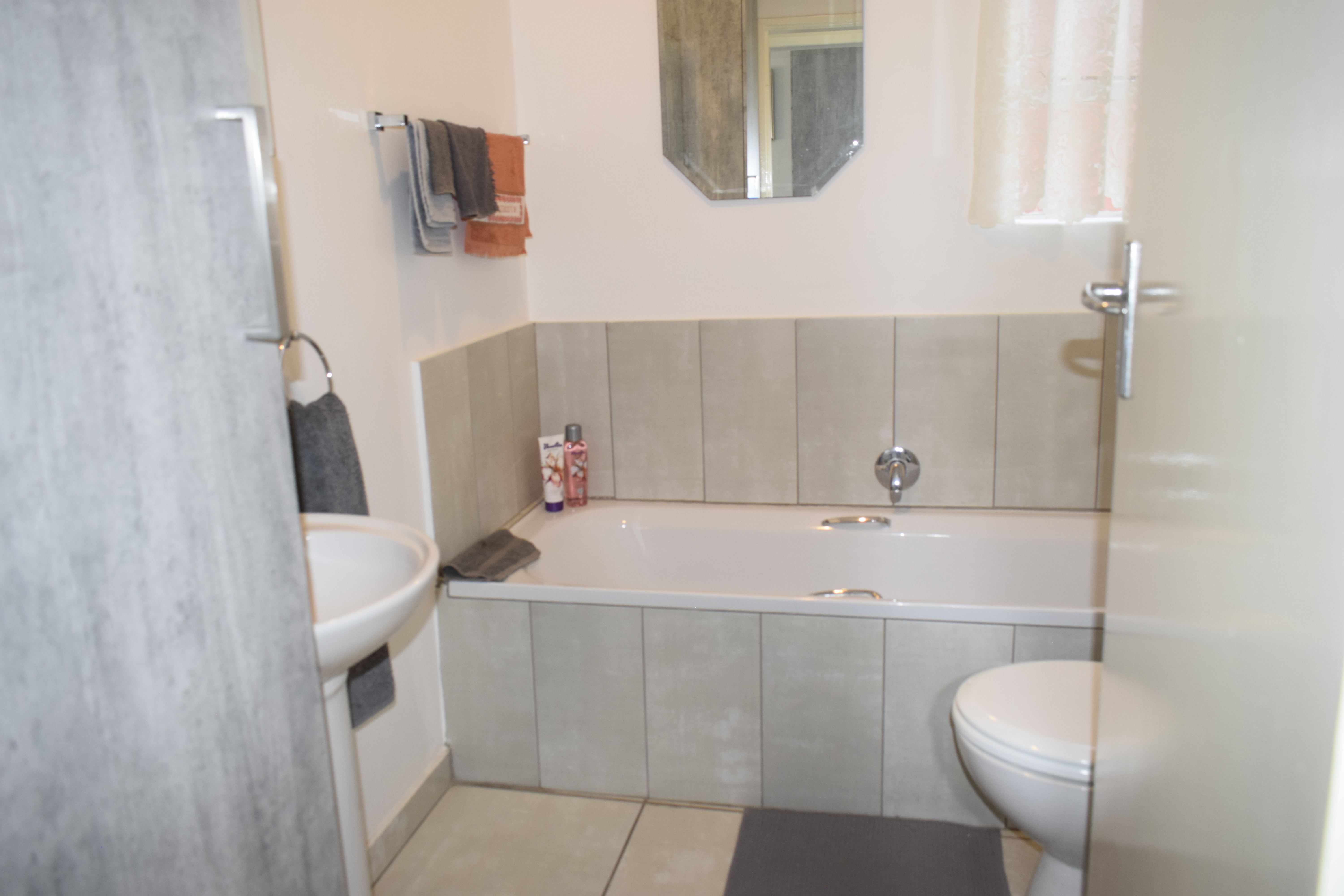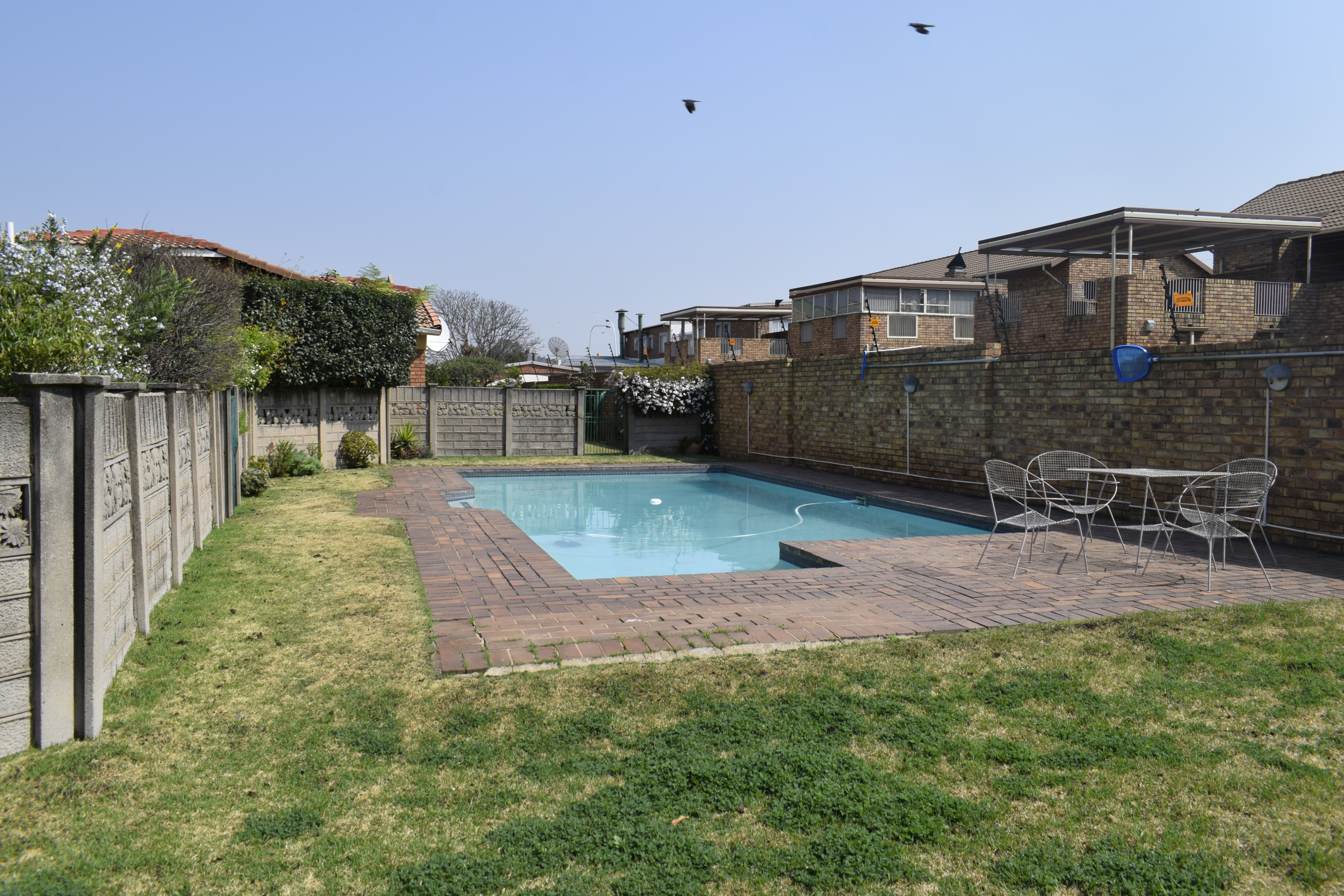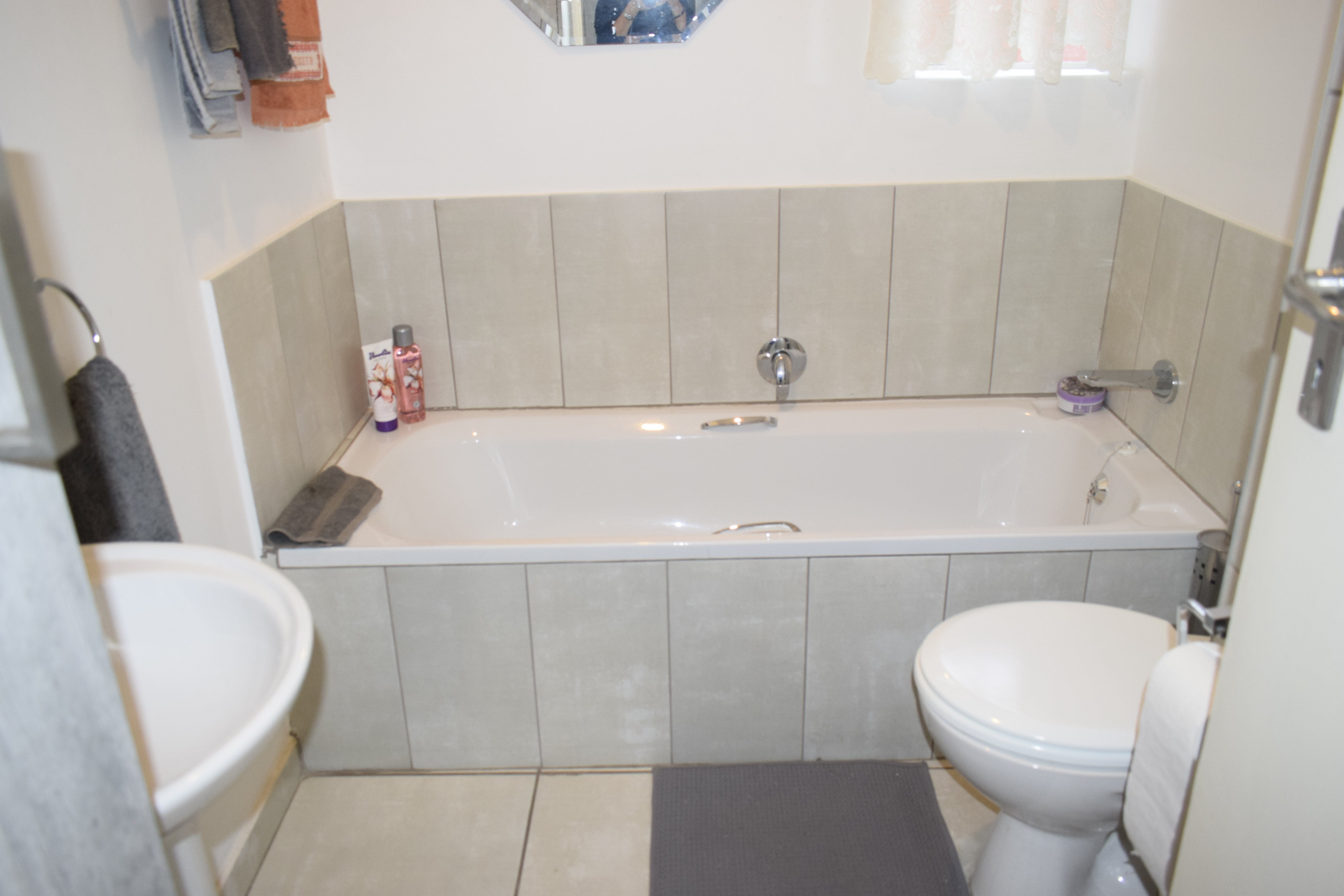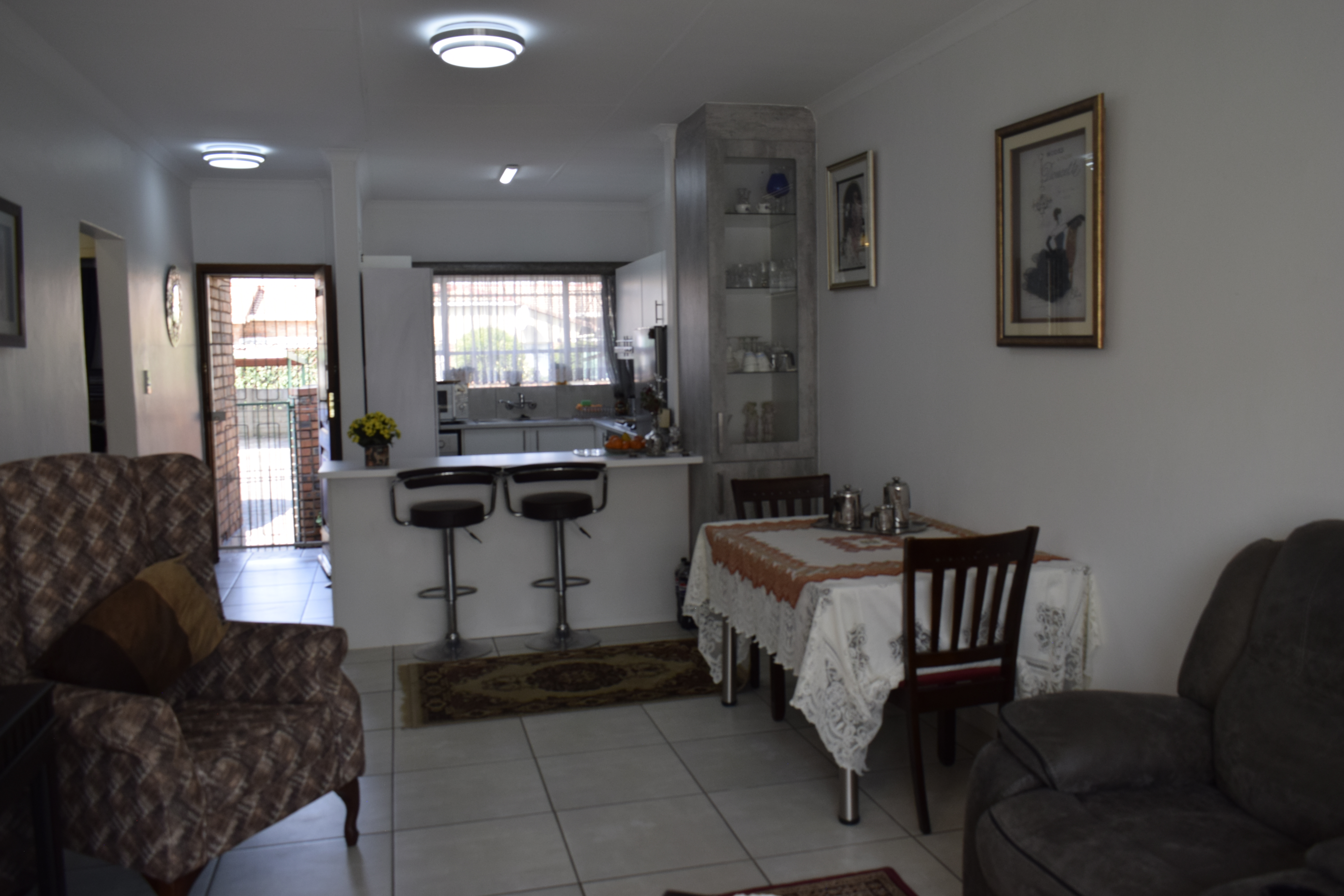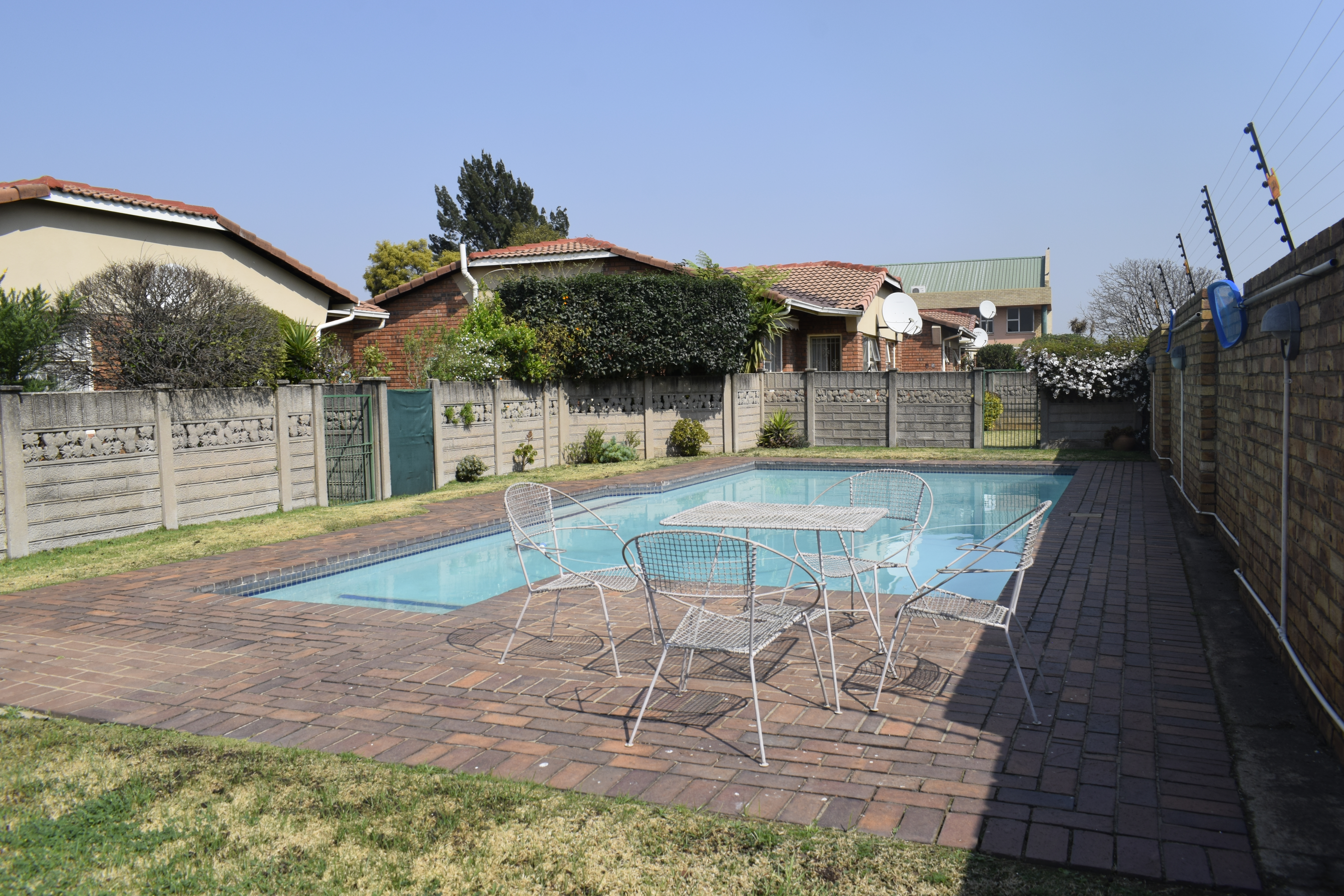 Spacious tiled lounge and dining room with natural light oozing in and opening onto patio and garden area, extra large communal pool.