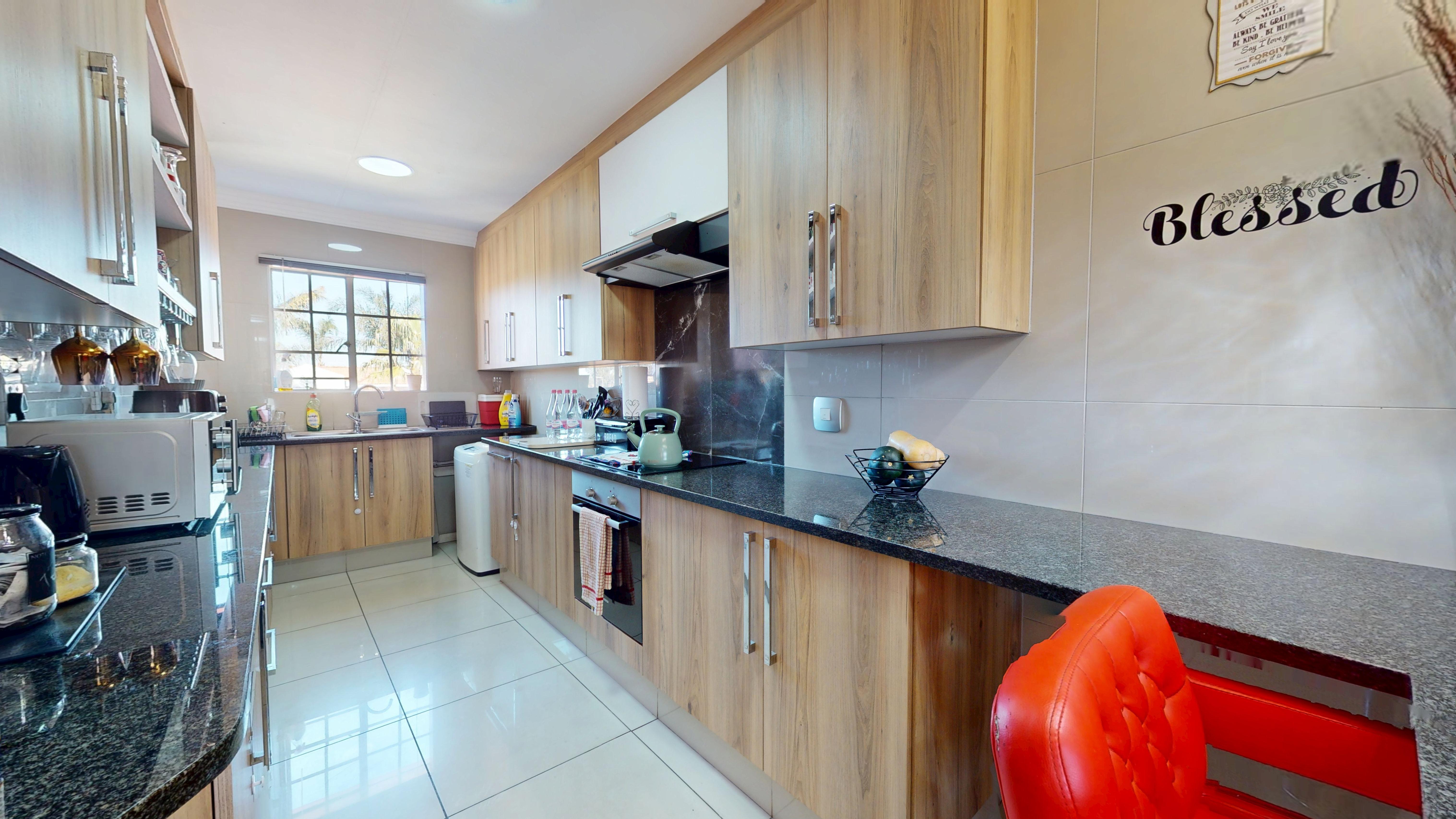 Step out onto the covered patio, perfectly positioned to capture the warmth of the northern sun – the ideal space to relax or enjoy a small braai.