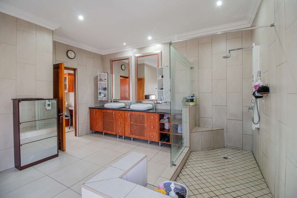 Downstairs, you will find a convenient bedroom and bathroom, ideal for guests or family members who prefer single-level living. The patio, accessible through stacker doors, includes a built-in braai and opens onto a beautifully landscaped garden and a heated sparkling pool. This outdoor area is perfect for alfresco dining, entertaining, or simply unwinding after a long day.