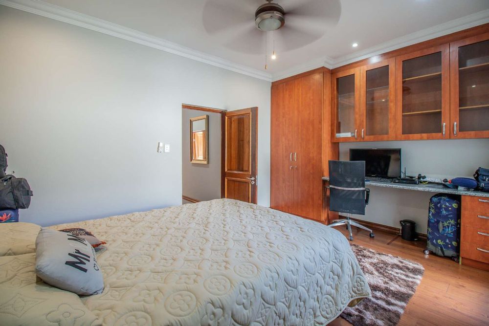 Additional features of this exquisite property include a three-car garage and staff quarters, ensuring that all your practical needs are met. The home is equipped with an inverter and eight solar panels for energy efficiency, prepaid electricity for convenience, and a comprehensive alarm system for peace of mind.