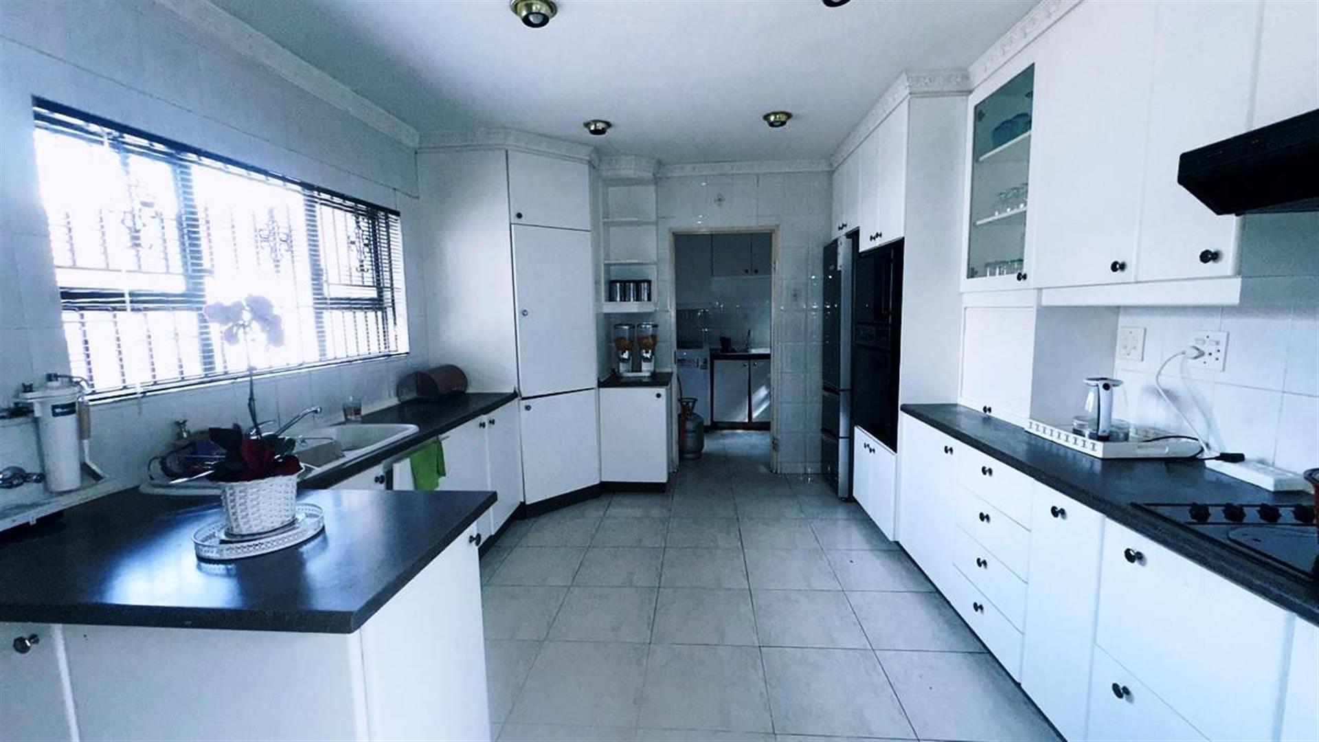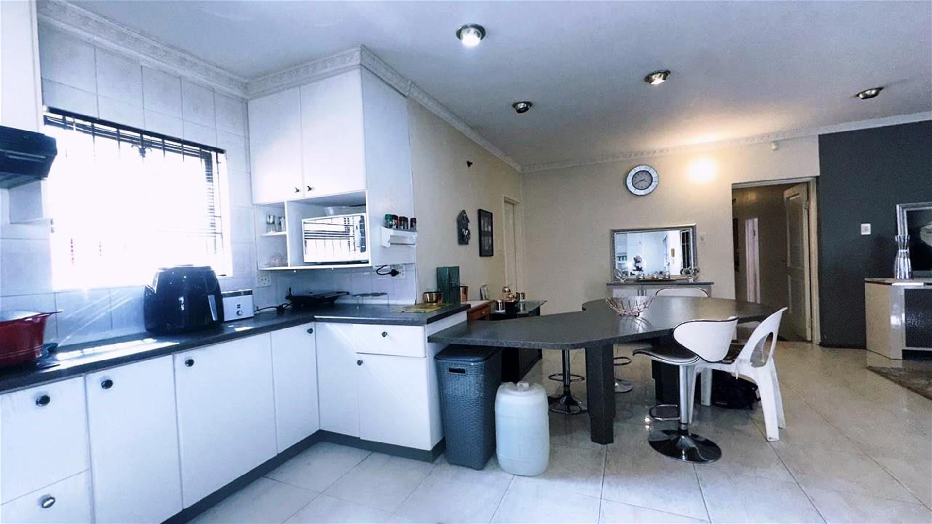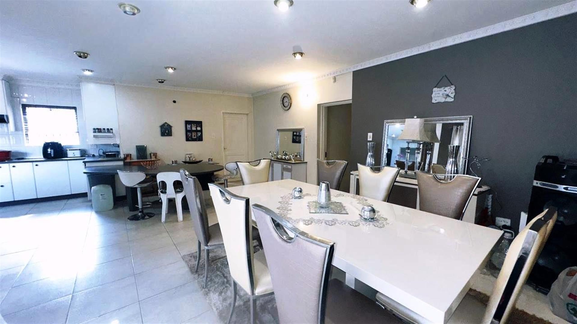 The heart of the home is the open-plan living area, which includes two cozy lounges and a dining room, perfect for entertaining or relaxing with loved ones. The kitchen is a chef`s dream, featuring granite countertops, a gas hob, Electric stove, an under-counter oven, and a breakfast nook. A pantry adds extra storage, making meal preparation a breeze.