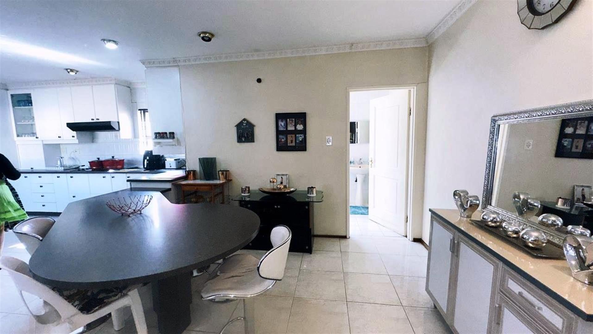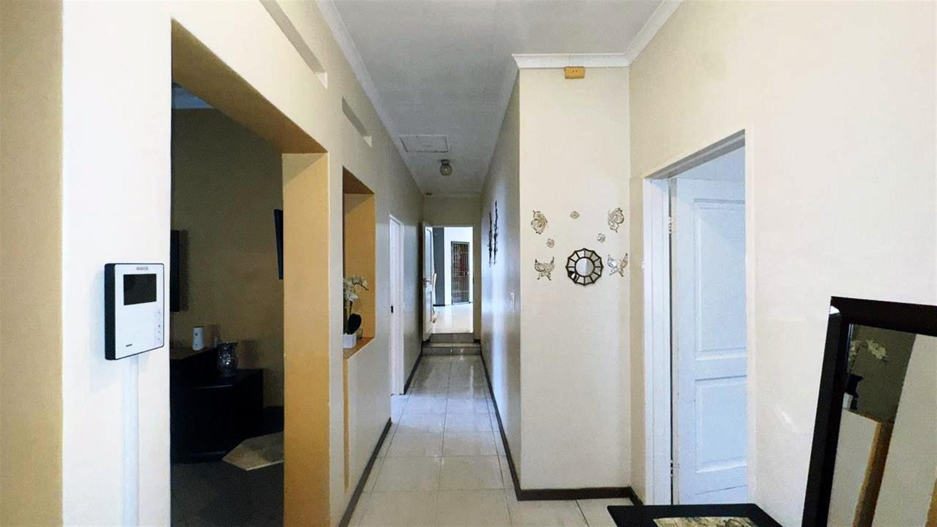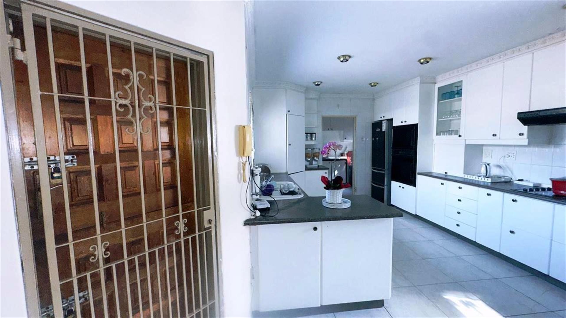 The heart of the home is the open-plan living area, which includes two cozy lounges and a dining room, perfect for entertaining or relaxing with loved ones. The kitchen is a chef`s dream, featuring granite countertops, a gas hob, Electric stove, an under-counter oven, and a breakfast nook. A pantry adds extra storage, making meal preparation a breeze.