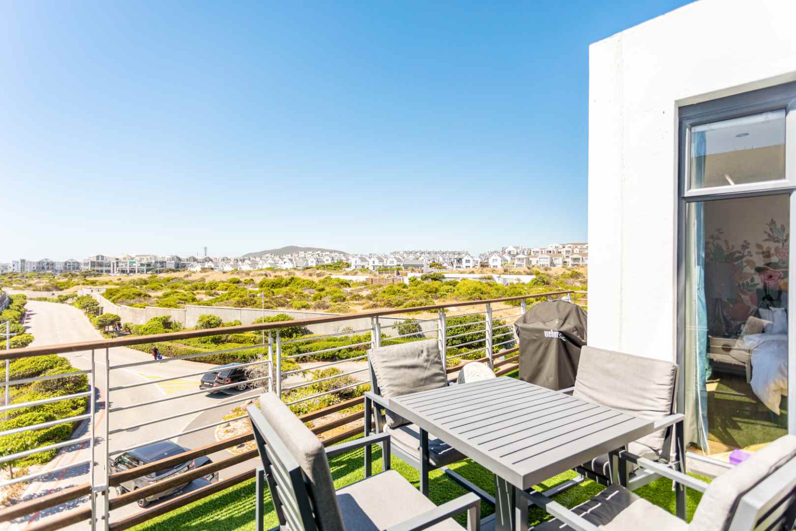 Wind-sheltered balcony perfect for braais on the Weber with spectacular sea views