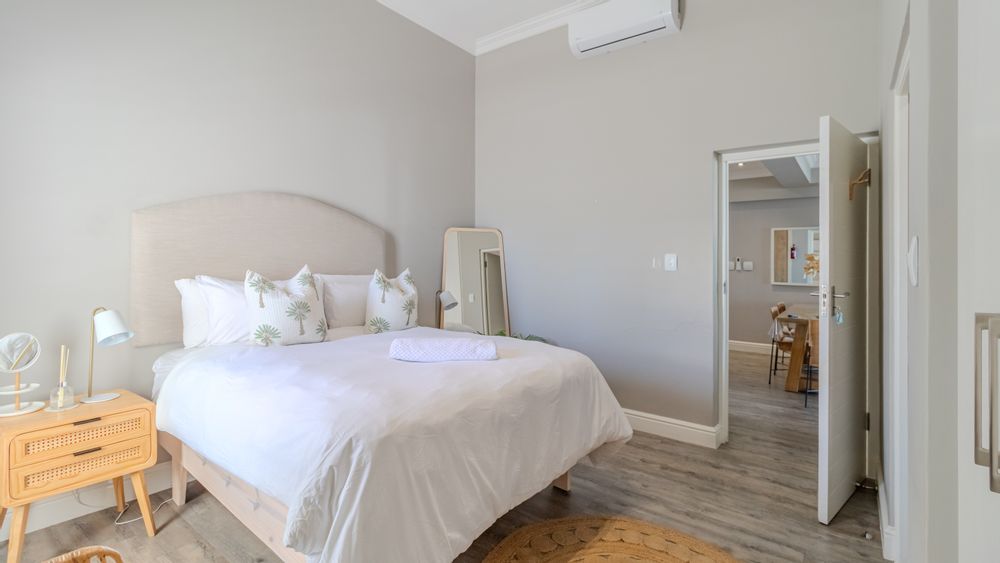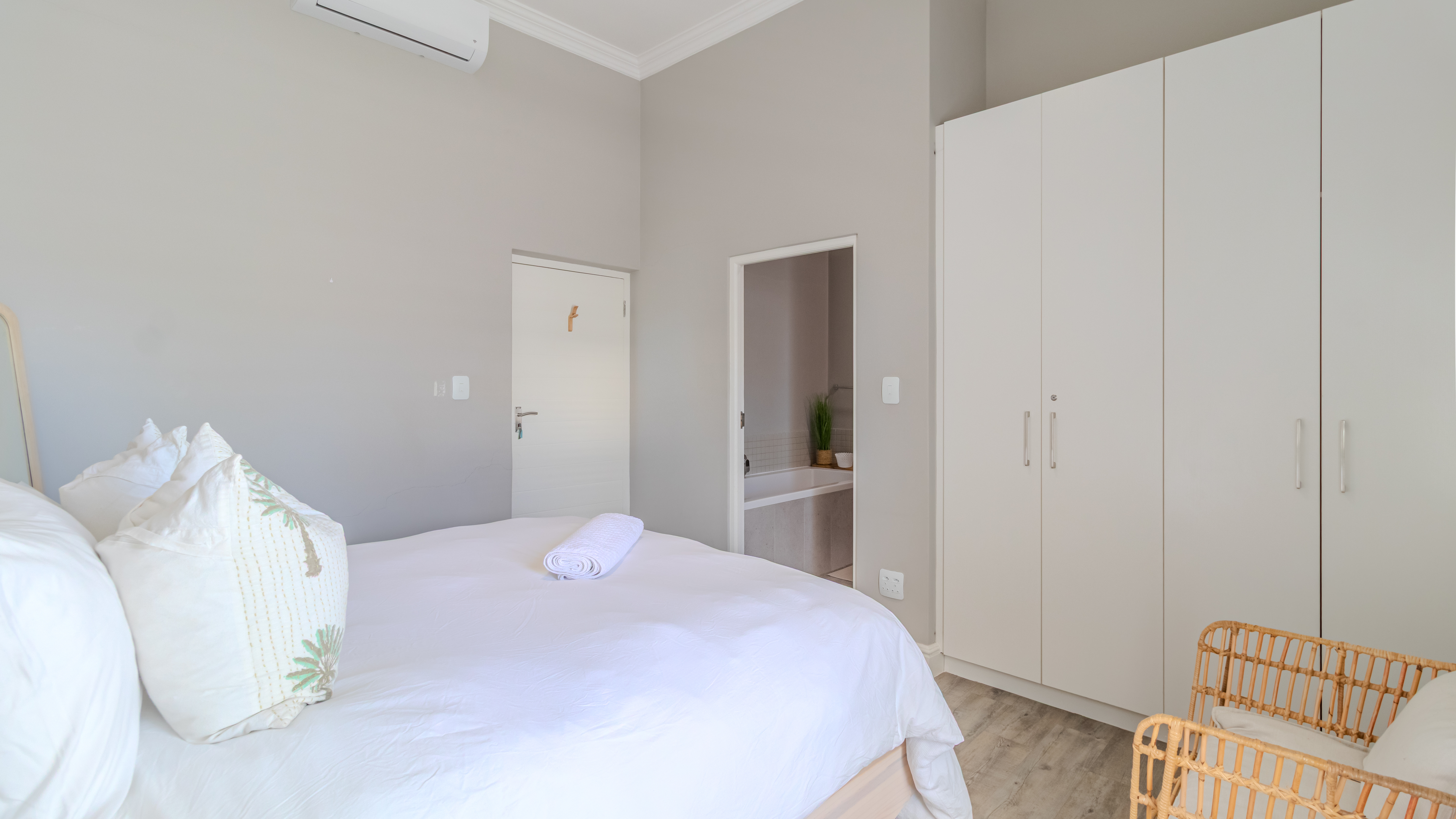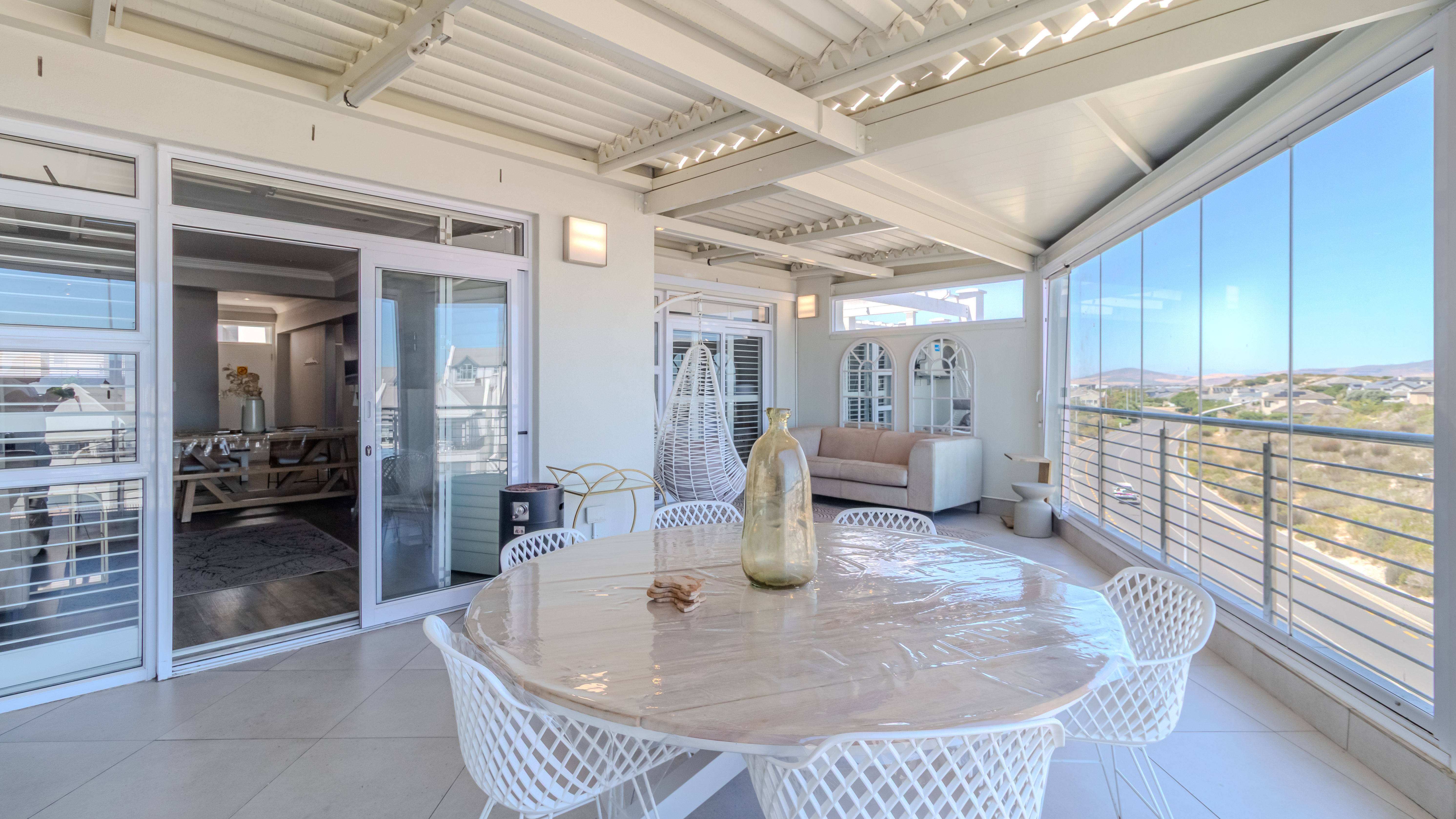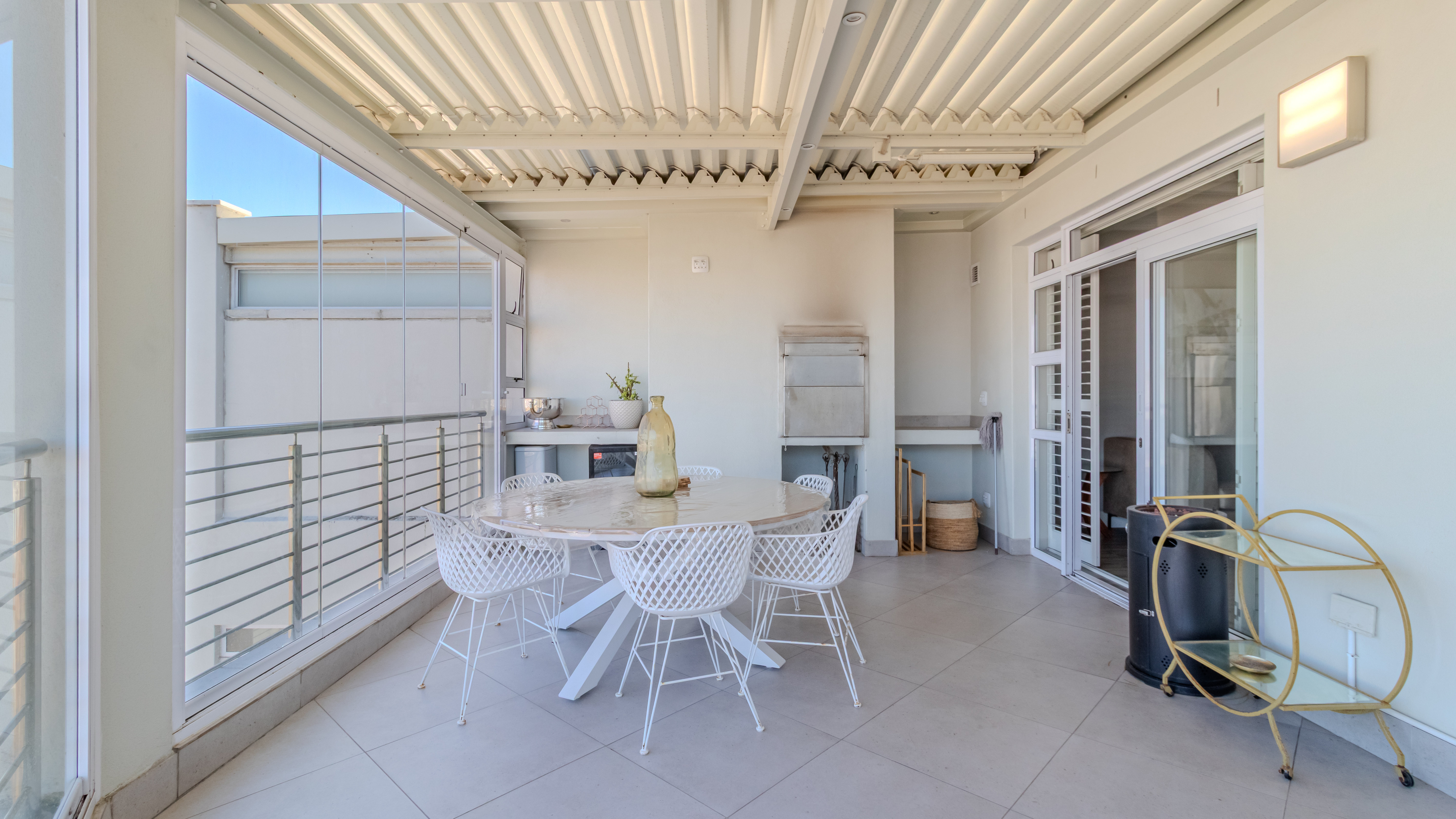 The expansive, enclosed balcony is a true entertainer’s dream—complete with a built-in braai, bar fridge, and elegant outdoor furniture, all designed to make the most of the breathtaking backdrop. Sliding doors open into a light-filled lounge and dining area featuring air-conditioning and a seamless flow to the modern, fully equipped kitchen with high-end finishes.