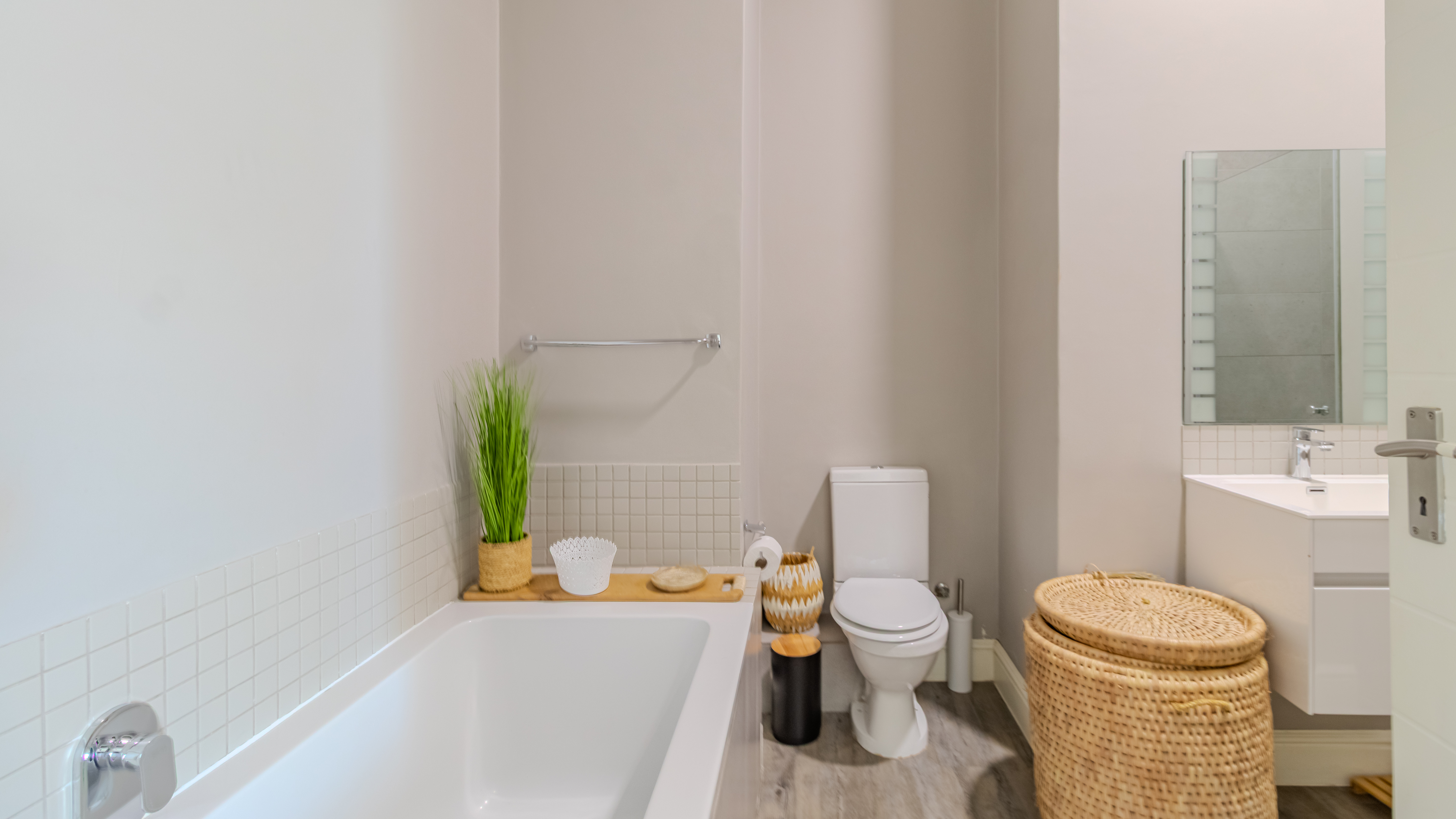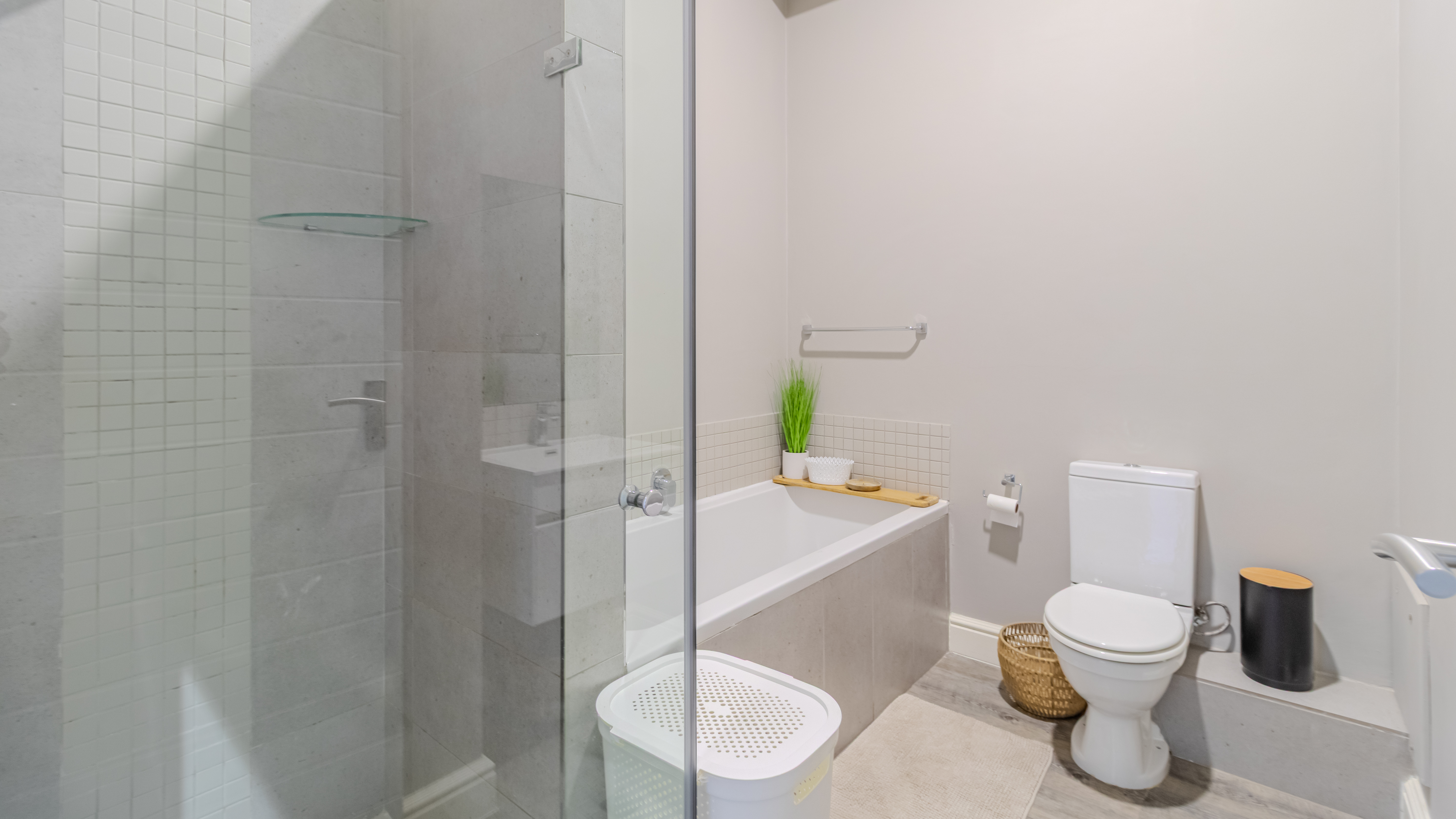 The apartment offers three generous bedrooms and three bathrooms, two of which are en-suite, providing ample privacy and comfort for family or guests.