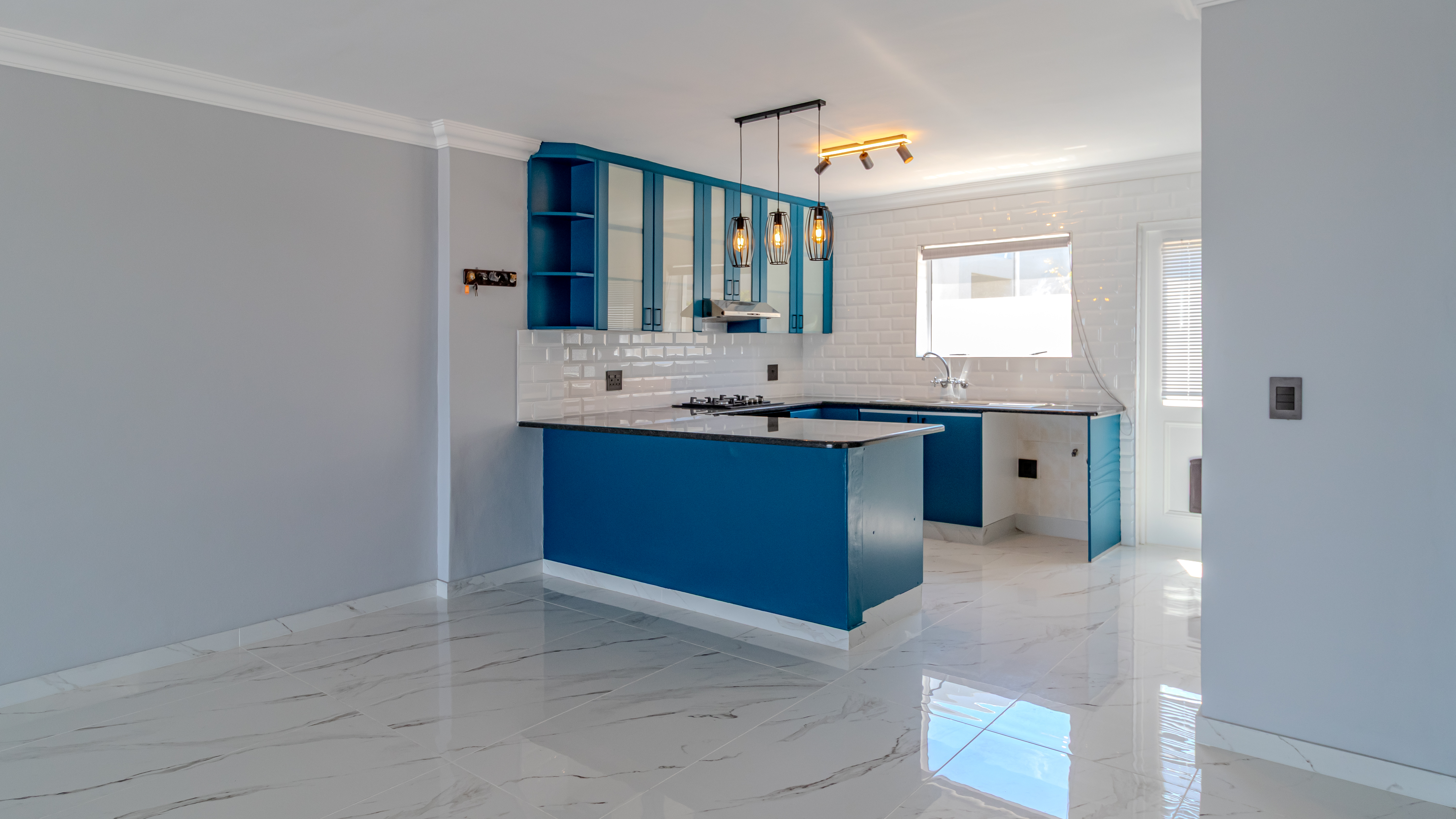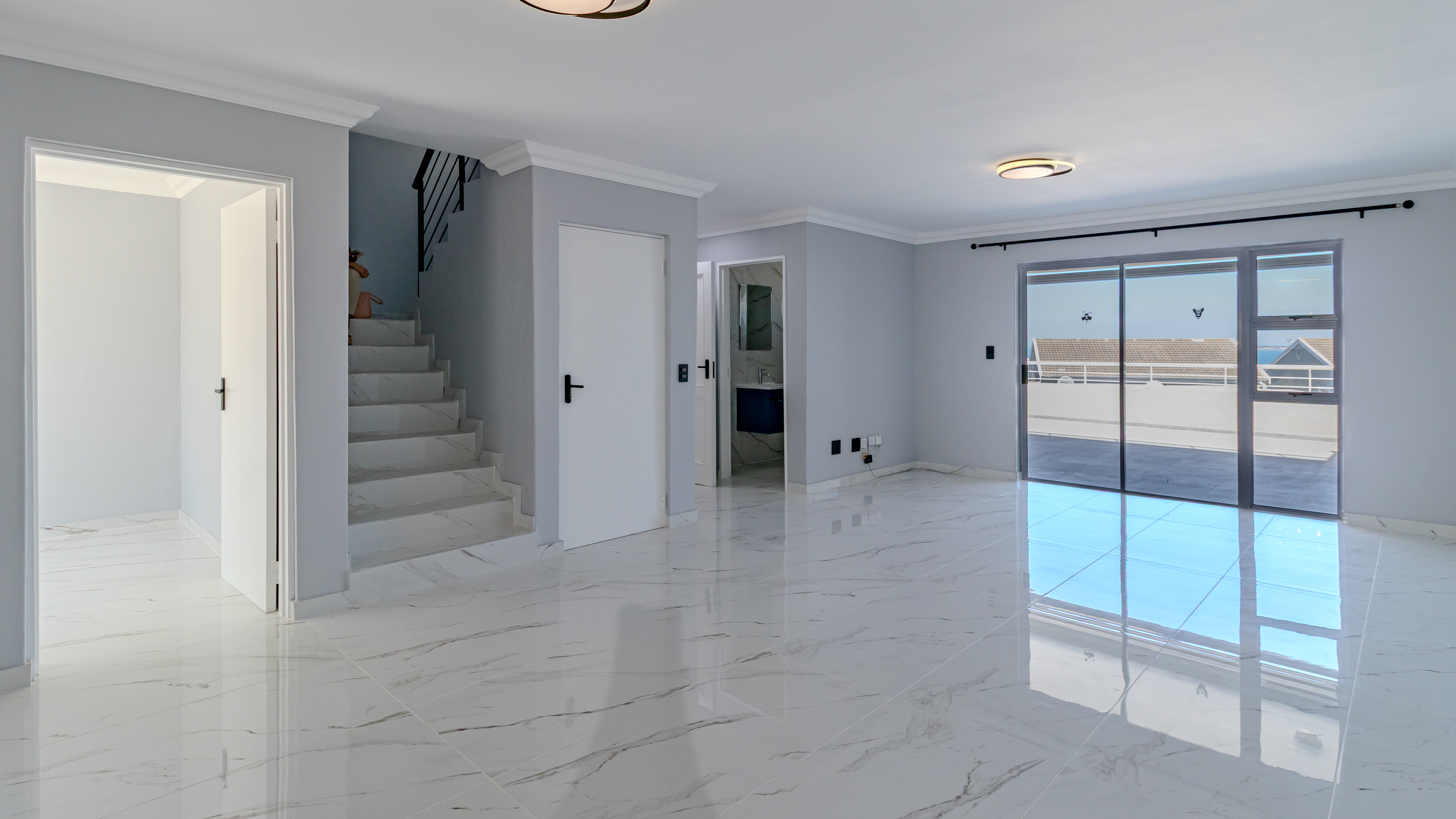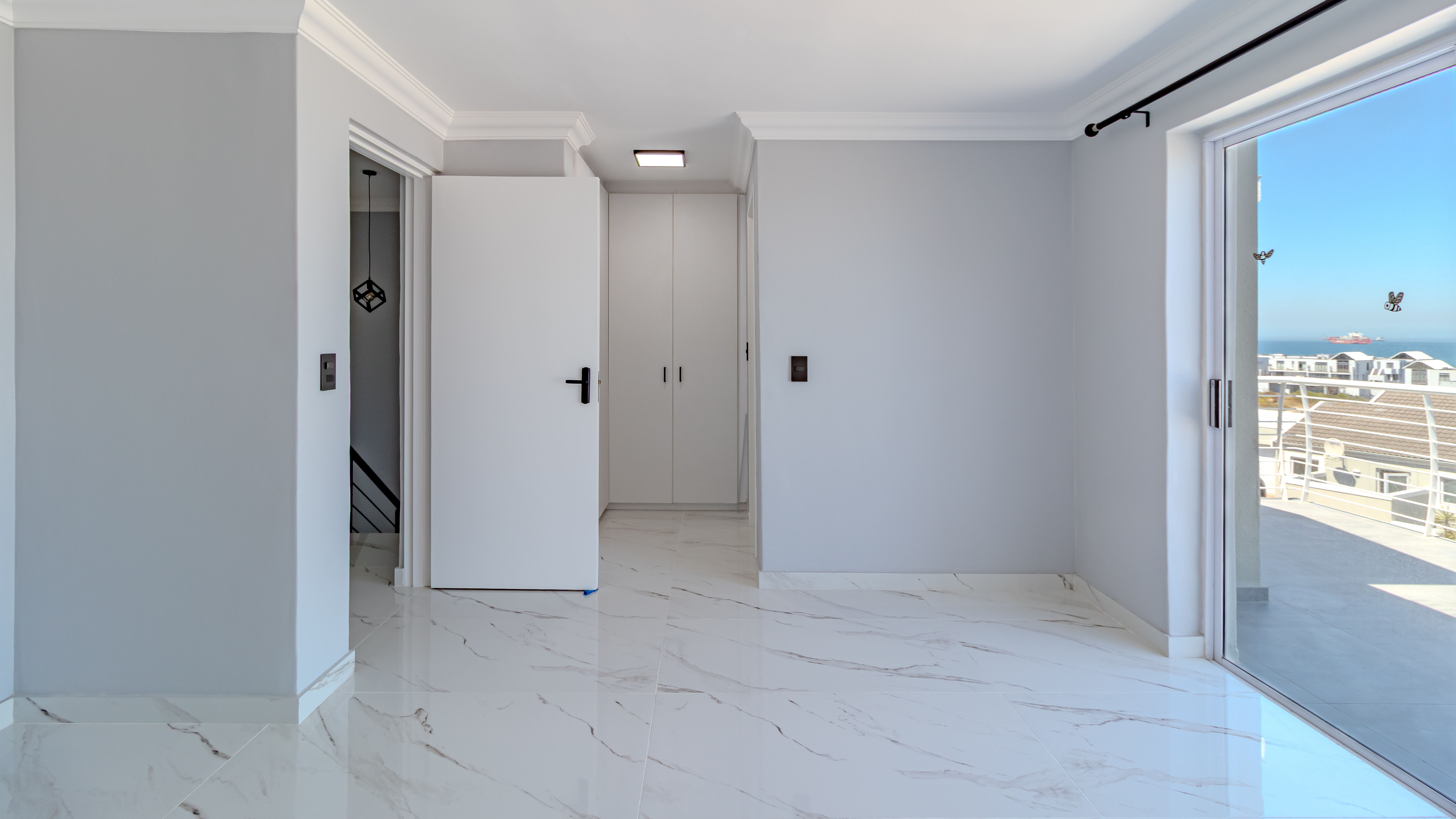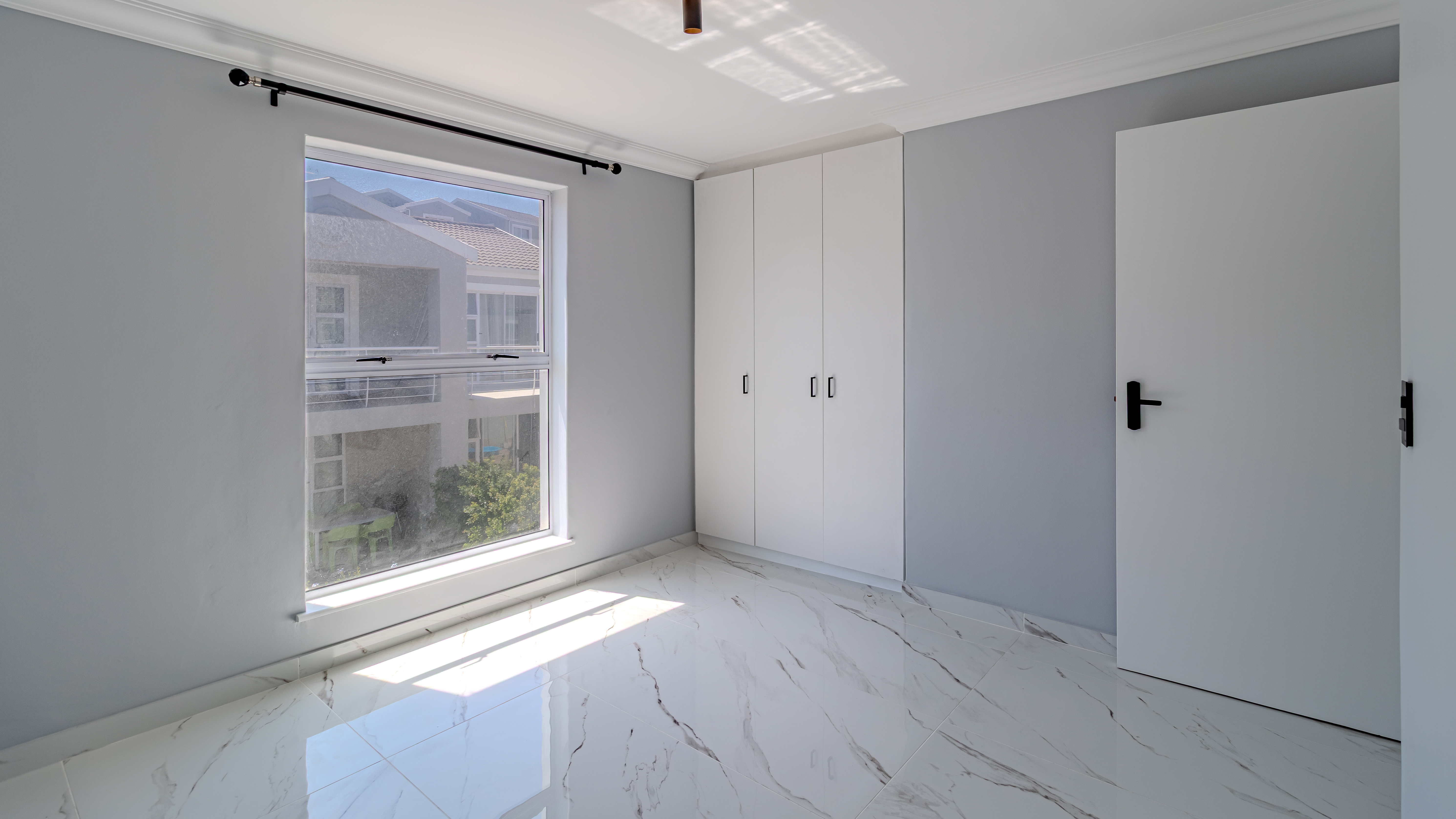 Enjoy panoramic views of the ocean, Table Mountain and Robben Island from the spacious balcony, fitted with weather blinds and ideal for relaxed entertaining. The balcony flows into the open-plan living area and modern kitchen, creating a comfortable indoor-outdoor feel.