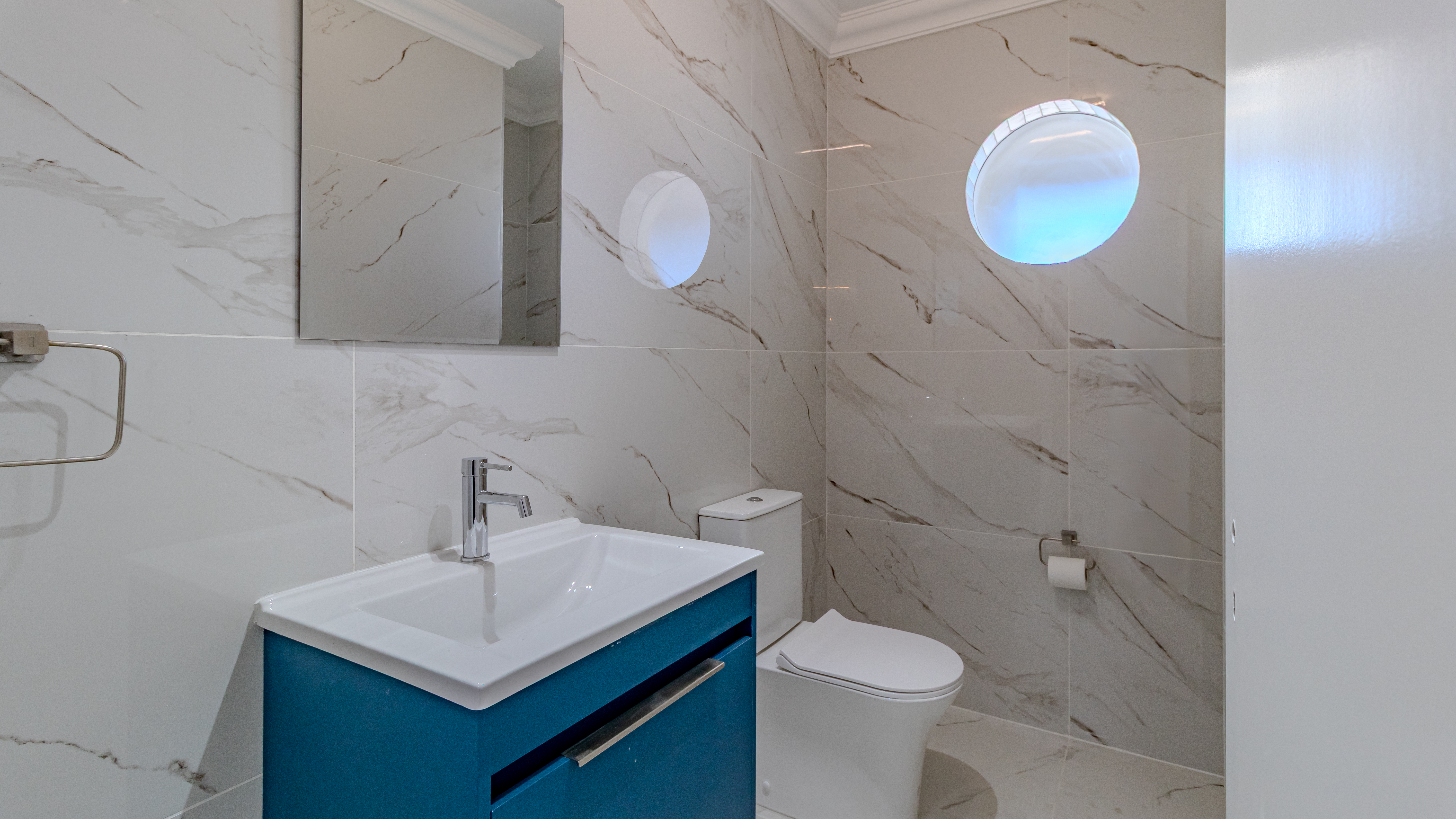 Upstairs you’ll find three bedrooms. The main bedroom features exceptional, panoramic views, its own balcony and an en-suite bathroom. A full family bathroom services the other two bedrooms.