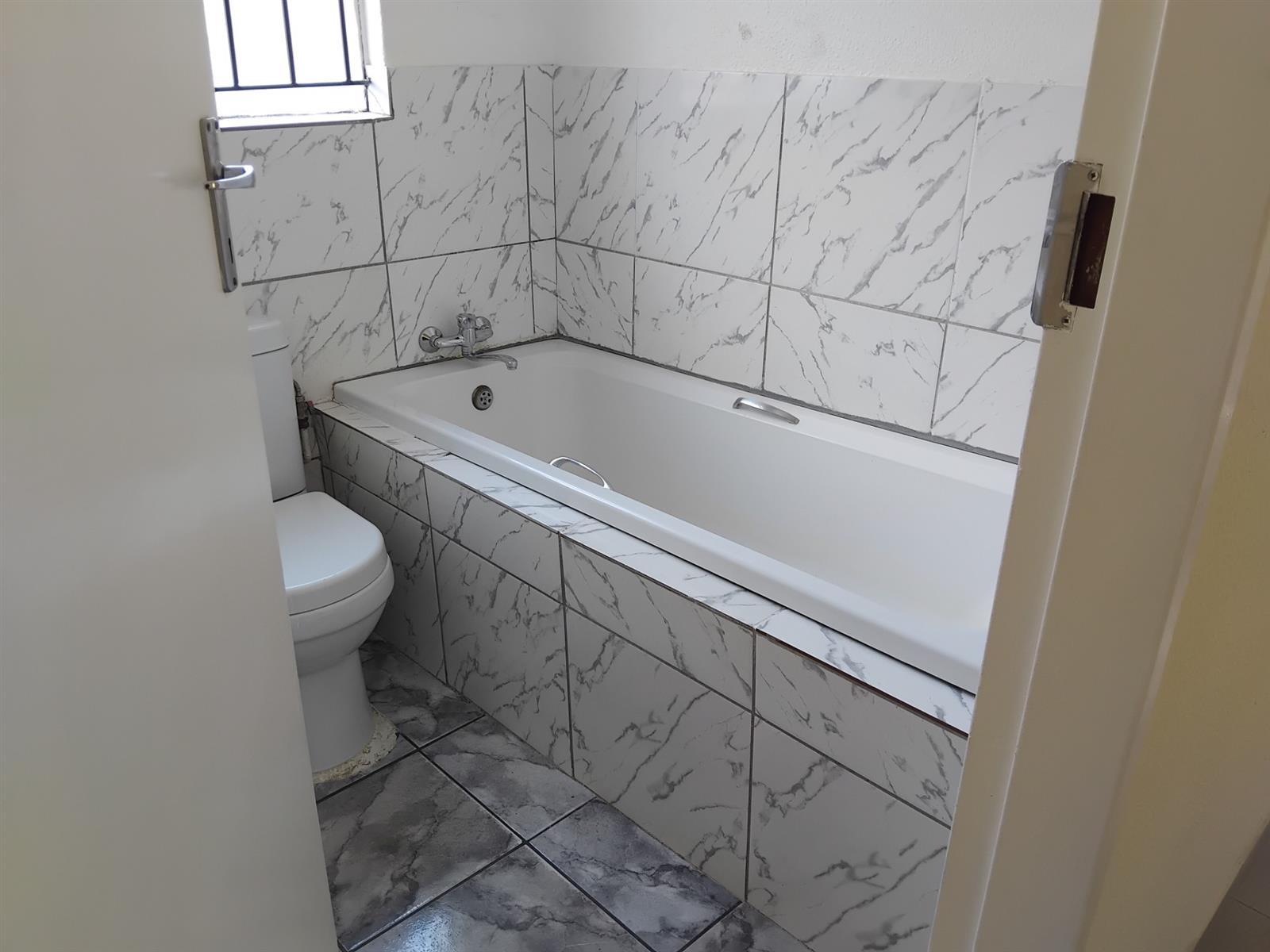 Two bedroom House with kitchen, 2 spacious bedrooms with cupboards. 2 Bathrooms with bath tub and shower In a secure yard with secure gate. close to good schools and the highway.