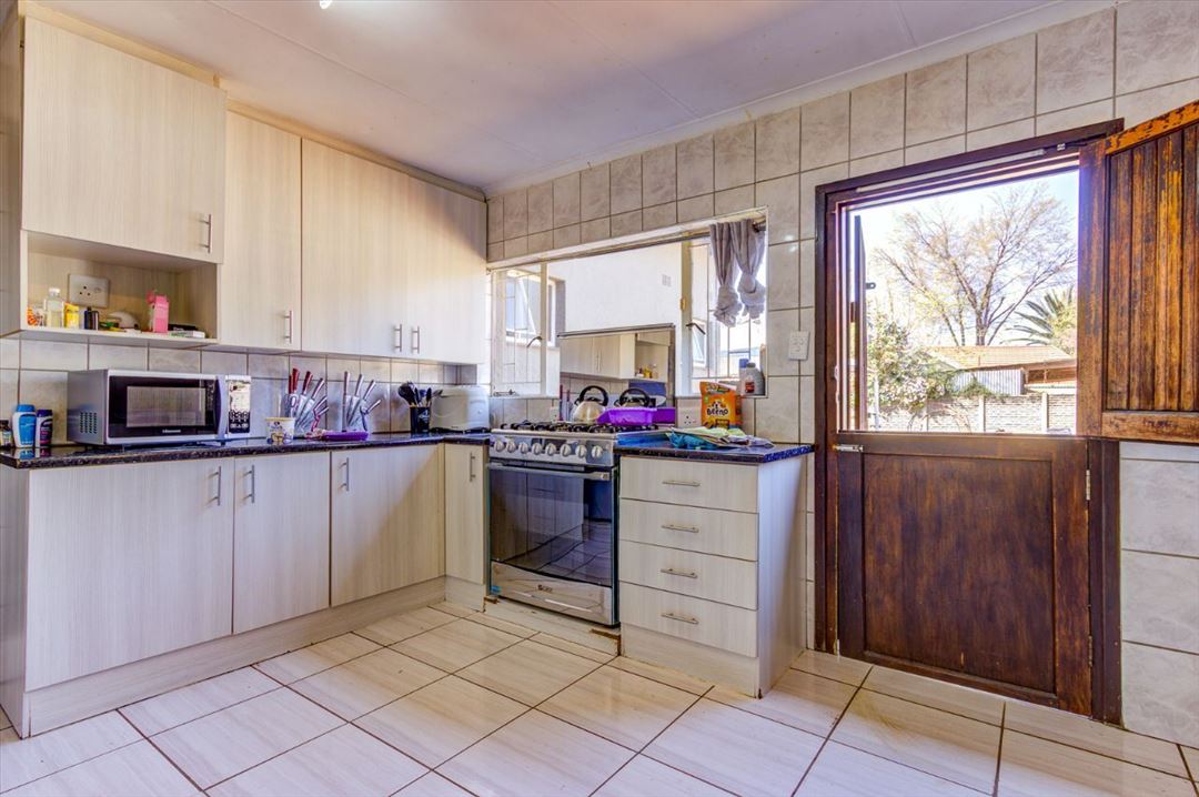 The home features three well-sized bedrooms with built-in cupboards, including a main bedroom with an en-suite bathroom. A second bathroom services the remaining bedrooms efficiently. Outside, the property includes staff quarters, adding flexibility and practicality.