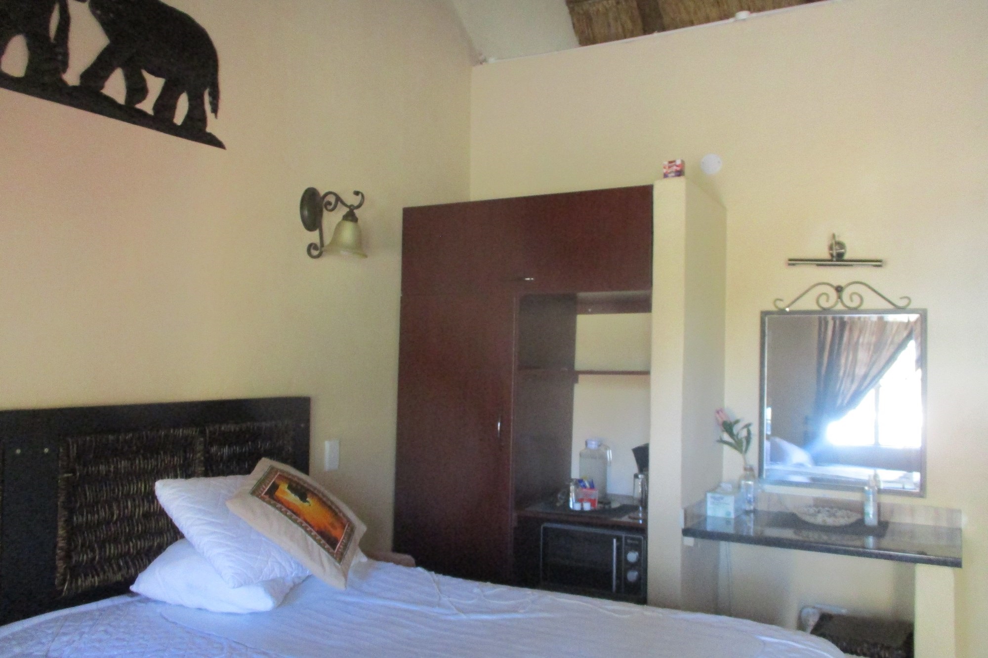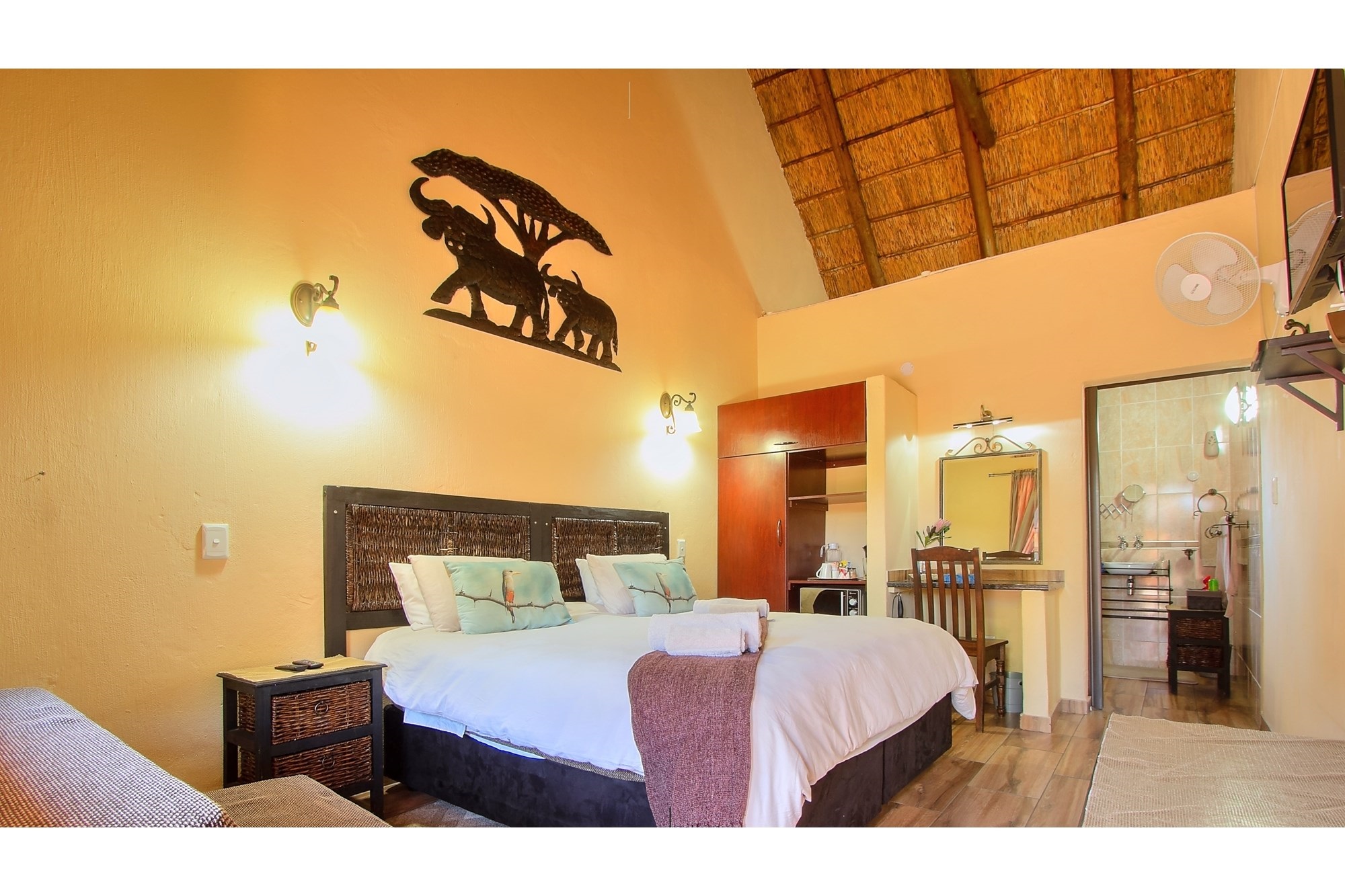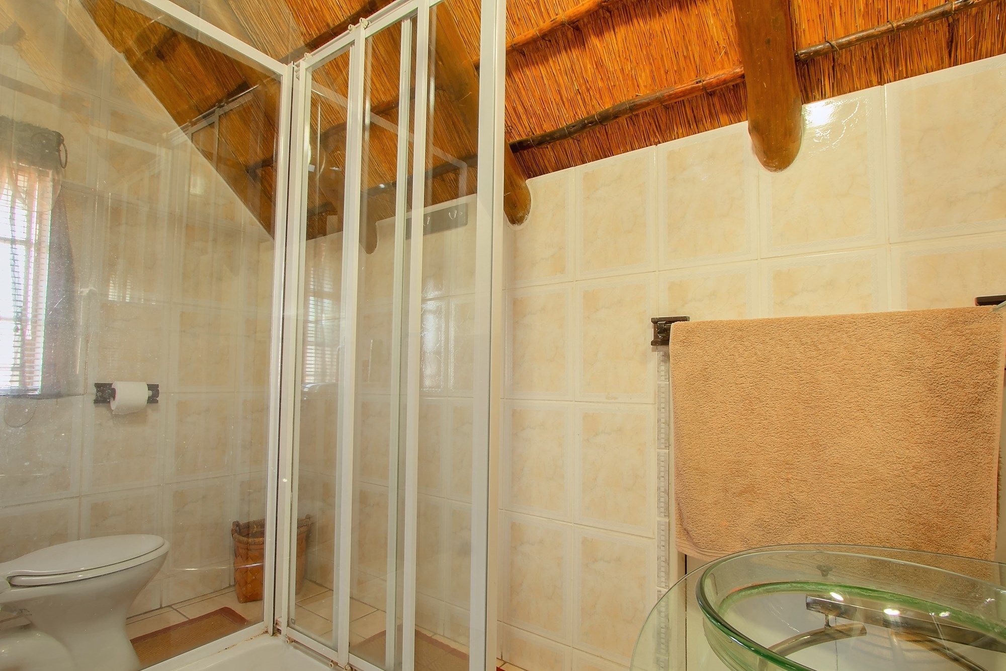 The fully equipped kitchen is a culinary haven with a gas stove, microwave, fridge, and a generous pantry. Perfect for gatherings, this space opens to a landscaped garden and a refreshing swimming pool, ideal for outdoor leisure. The lodge also boasts a fireplace, a covered parking area for four vehicles, and an intercom system for added security.