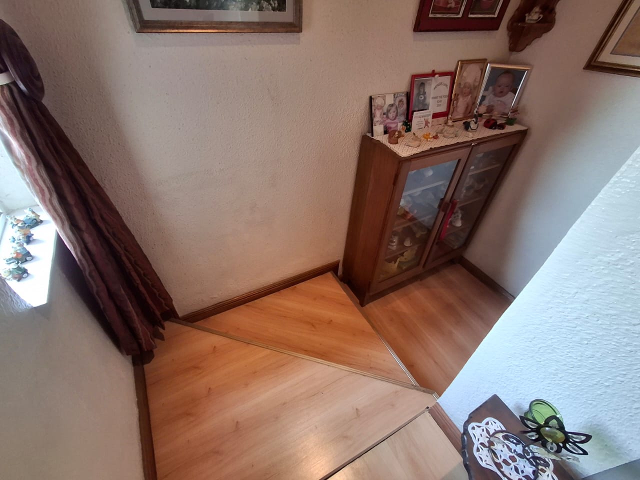 This property boasts two spacious bedrooms with elegant wooden flooring, providing a warm and cozy atmosphere. The full bathroom is tastefully designed and half-tiled, featuring a bath, shower, toilet, and a stylish vanity unit. Additionally, there is a convenient half bathroom with a toilet, ensuring ample facilities for family and guests.