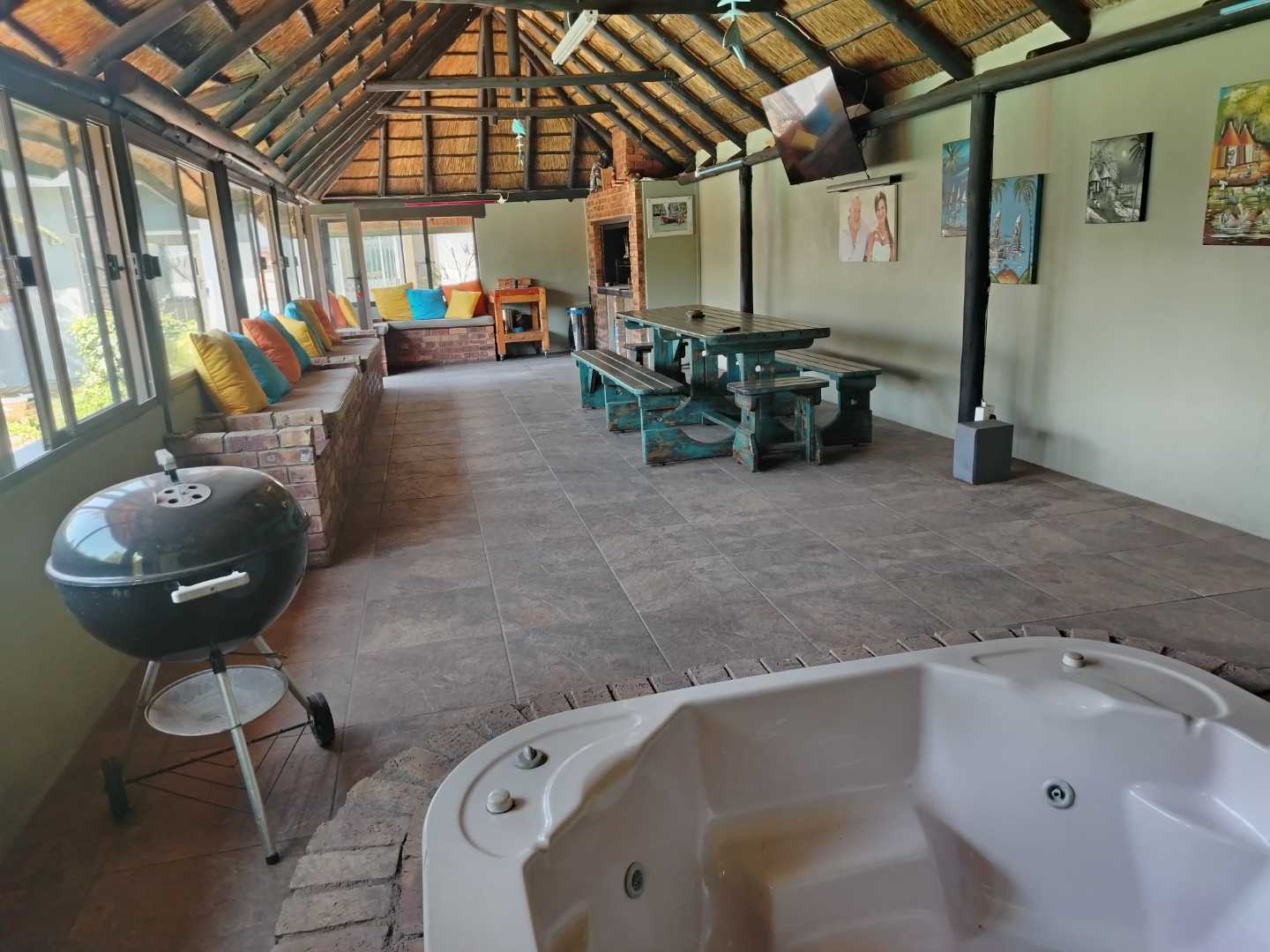 Step outside to discover an entertainer's paradise. Overlooking an Olympic-sized swimming pool, the expansive Lapa and entertainment area comes complete with a Jacuzzi, making it the perfect setting for outdoor relaxation or hosting memorable events.
