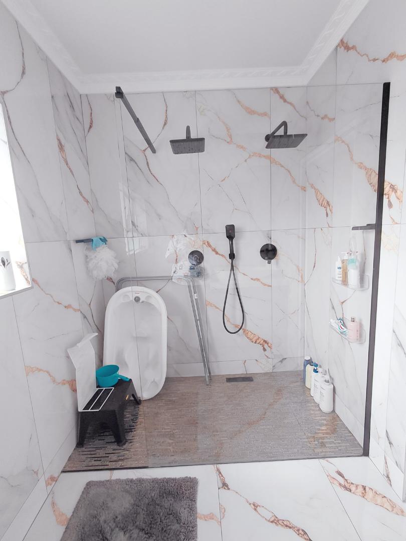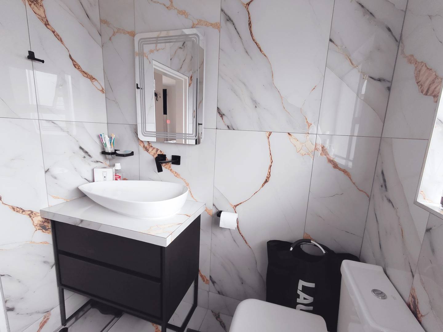 This home boasts four generously-sized bedrooms, each with laminated flooring and abundant natural light. The master suite and one additional bedroom feature en-suite bathrooms for ultimate privacy and convenience. A total of four bathrooms ensure that every family member's needs are met, along with a guest loo for visitors.