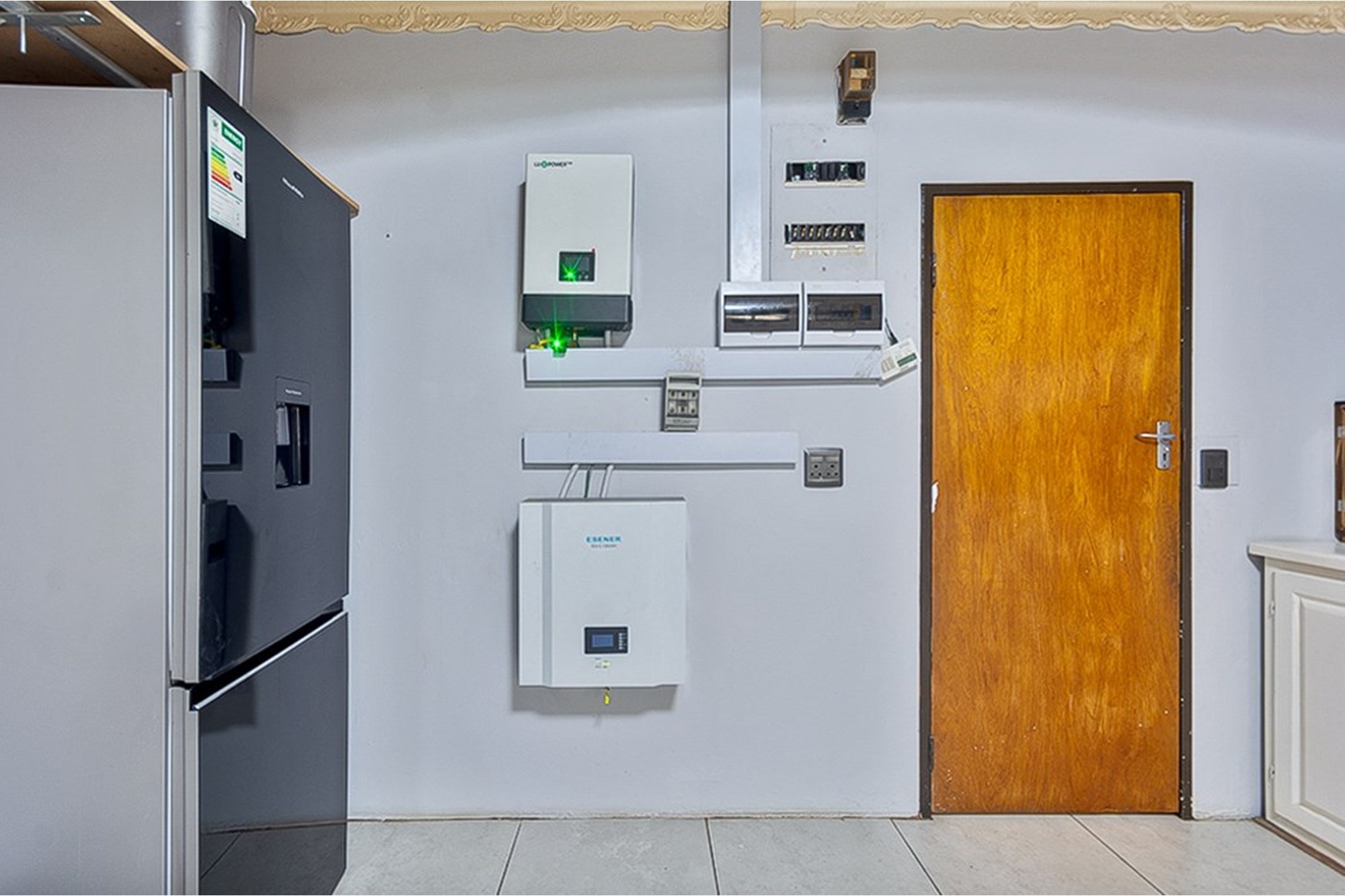 Outside, a lush garden awaits, providing a serene escape and perfect setting for weekend barbecues. The covered veranda offers a sheltered spot for relaxation, while the garage with an automatic door and covered parking accommodates up to 10 vehicles, providing peace of mind for homeowners with multiple cars or guests. Energy-efficient solar panels and a battery/backup inverter add to the property`s sustainability and cost-effectiveness.