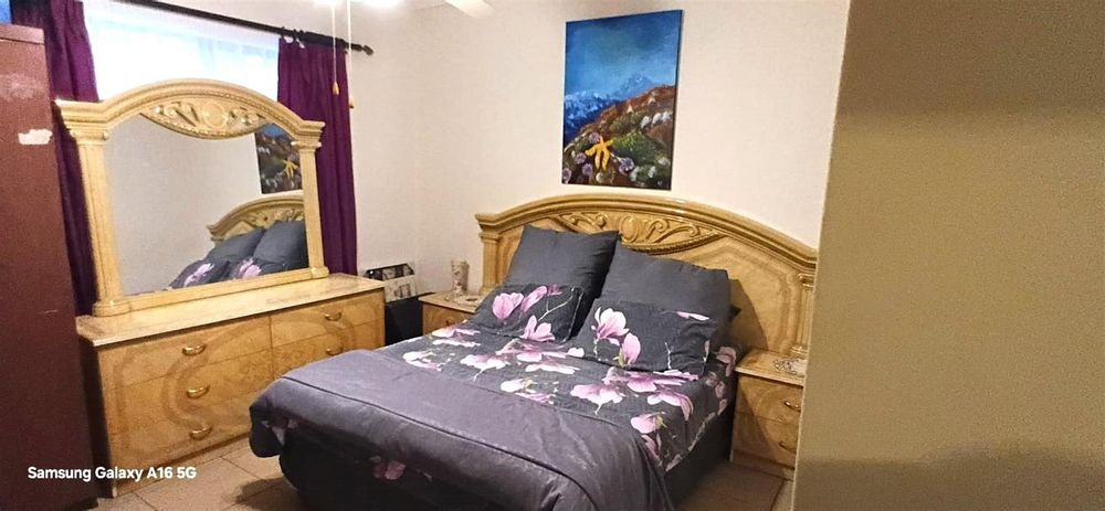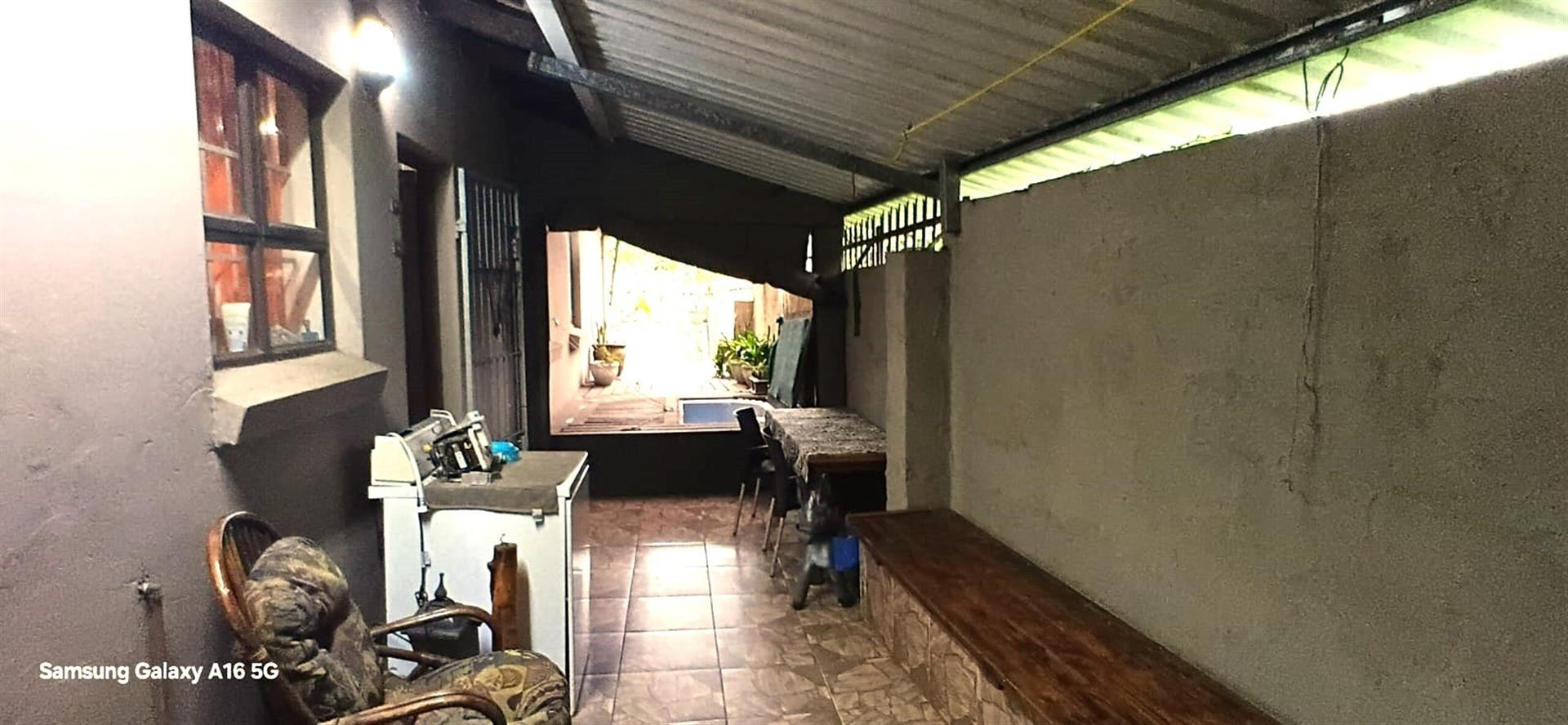 This property also boasts practical features such as two automated garage doors for easy access, a separate laundry room, Additional highlights include aluminum windows, tiled floors, and various security measures like burglar bars and an electric gate.