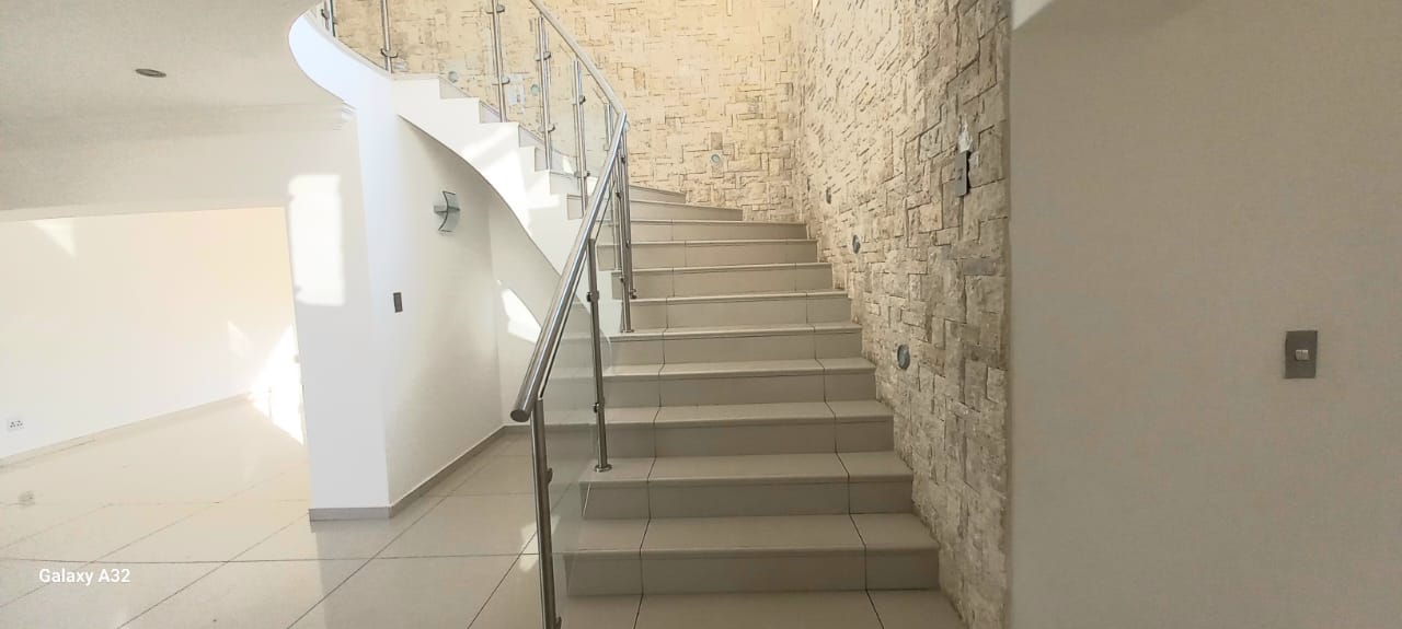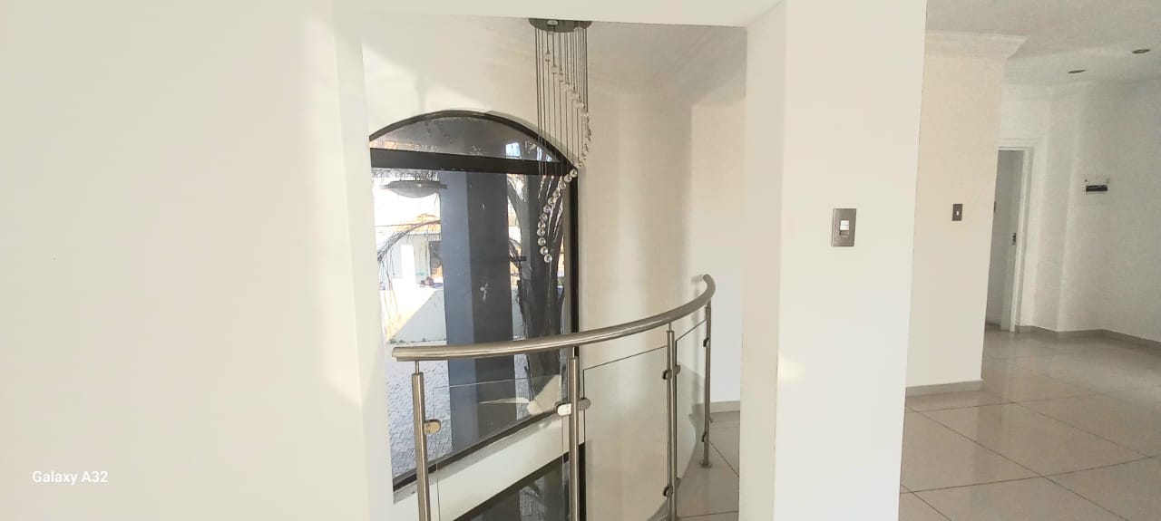 This Modern Contemporary home is in a seclusive corner of the street that gives you peace of mind and tranquility to enjoy your home. It offers you a stunning entrance hall that welcomes you with an exquisite tea drops chandelier dripping from the roof top of the top floor and a safe curvaceous glass staircase. It has and huge classic kitchen that comes downlights and with a breakfast nook, scullery, pantry and lots of cabinet space which follows over the dinning/entertainment space for family functions right In front of the sparkling swimming pool with a huge balcony. What is more special about this home is that it is built for comfort and a touch luxury, it has specious 5 bedrooms all attached to en suit bathrooms. While the main bedroom offers a huge balcony, even more you get a walk-in closet and a study/nursing room with its balcony. It has sliding doors throughout all external doors and big windows for that natural light.