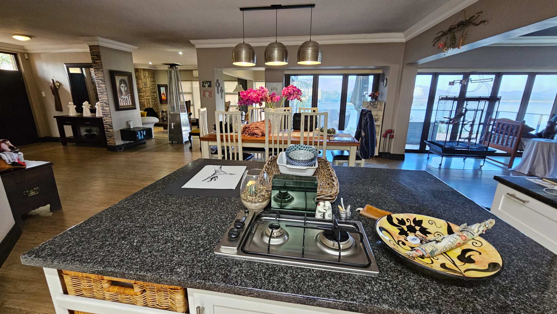 leading to the deck and pool with spectacular views of Hartbeespoort dam and mountains.