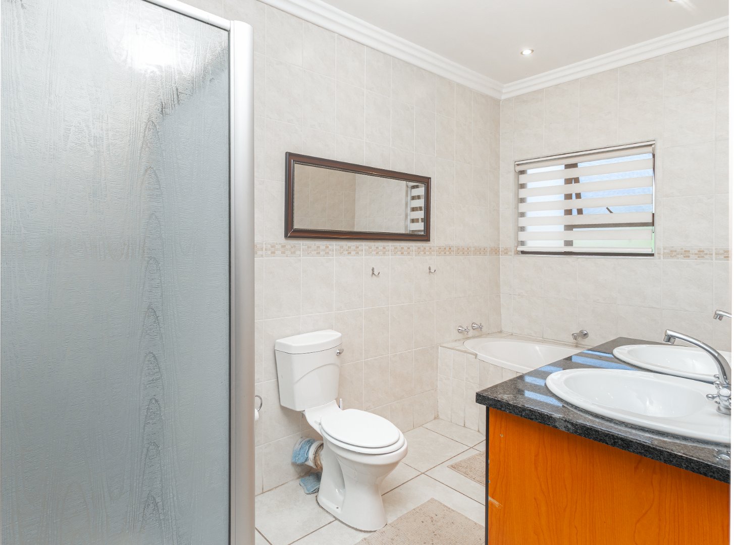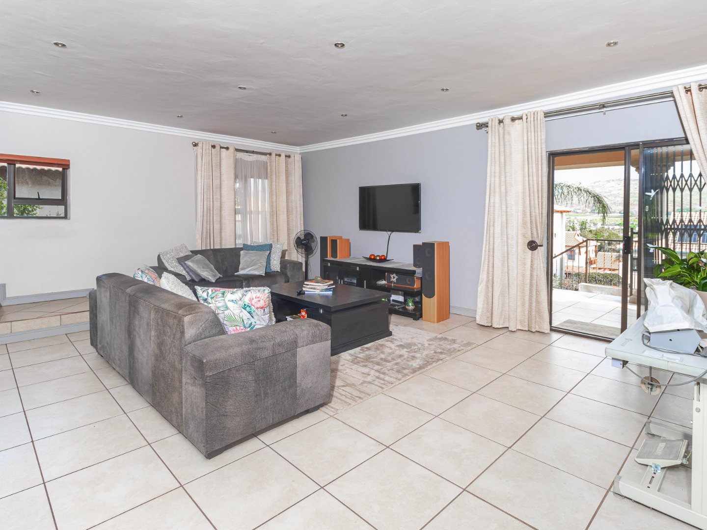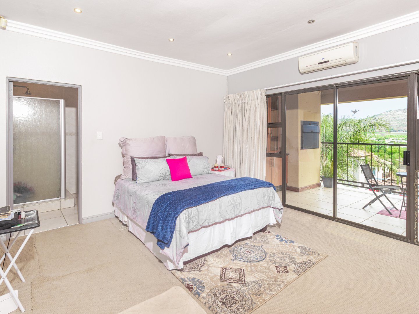 Upstairs, the main bedroom is a private retreat complete with a full en-suite bathroom and a balcony that frames the breathtaking mountain and dam views. Two additional bedrooms share a modern bathroom, offering comfortable accommodation for the whole family.