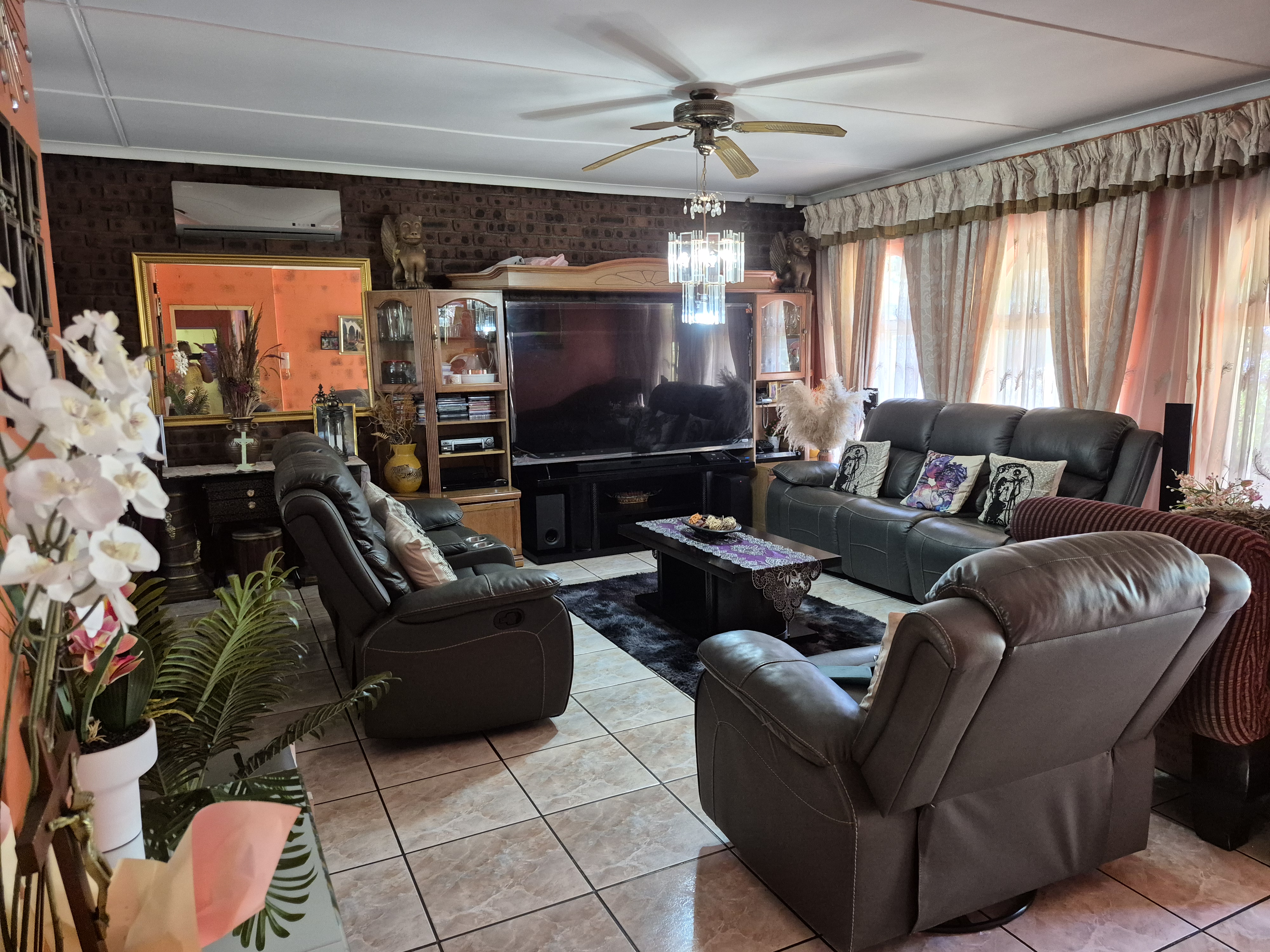 There are three bedrooms with built-in cupboards and two bathrooms. The house is equipped with air conditioning, ideal for Pietermaritzburg weather.