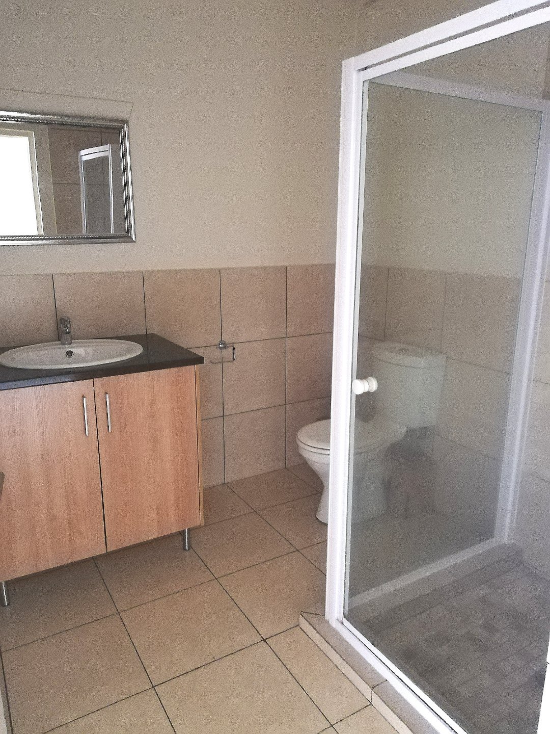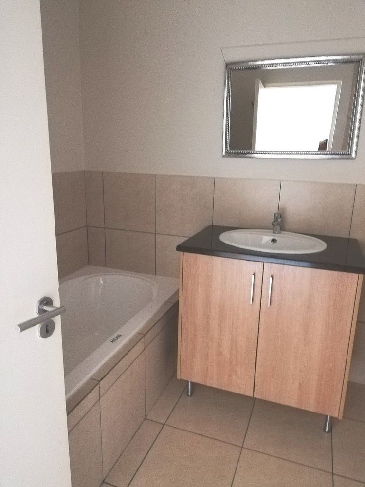 The roomy main bedroom and second bedroom have built-in cupboards. The floors are clad with with laminate wood flooring creating a warm ambiance. Large aluminium windows add to design of openness. The contemporary bathroom is fully tiled and consists of a large shower cubicle, bath tub, basin and loo with trendy fixtures and fittings.