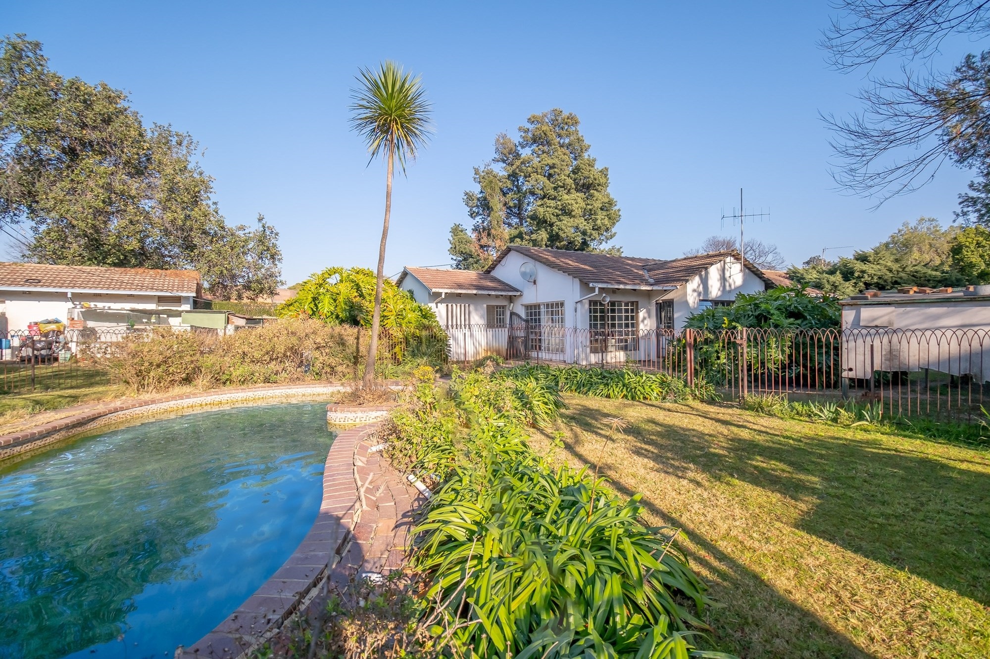 Pool, in working order, in a landscaped garden