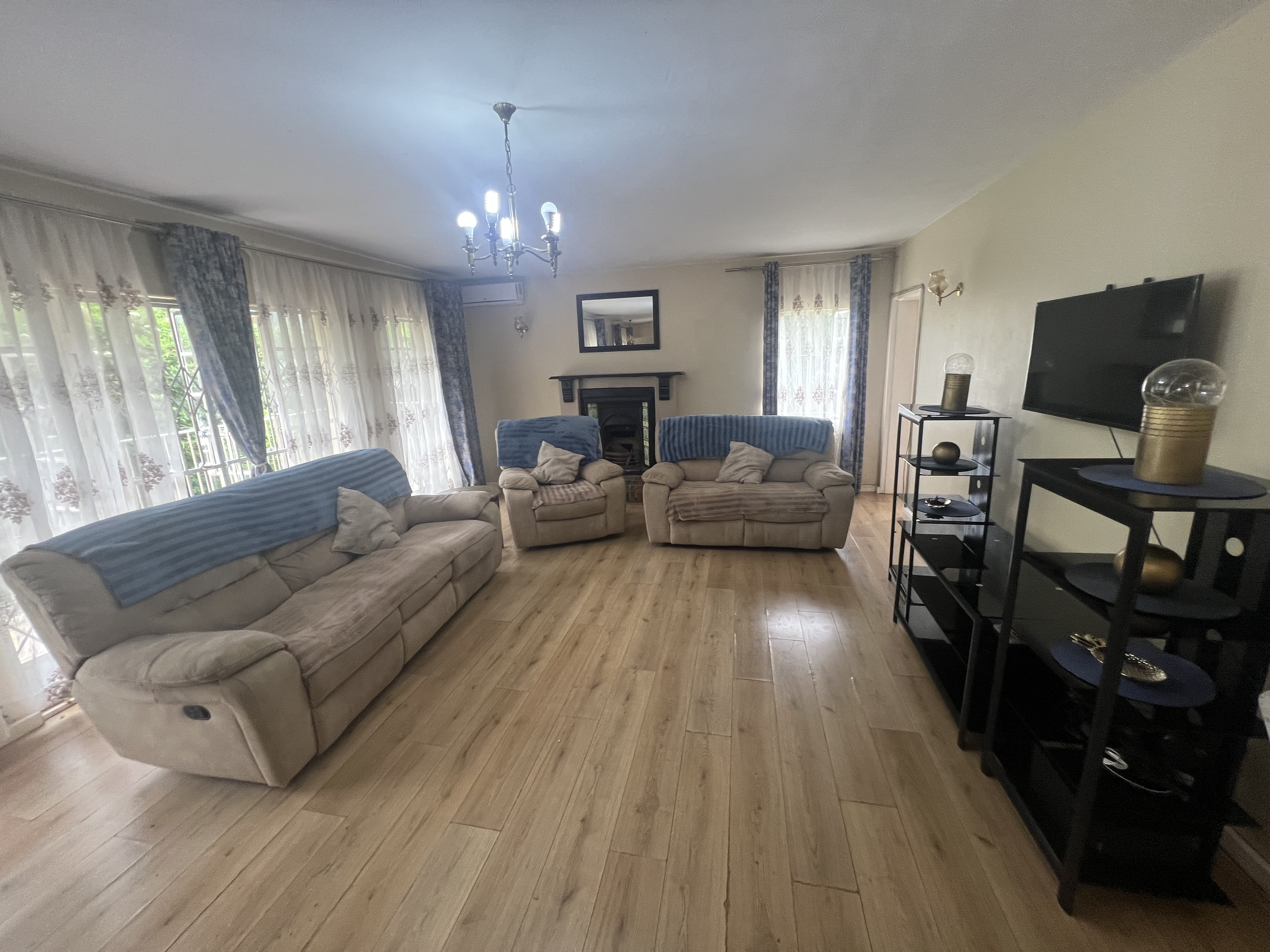 Safety is paramount with an alarm system, burglar bars, and an electric gate, providing peace of mind for you and your loved ones.